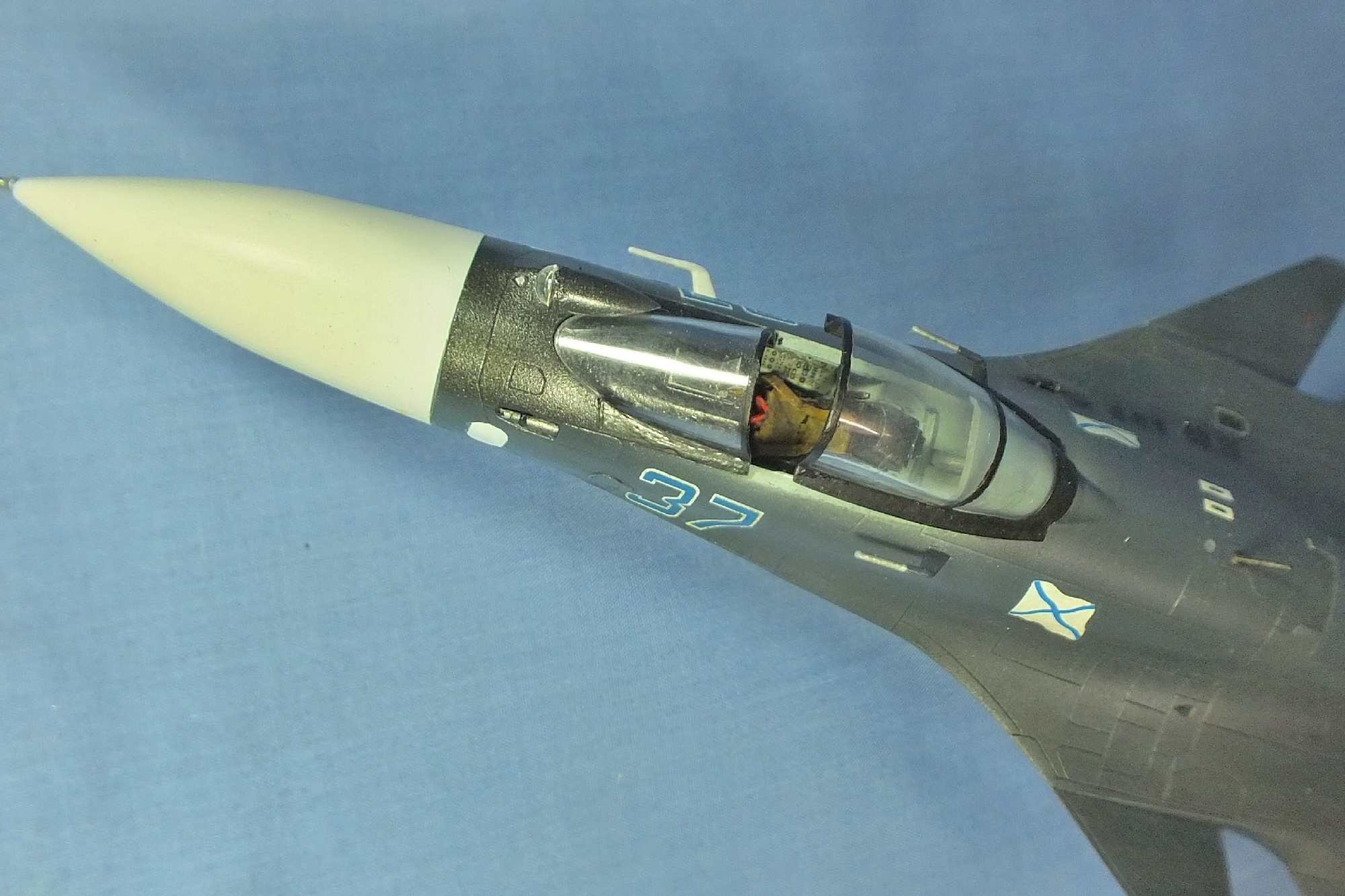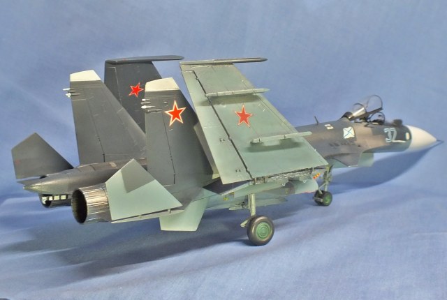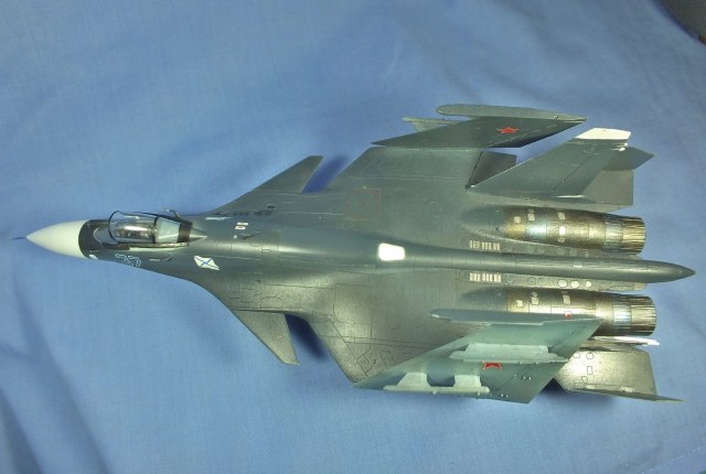 Мне надо было написать "Поясню - цель ставилась собрать красивую модель, извините, подарили. Разбор Су-33 на коробке много, но мне понравилась вот такая, решил с импровизировать. У меня все работы для полки для души, этим и отдыхаю. Выставил её только для самосовершенствования. В виду постоянной работы за компом зрение позволяет работать с мелкими деталями, а вот в даль уже плохо вижу".Через год планирую собрать Т-50, но вот кого это интересует?