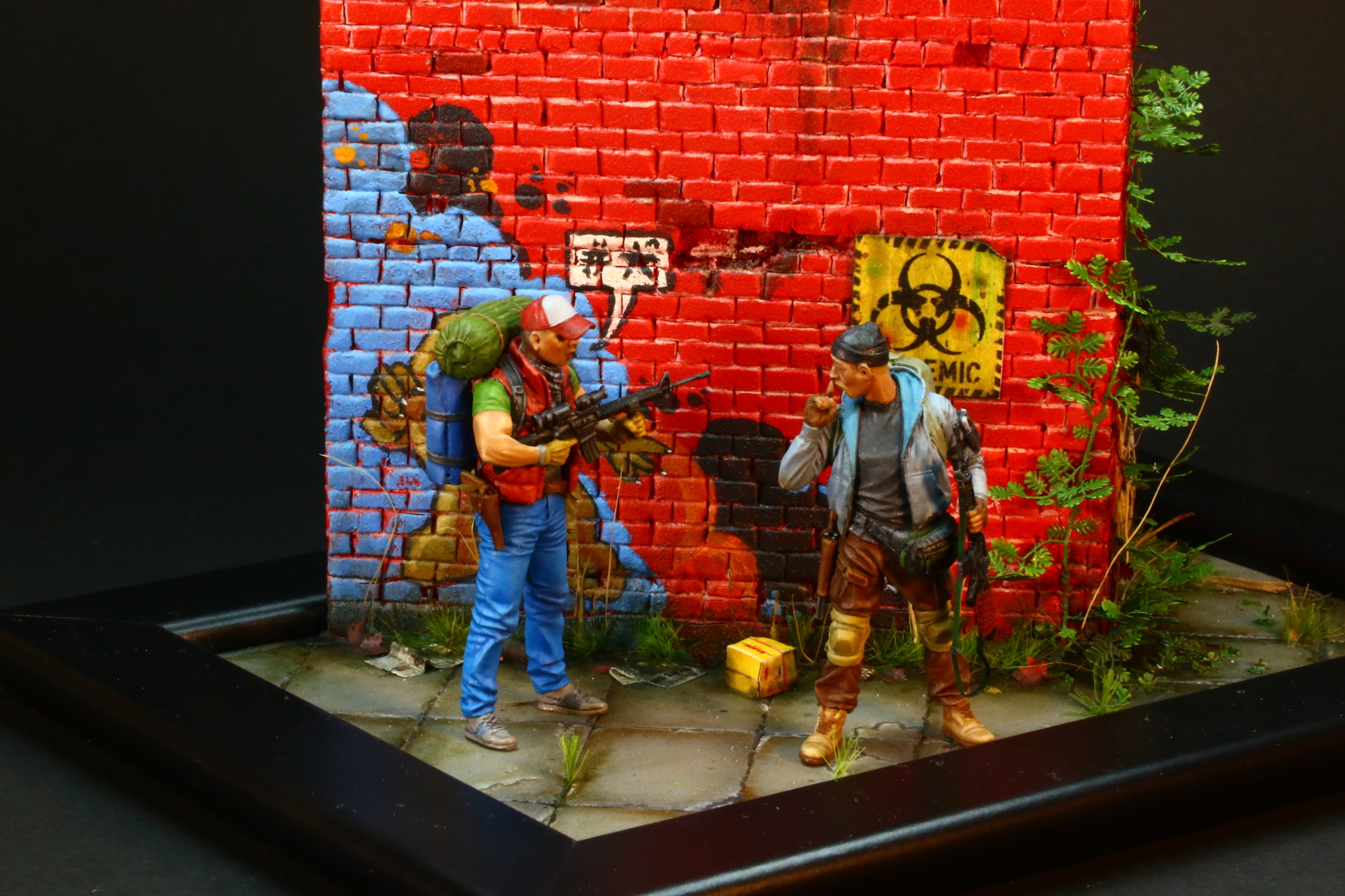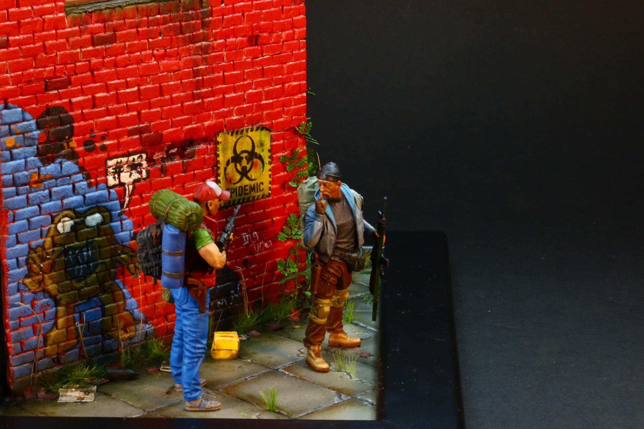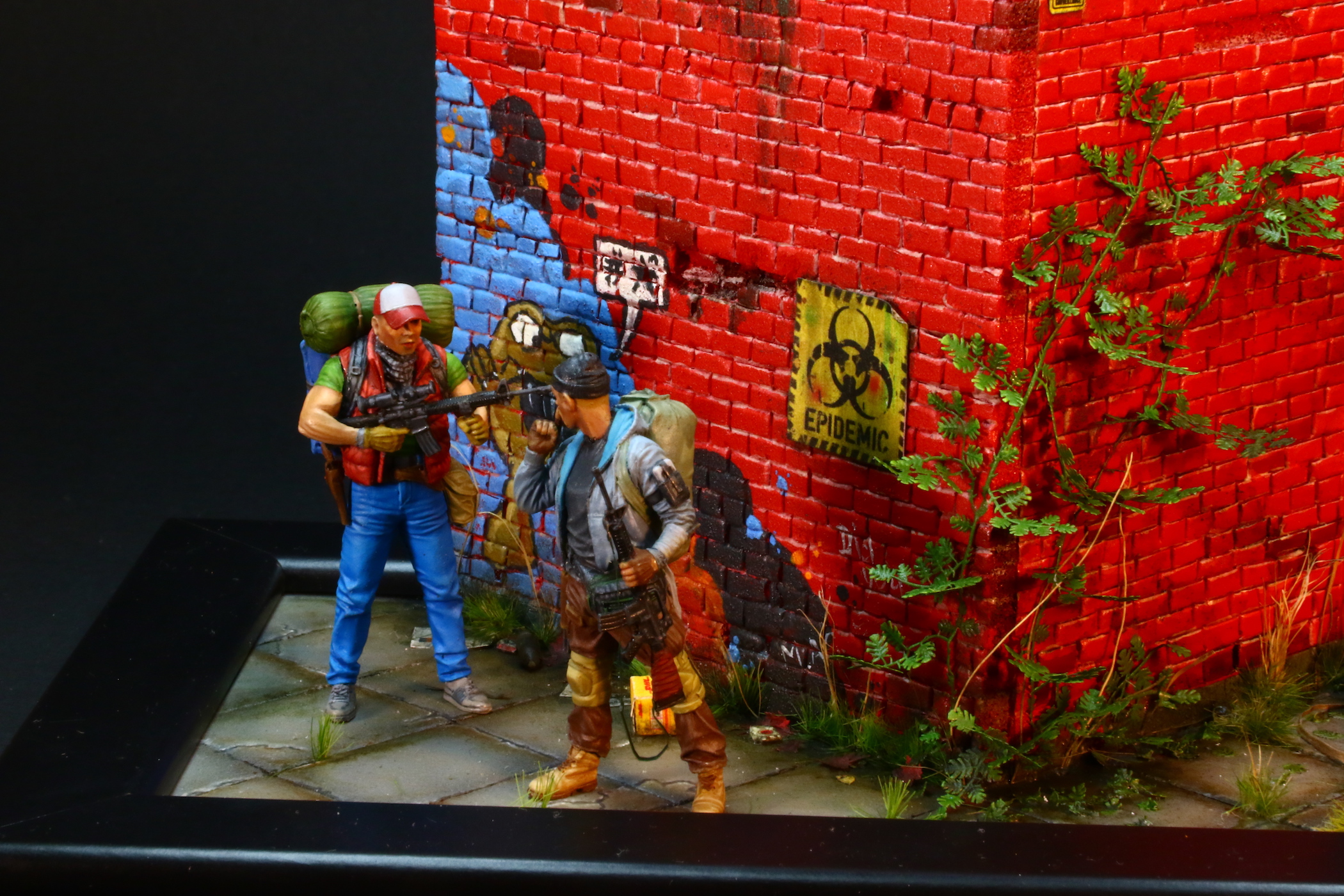 А вообще классная, качественная работа, и роспись фигур хороша, и растительность. Сам давно затеваю что-нибудь сталкерско-апокалиптичное устроить, даже фигурки прикупил, правда другие.