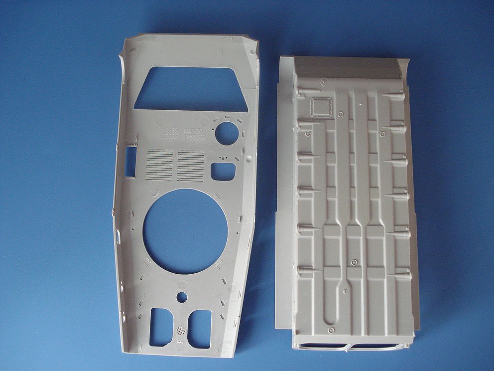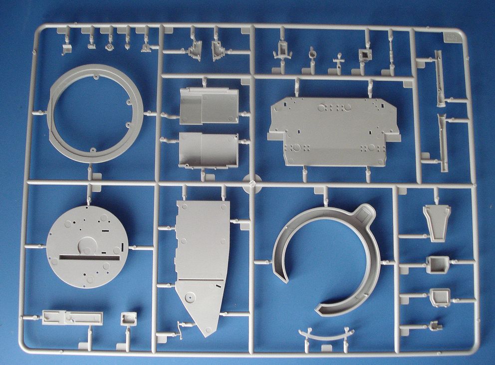 Стандартный набор для TRUMPETER все отлито хорошо и аккуратно,дан небольшой интерьер,низ и верх корпуса даны цельными деталями стыкуются без зазоров,отдельной деталью дана башня с небольшой имитацией швов,проводки.