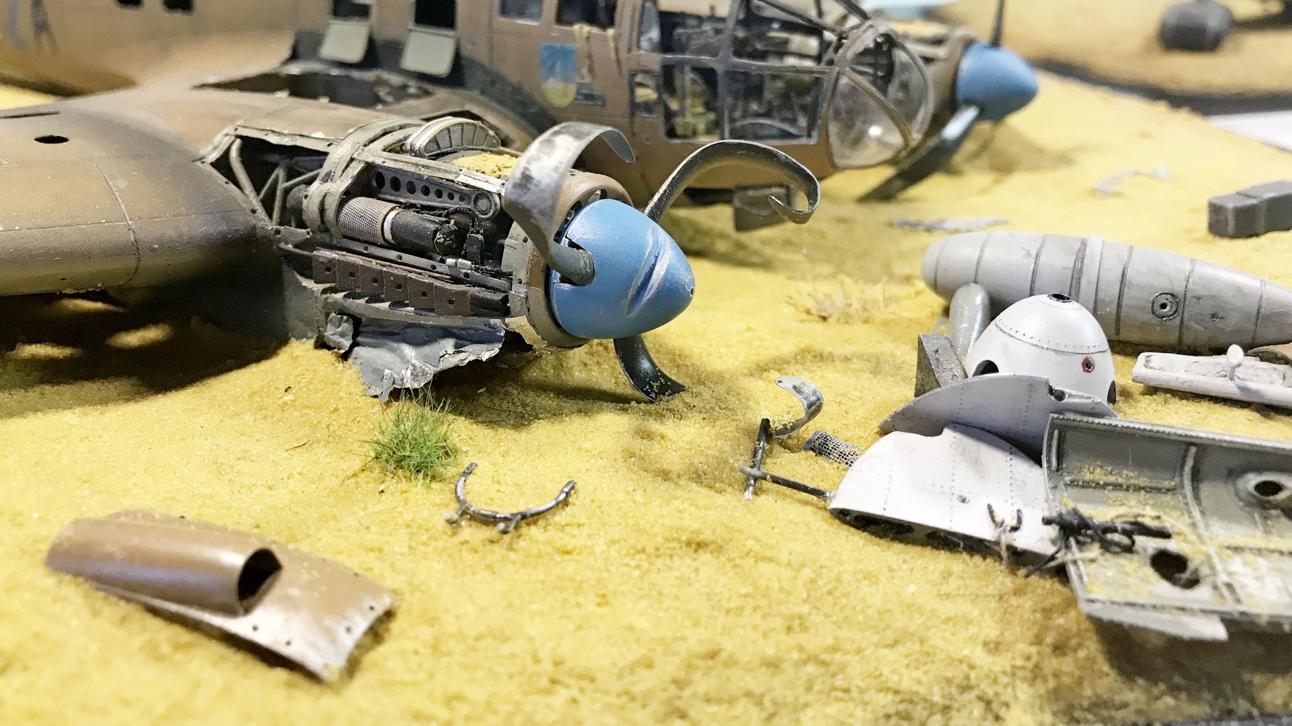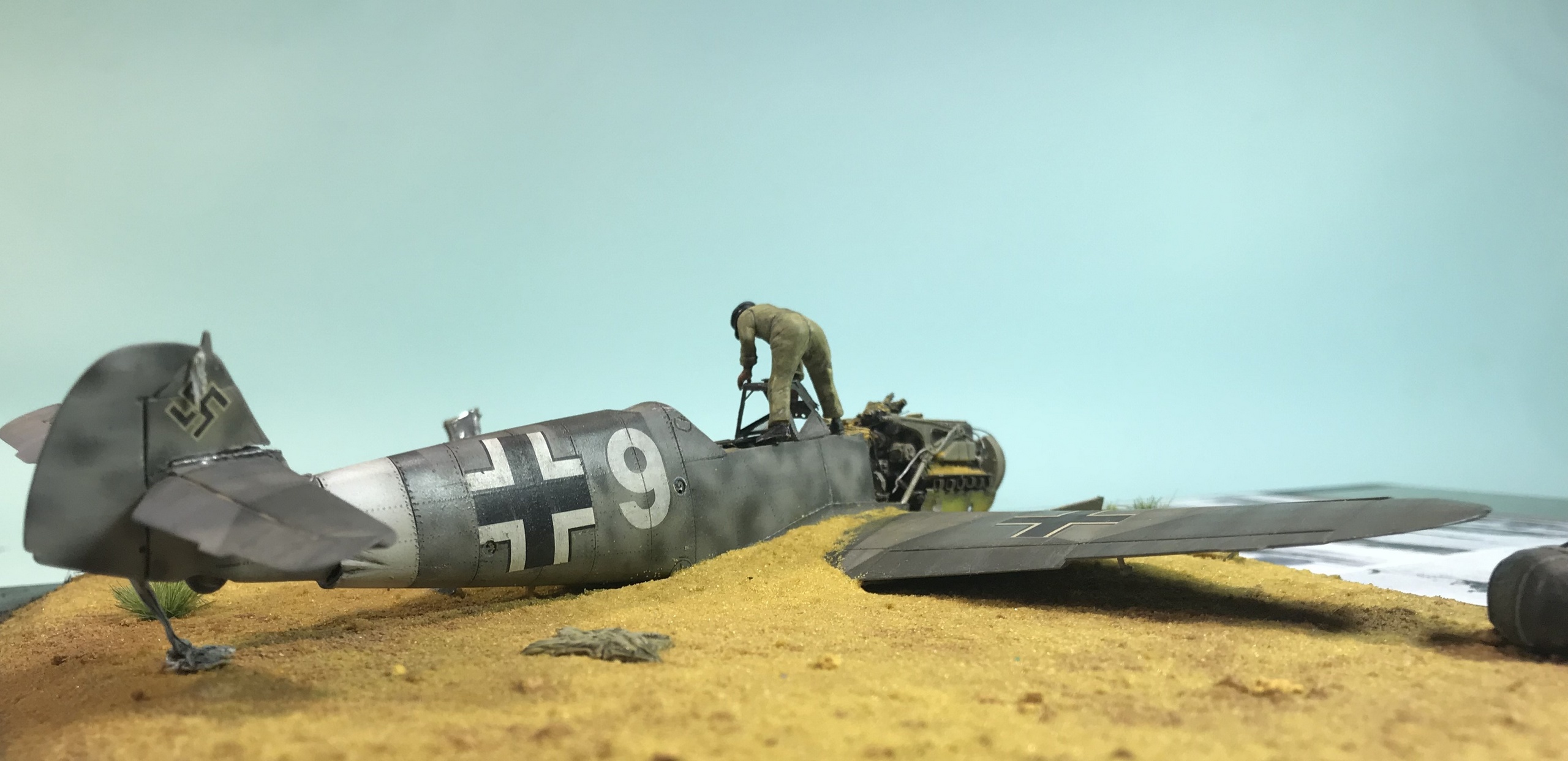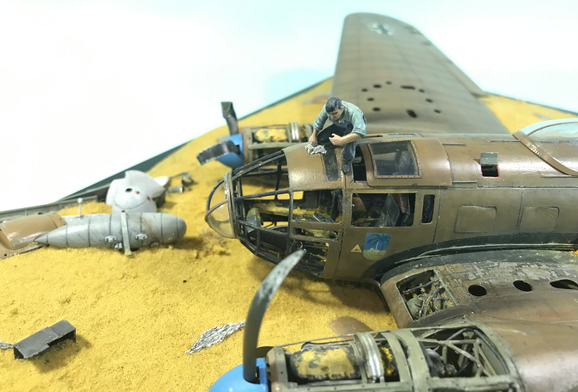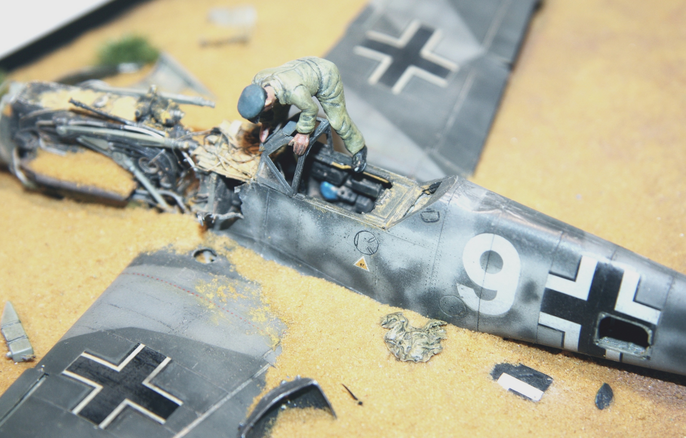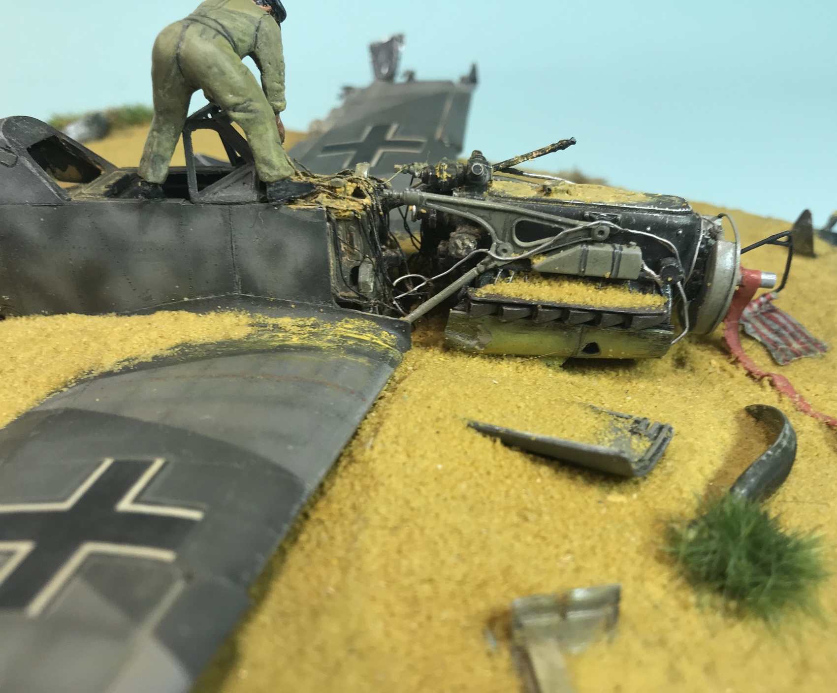 Очень понравилась диорама. По матчасти не спец., а вот по смысловой нагрузке душу греет.)) Я думаю может немного стоило опознавательные знаки немного покоцать, а может и нет? Еще как-то (на мой взгляд) вмятину на обтекателе правого винта темную тонировочку положить, а то выглядит как обычный пропил надфилем.