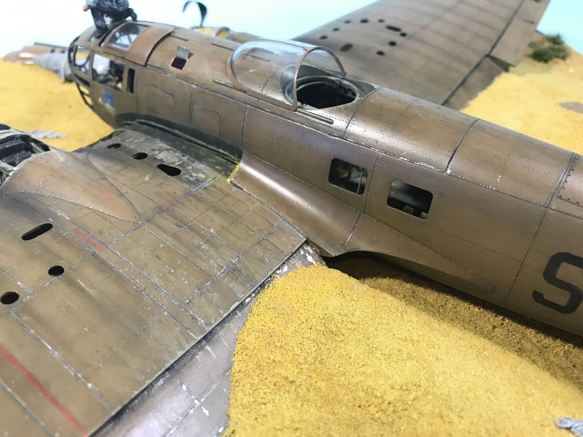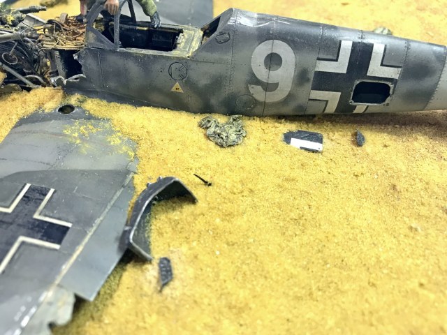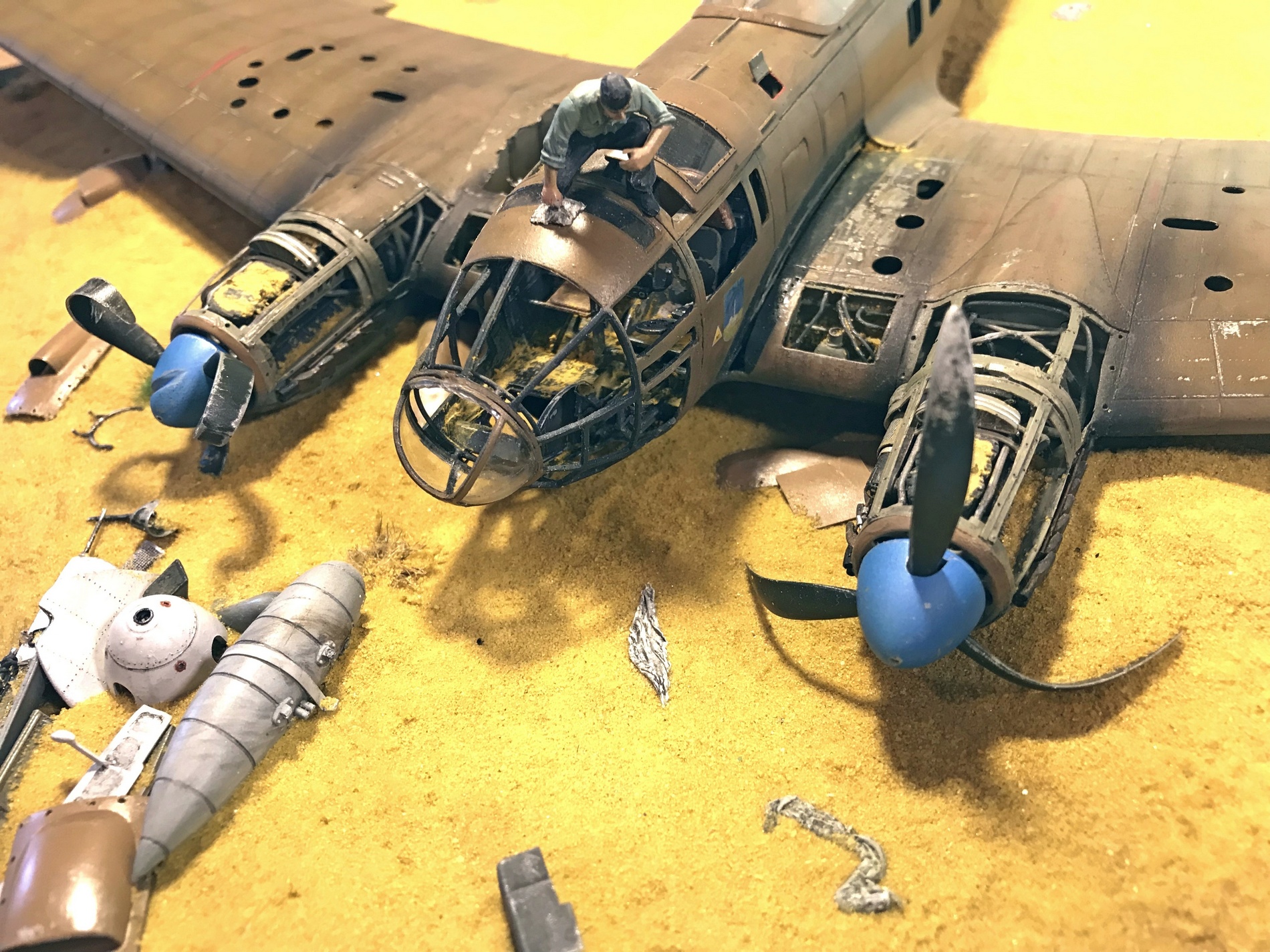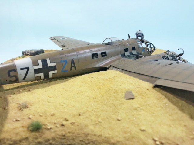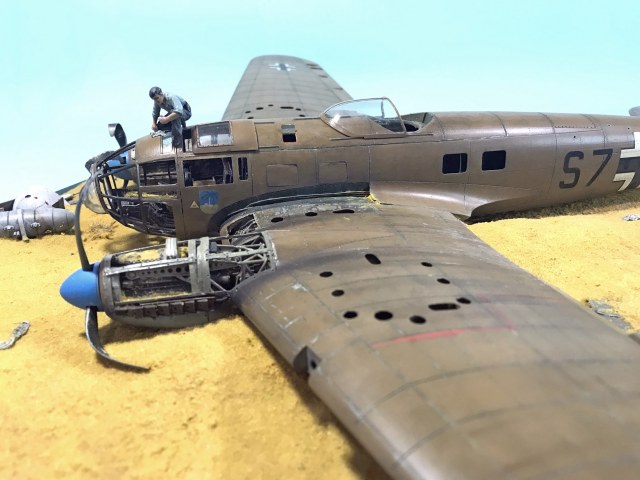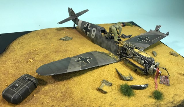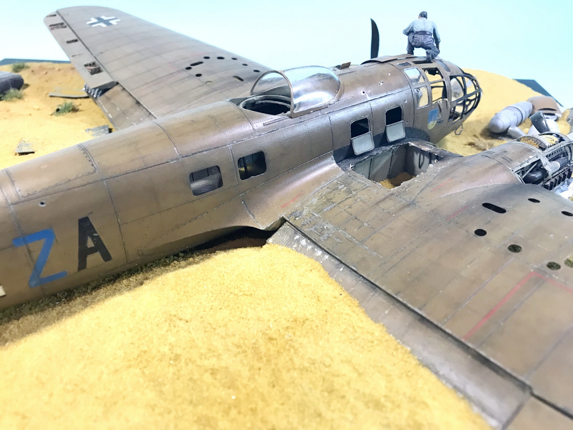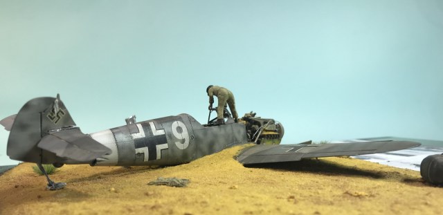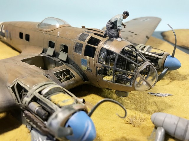 Очень понравилась диорама. По матчасти не спец., а вот по смысловой нагрузке душу греет.)) Я думаю может немного стоило опознавательные знаки немного покоцать, а может и нет? Еще как-то (на мой взгляд) вмятину на обтекателе правого винта темную тонировочку положить, а то выглядит как обычный пропил надфилем.