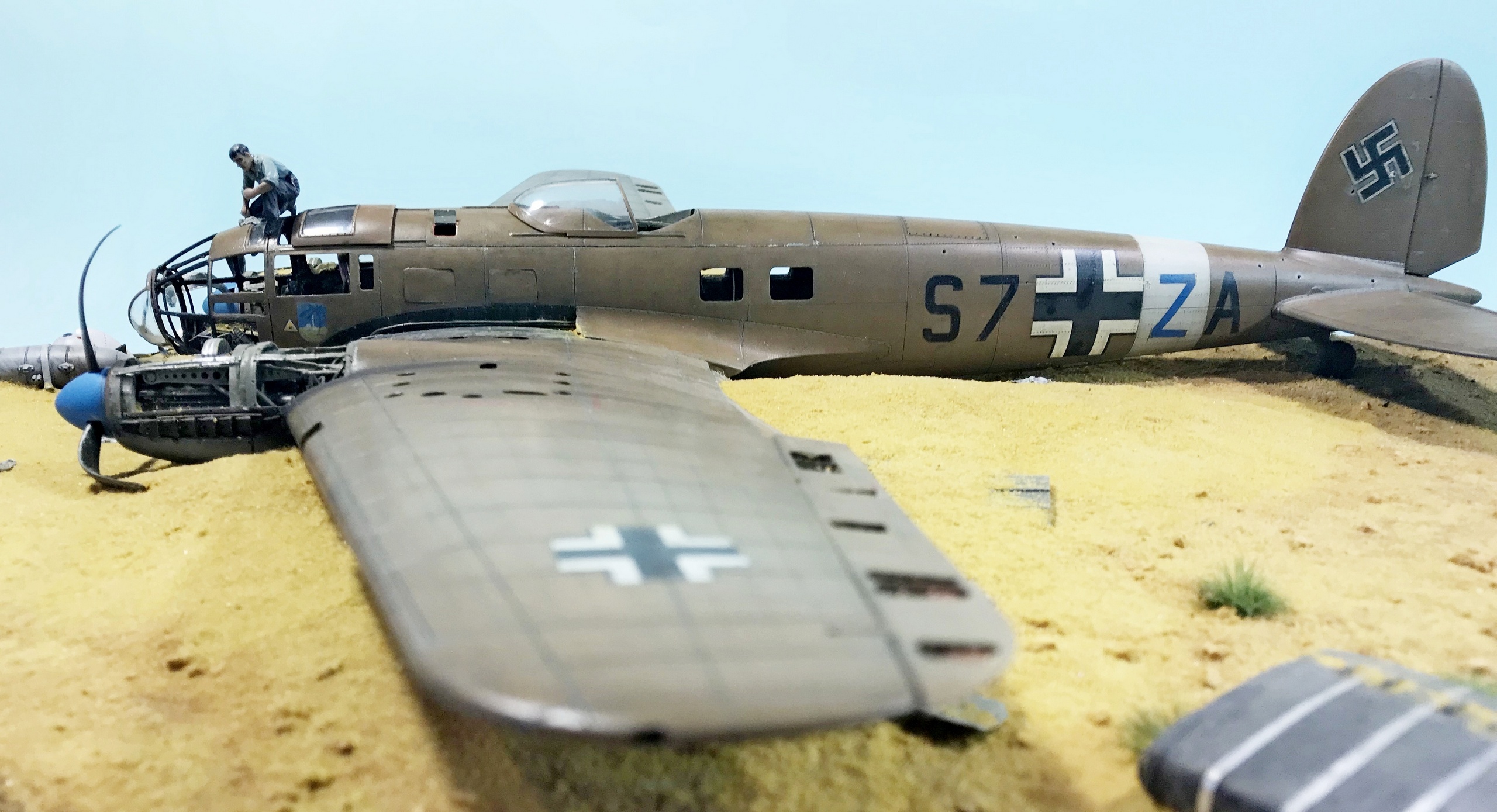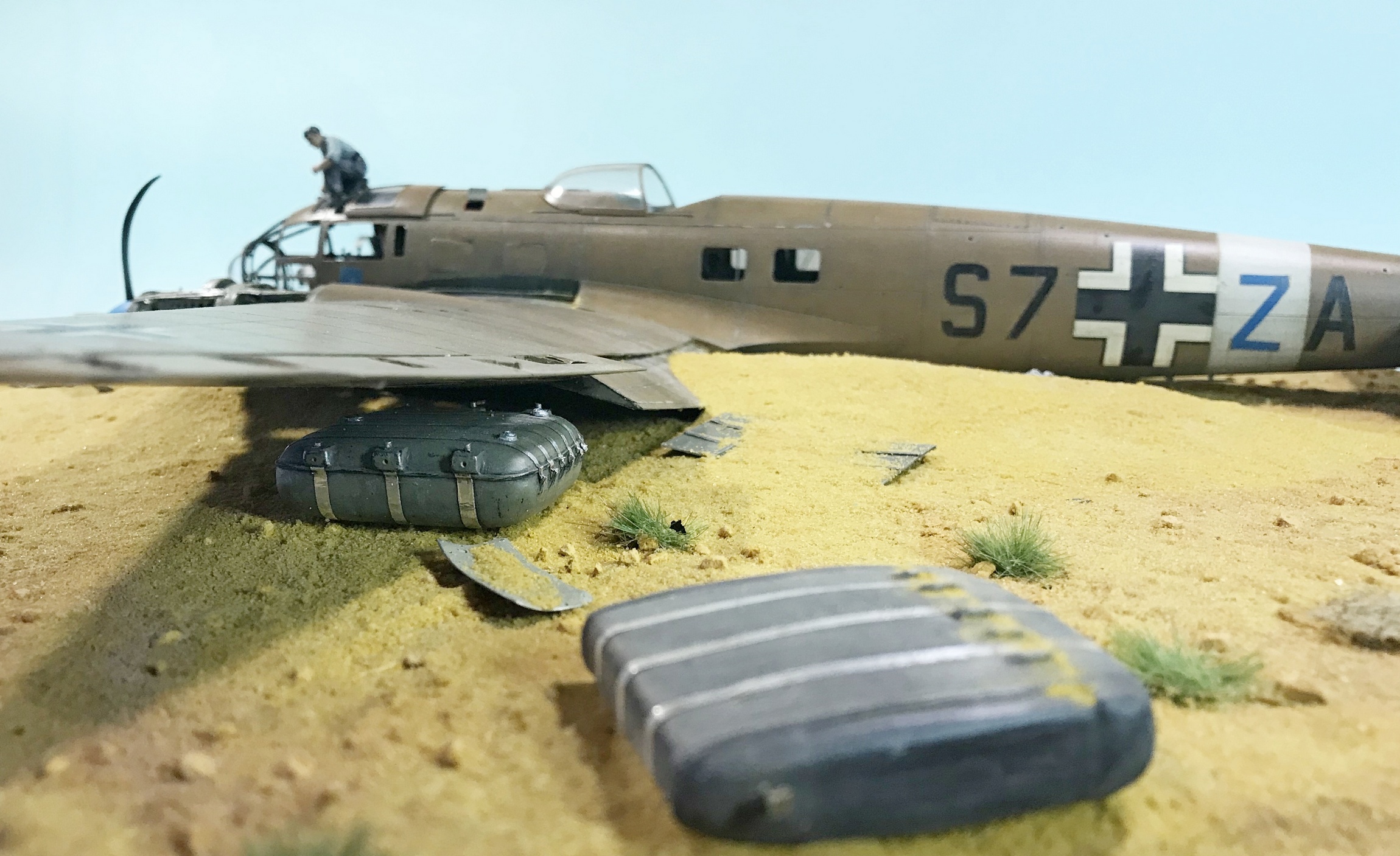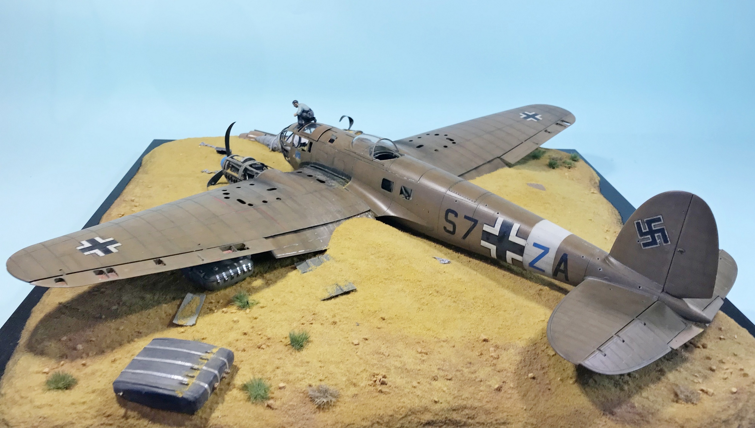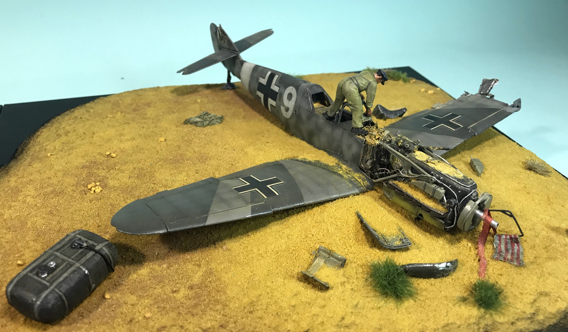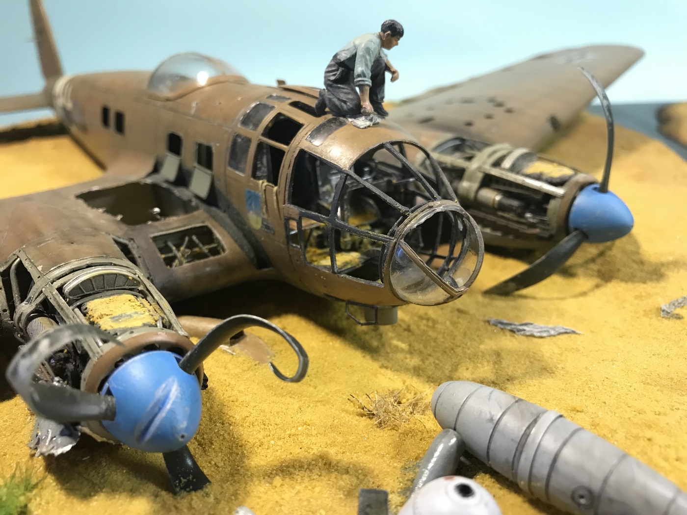 Представляю модельному сообществу фотографии моей очередной диорамы. Стройка продолжалась на протяжении всего 2018 года с небольшими перерывами. За основу были взяты фотографии, сделанные в Египте в 1942 году. В качестве доноров для этого "металлолома" послужили модели Не-111 Н-3 от фирмы "ИСМ" и Bf.109 F-2 от фирмы "Звезда". Обе модели уже хорошо известны, отличного качества и поэтому в отдельном представлении не нуждаются. Сильно загружать информацией по строительству диорамы не буду. Тем кому это интересно могут посмотреть весь этот процесс здесь: : http://scalemodels.ru/articles/12831-He-111H-5-i-Bf-109F---na-zadvorkakh-bolshojj-vojjny.html