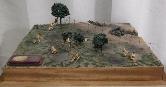 "За оборону Ленинграда" только на диораме обороняются немцы, мало того, что вам нужно многому научиться в росписи фигур, нужно ещё и сюжет продумывать или название поменяйте, типа "прорыв" или что то подобное