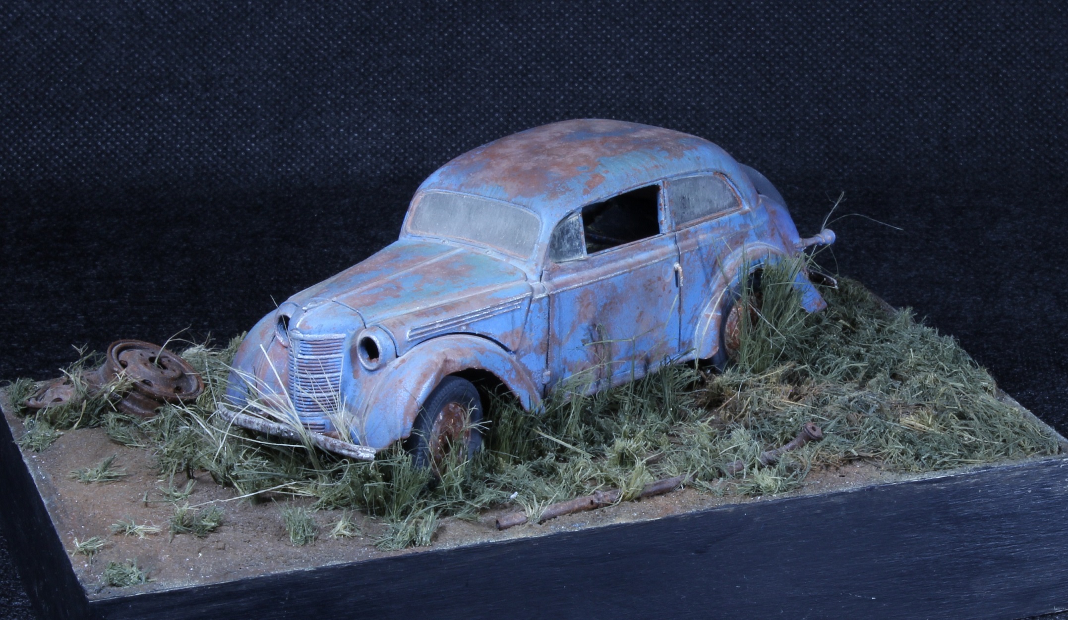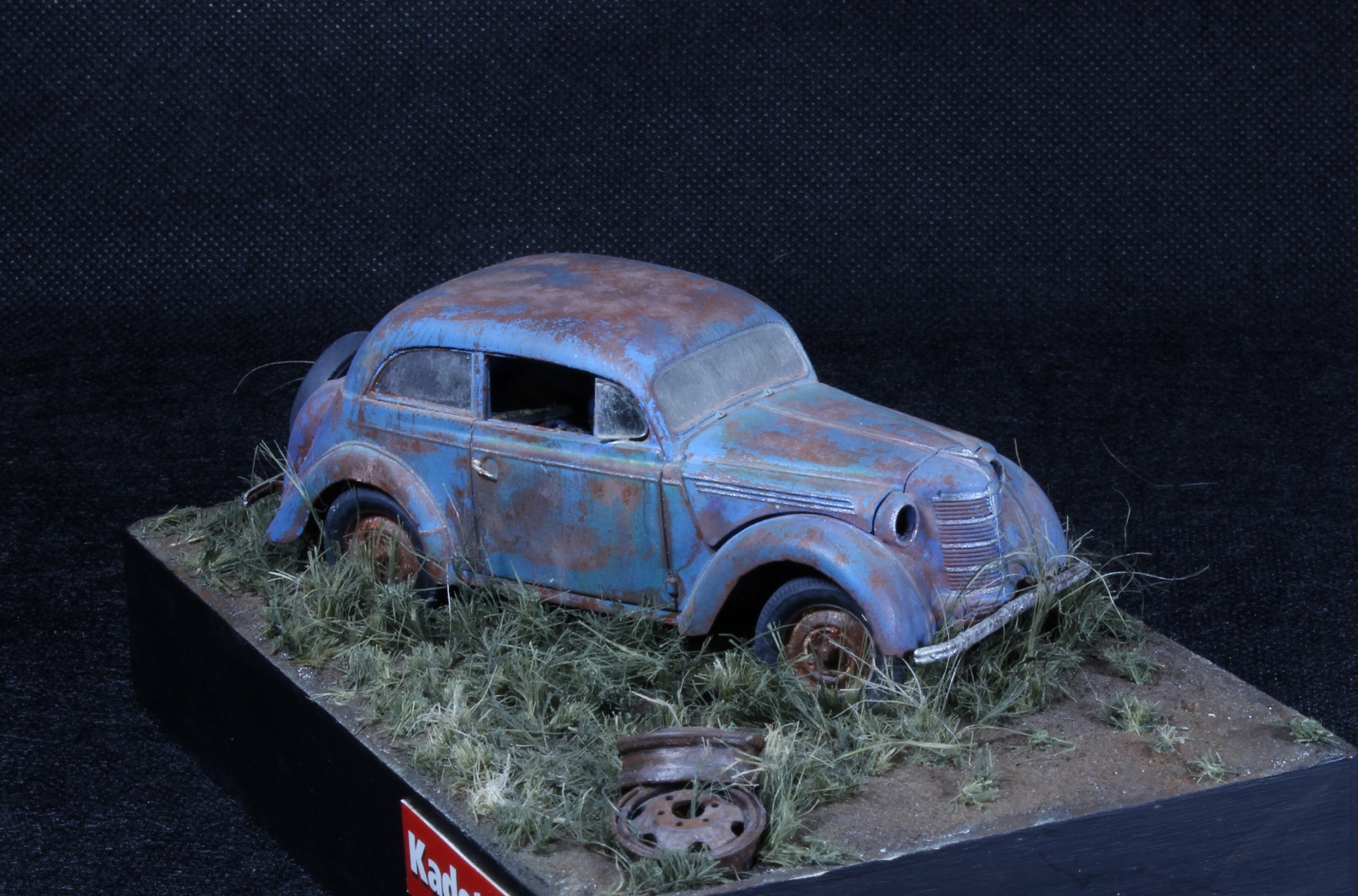 Колесики и запаска - собственного литья, мастер-модель тоже моя.Пришлось делать -никто правильные колеса к Опелю и Москвичу к сожалению не выпускает.