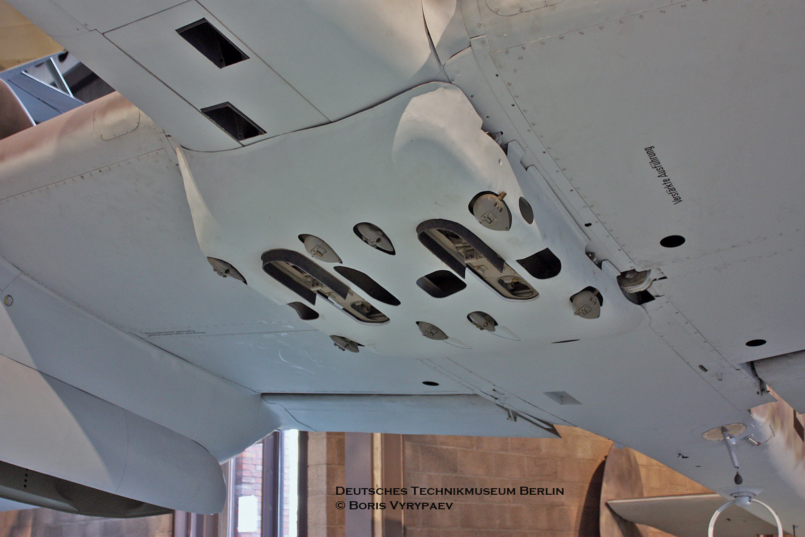 К сожалению, доступ к самолёту только спереди и справа, со смотрителями договориться не удалось ни о том, чтобы принести с собой монопод, поэтому фото с верхней полусферы сделать не удалось, ни чтобы подойти с другой стороны.