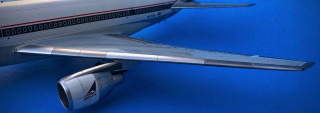 Сборку начал с изготовления отсутствующего канала воздухозаборника второго двигателя из термоусадочной трубки. Горячий контур двигателей слегка видоизменил чтобы походили на Rolls-Royce RB211-524B. Расширил отверстия входа в ВЗ, что ближе к реальному размеру, да и выглядят они так более правдоподобно. Сточил все задние кромки плоскостей. Лобовик заменил на свой, родной был мутным, жёлтым и с вкраплениями. Антиблик с переплётом фонаря накрашены. Под выхлоп ВСУ рассверлил отверстие в фюзеляже и вставил медную тонкостенную трубку. Немного доработал стойки шасси, использовав литники и медицинские иглы.
