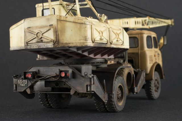 Прикольный кран вышел, классная окраска и везеринг! На какую-нибудь минидиорамку бы его. Если позволите, пара мелочей, бросающихся в глаза - затонировать бы немного трос, чтоб не был на нитку похож и линзы фар от Elf были бы лучше, родные грубоваты.