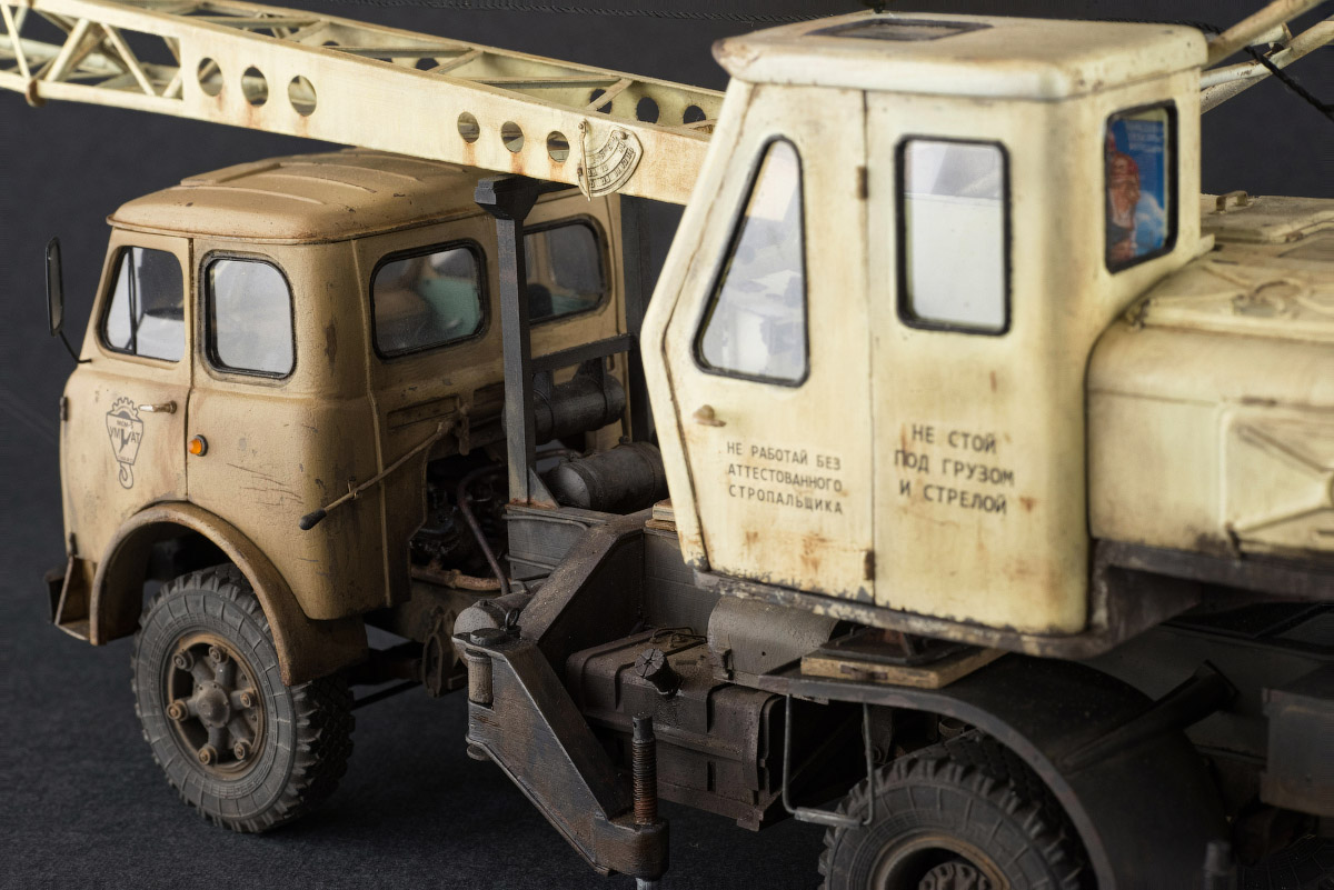 Это прекрасно, коллега! По честному, одно из лучших исполнений этой модели! А за рабочий кран отдельный респект. Очень понравились цвета машины и беж и выгоревший желтый, ну и тонировка ходовой просто прекрасная.