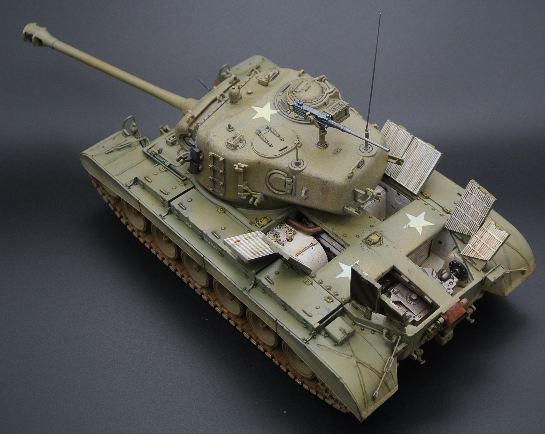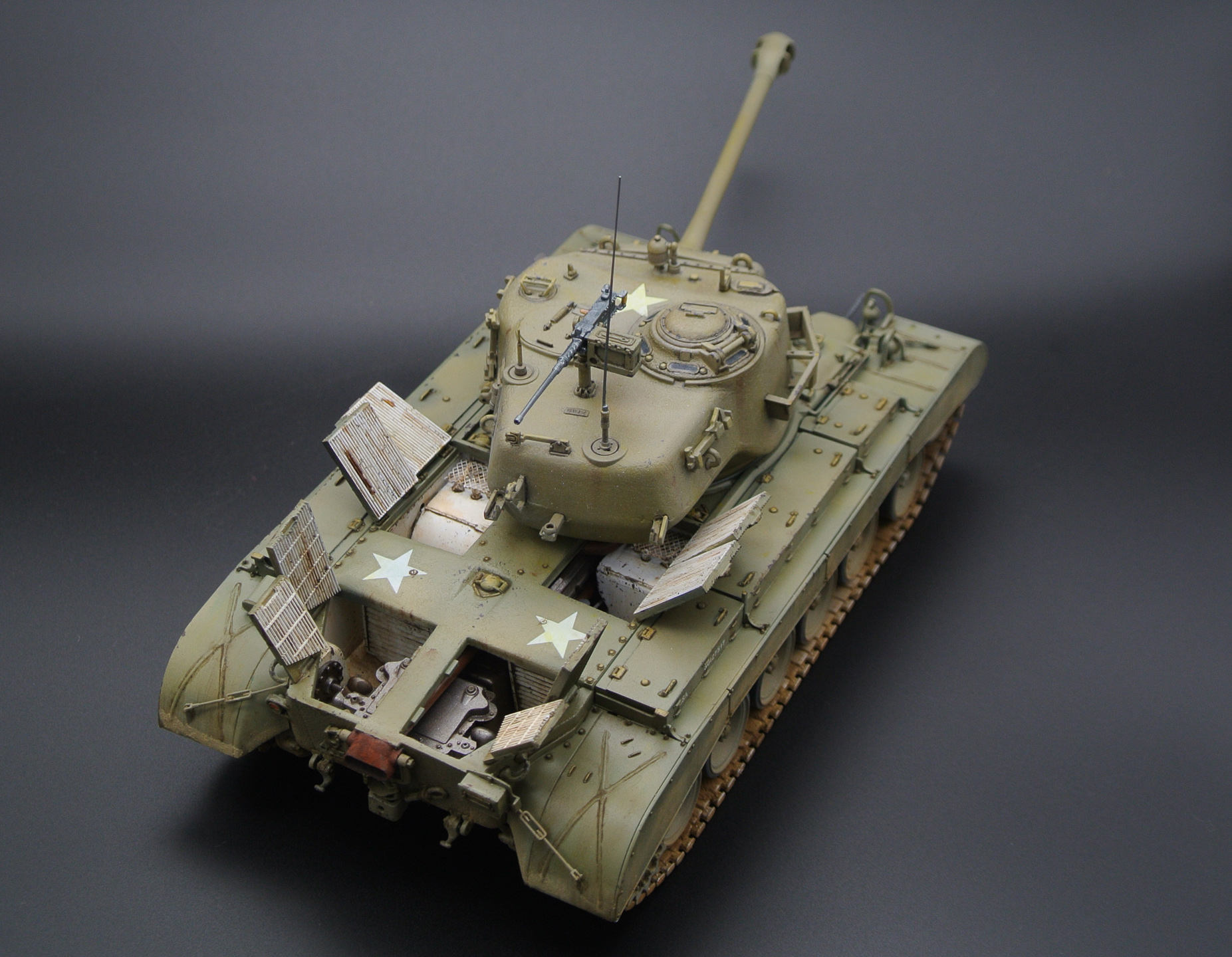 Коллеги по хобби, здравствуйте! Решил выложить недавно законченную модель Першинга от Хоббика. Это моя третья модель танка, поэтому многое пробовал на ней впервые: использовал виниловые гусеницы, травление, делал интерьер, впервые воспользовался лайтбоксом для фото. Красил как всегда Макром от Звезды и Пасификом88.
