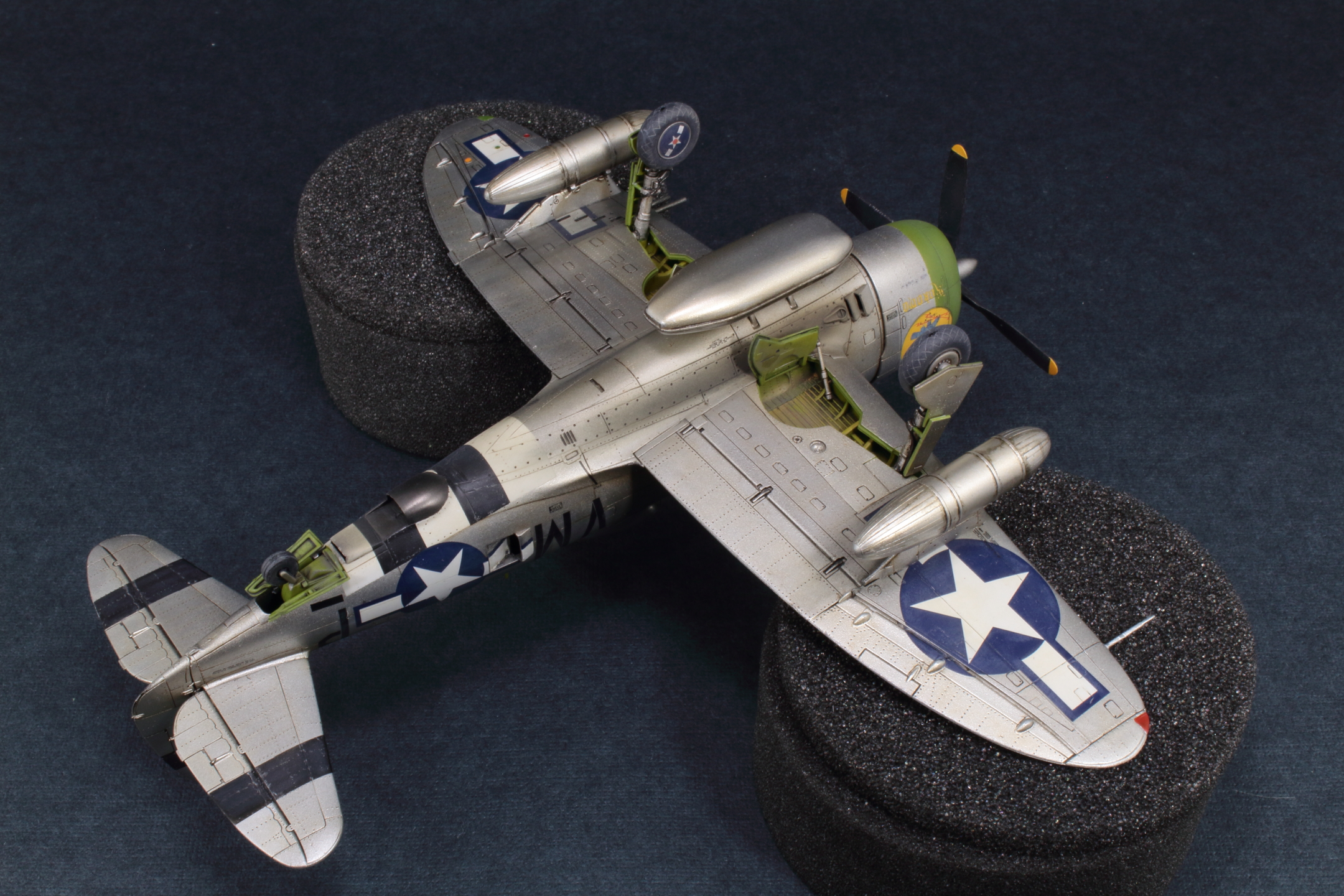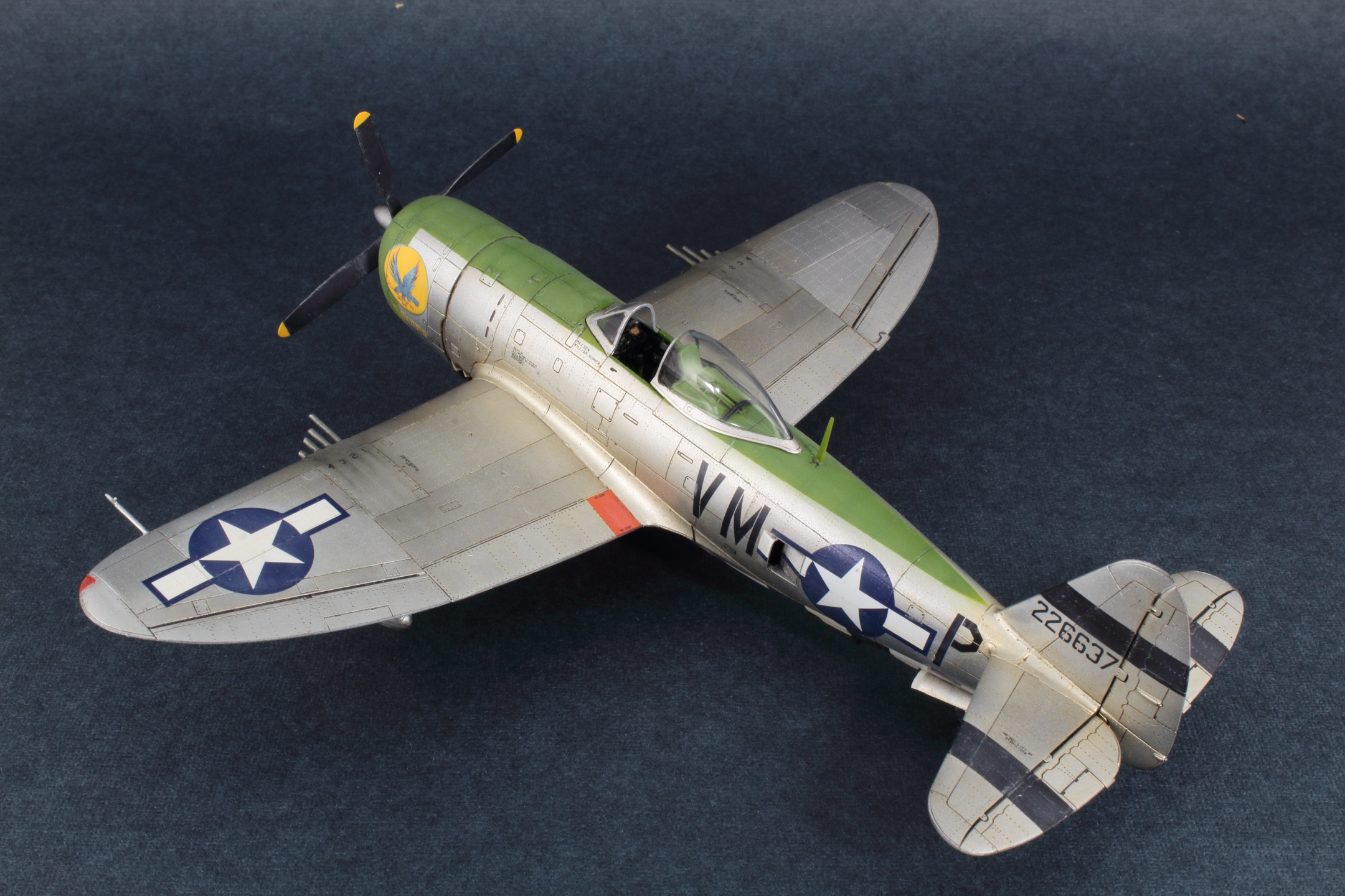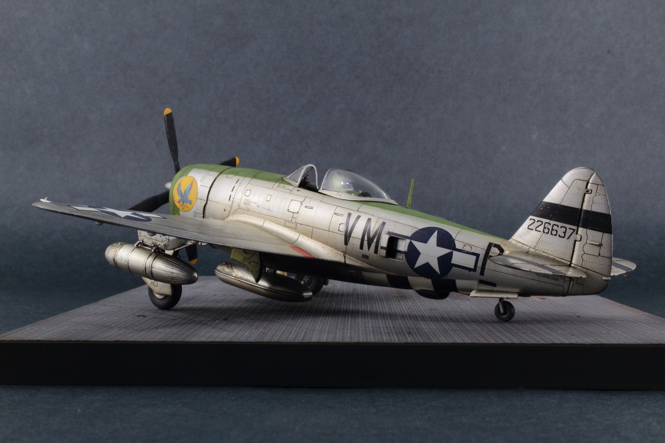 Как раз привязка то и есть, и конкретная, даже в инструкции к модели это написано: летал на этой машине генерал Уильям Кэпнер, из 495й истребительной тренировочной авиагруппы. И как раз эта историческая привязка позволяет сделать то замечание, о котором я написал выше.Только вот одно большое "но": конкретно на этой машине не было подкрыльевых пилонов, соответсвенно и баков тоже не было.