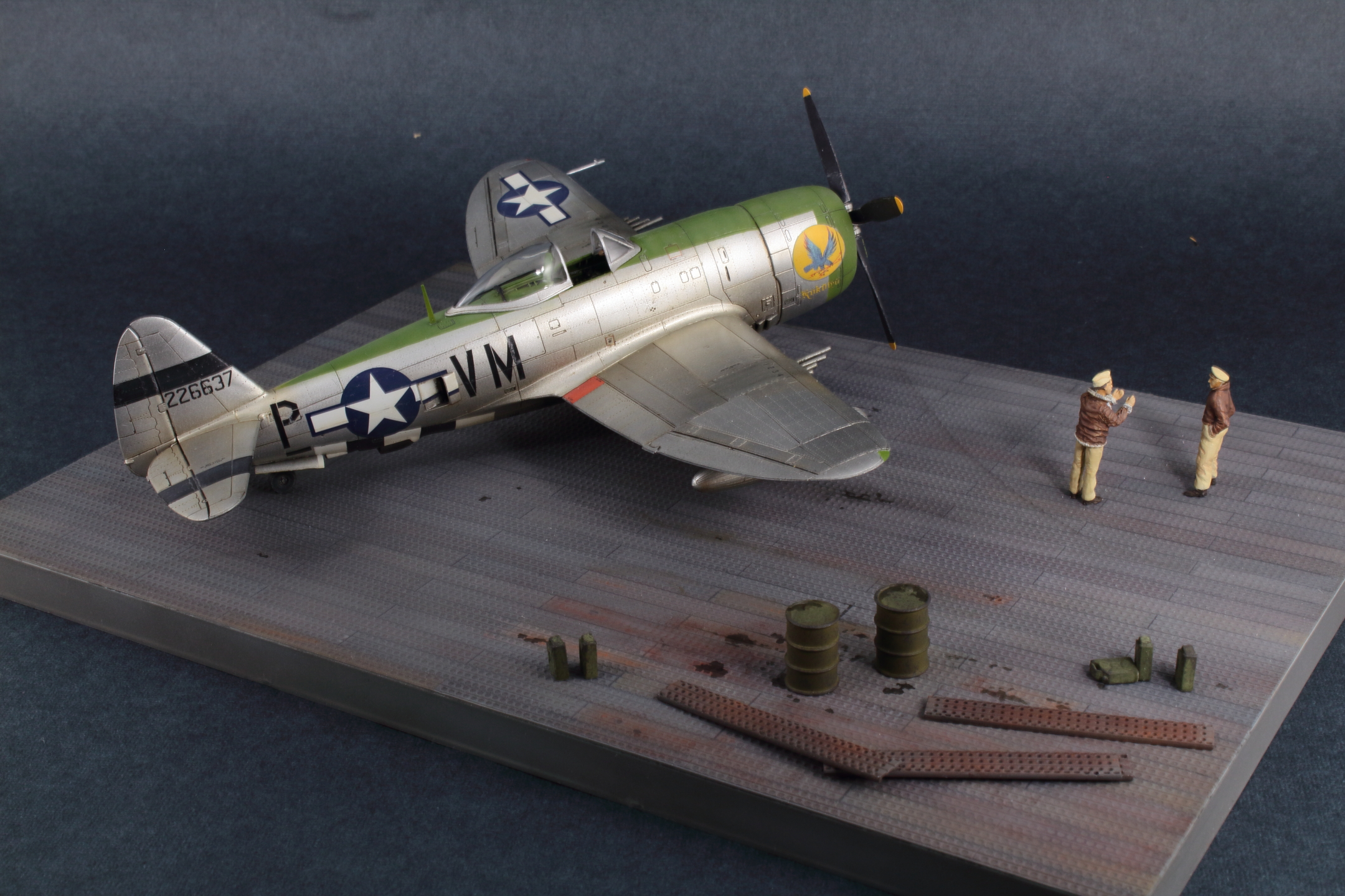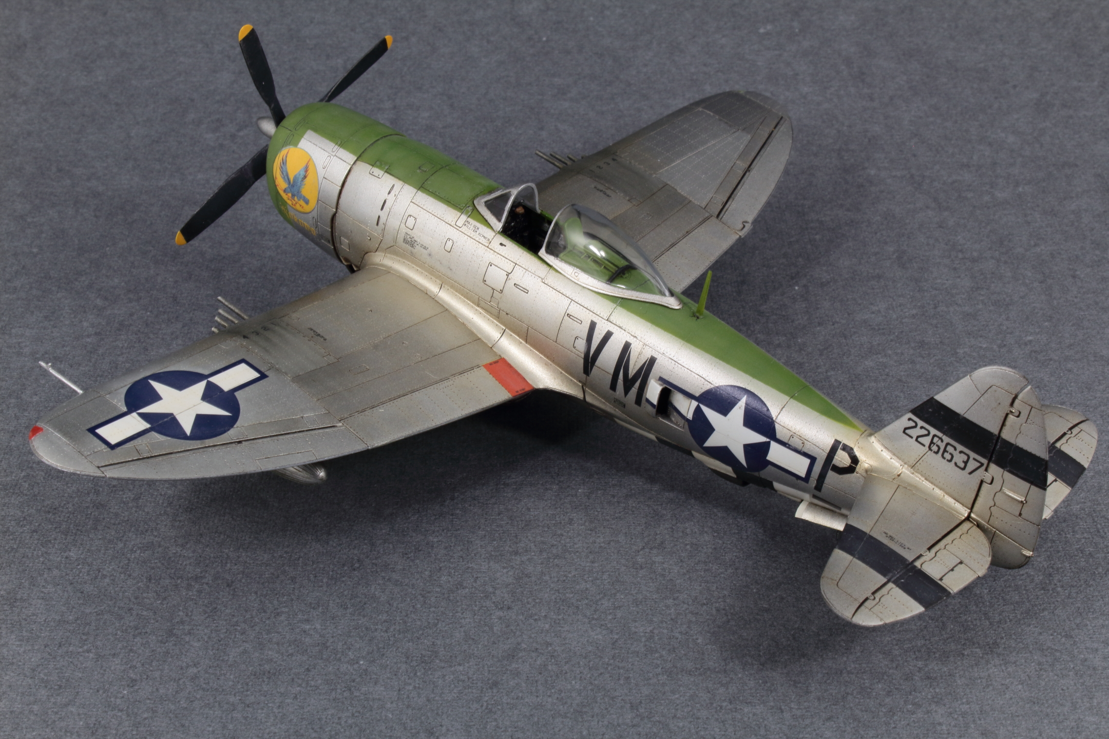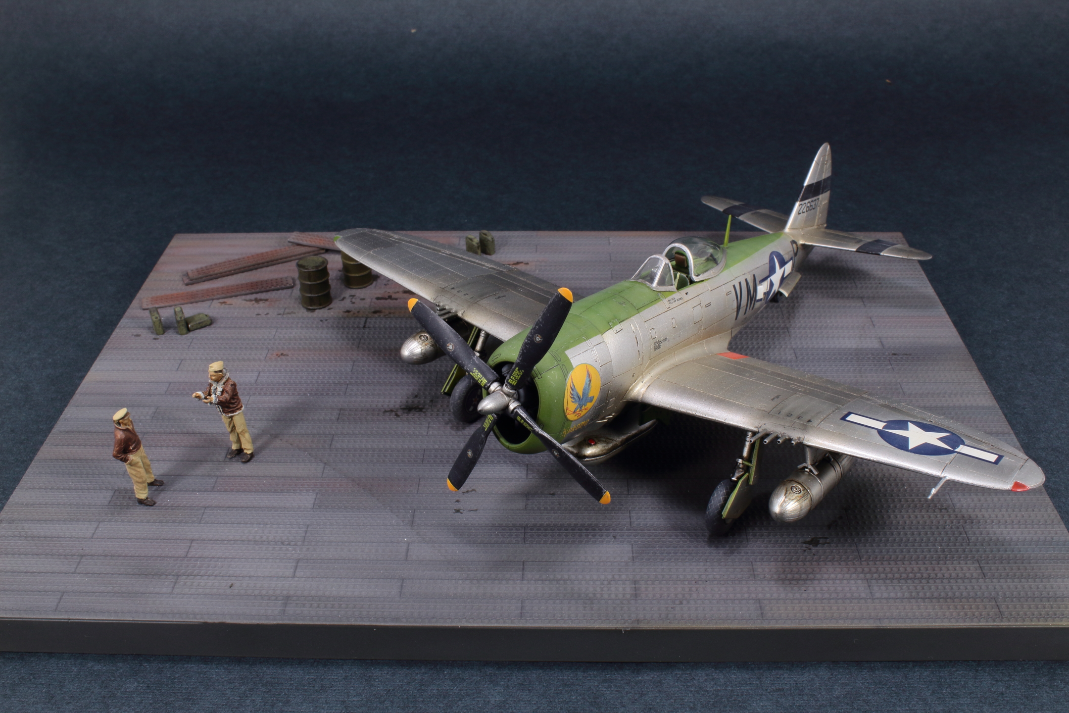 Как раз привязка то и есть, и конкретная, даже в инструкции к модели это написано: летал на этой машине генерал Уильям Кэпнер, из 495й истребительной тренировочной авиагруппы. И как раз эта историческая привязка позволяет сделать то замечание, о котором я написал выше.Только вот одно большое "но": конкретно на этой машине не было подкрыльевых пилонов, соответсвенно и баков тоже не было.