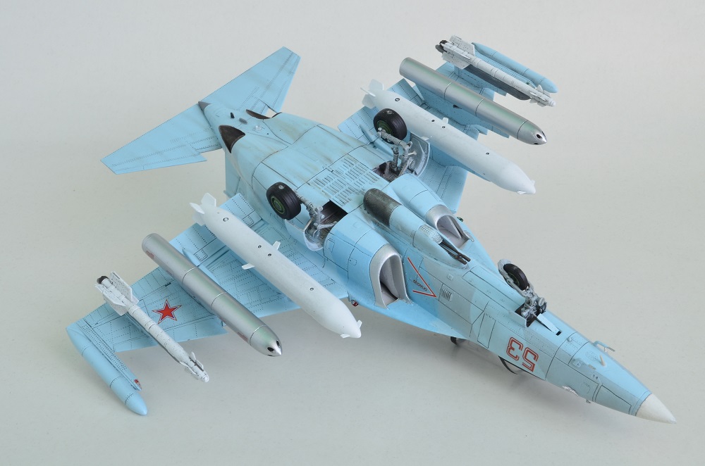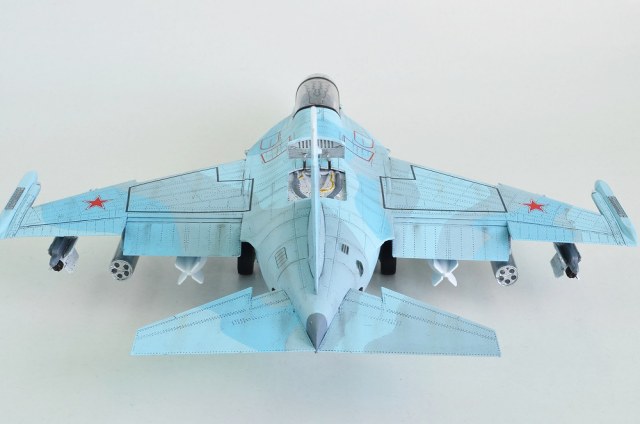 Модель приятна. Но на 48 масштаб, откровенно говоря, не тянет. Есть достаточно много небрежностей. Местами неровная расшивка, недоработанные места соединения деталей. Не подогнанный к фюзеляжу козырек фонаря с щелями. Откидная часть со ступенькой к козырьку. Искривленная граница техзоны на левом крыле. И с окраской что-то не так. Как-то он не живой совсем. Фонарь, наверное, ещё можно заполировать? Ощущение, что он пострадал во время стройки во многих местах.