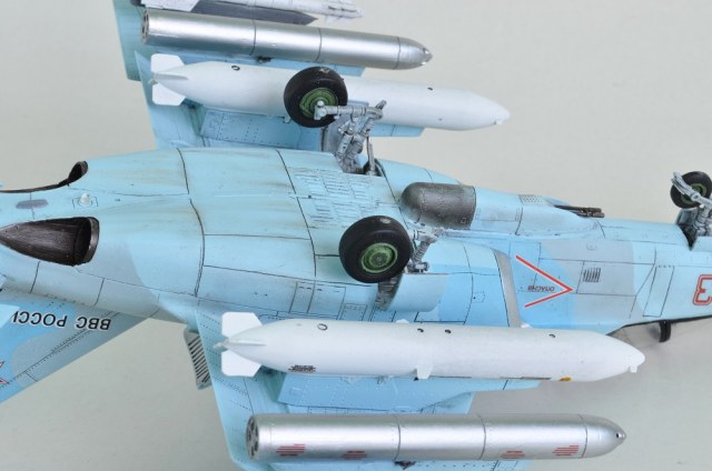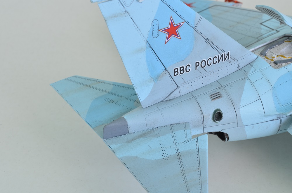 Что хочется отметить по сборке данного набора, встречались моменты по ходу сборки которые не очень радовали , а в частности при стыковке головной части фюзеляжа и центроплана снизу по оси симметрии самолета получается очень большая шель , примерно 2,5 мм, пришлось подрезать детали воздухозаборников, затем шпаклевать , второй случай при стыковке носового обтекателя к ГЧФ также вылезла ступенька сверху также пришлось добавлять шпаклеки и выводить . Так же что очень сильно бросилось в глаза так это очень уж сильно глубокий крой в виде заклепочных швов по верху модели на центроплане и консолях крыла . Еще столкнулся с проблемой при обдекаливании модели был выявлен косяк производителя , декаль тех надписей в конце задом на перед , и " опасные зоны" на одну сторону !!!