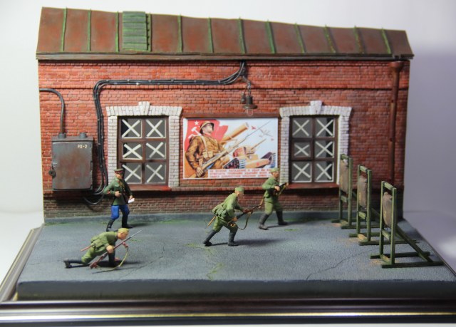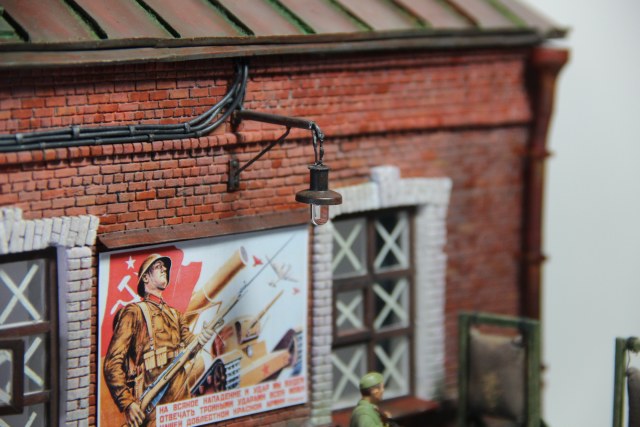 А вот понравилось! А вот здорово! Несмотря на дубовость фигур от "Звезды". Здание просто улет! Фигуры, конечно, для такой диорамы не очень, портят своими неестественными позами шикарную композицию, но это косяк производителя, автор проделал потрясающую работу по приведению их к нормальному виду. На будущее, не стесняйтесь брать фигуры от нормальных производителей, все у Вас здорово получается! И окраска и внимание к мелким деталям. Просто фигуры от "Звезды"- го..но. Удивляюсь, почему их еще с производства не сняли? Замыленные же до нельзя!