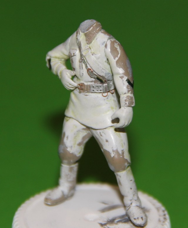 Ну а если серьезно: пытаясь понять, в чем же причина этого эффекта «пластилиновых» фигур, покрытых гуашью, пришел к выводу, что если не принимать в расчет «кривые руки» и изначальную замыленность набора (что препятствует естественному появлению теней), то причина в матовом лаке, которым я щедро покрыл фигурки перед установкой на диораму дабы избежать проклятого блеска. Видимо переборщил, лак окончательно убил тени и сгладил цветовые переходы, дав эффект пластилина. Вот несколько фото до и после лака. Ну что ж, «лучшее – враг хорошего», в следующий раз будем пытаться соблюсти золотую середину между «уничтожением блеска» и «появлением пластилина». Если коллеги подскажут иную причину моих косяков – с удовольствием приму к сведению.