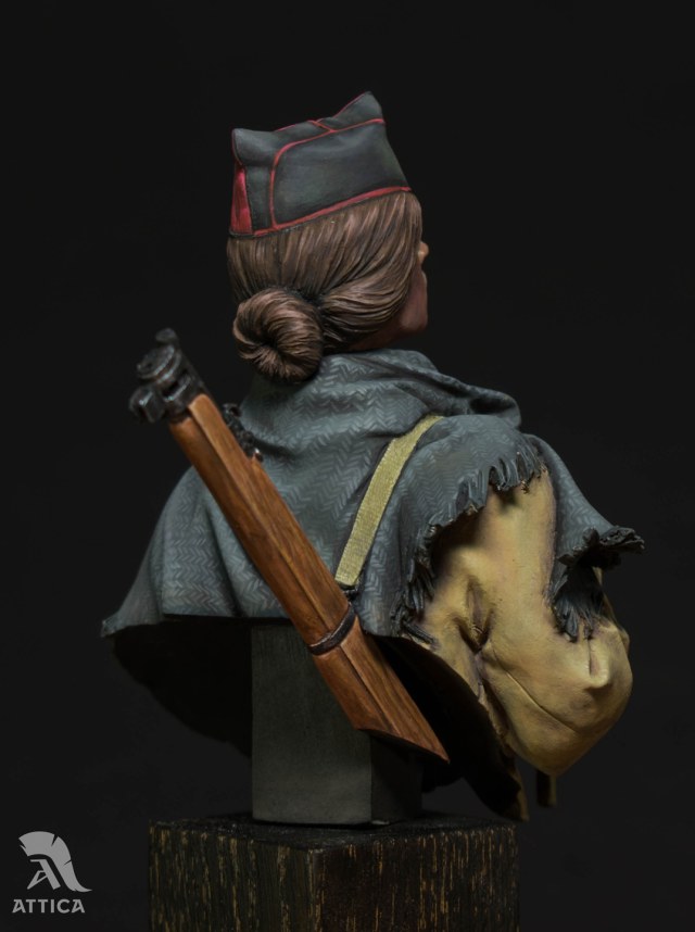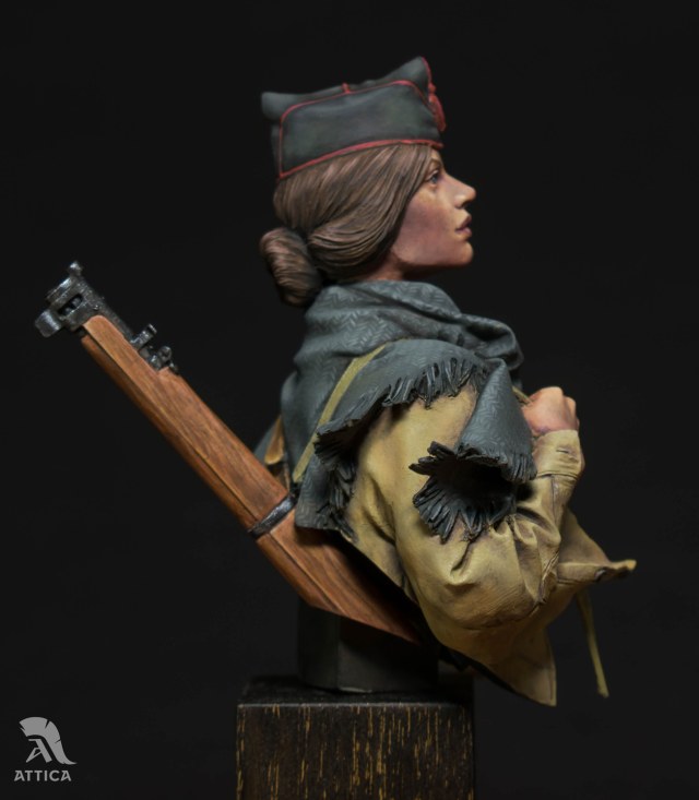 Этап росписи. Из хорошего. В отличие от предыдущего бюста, здесь заказчик сразу оговорил, чего он примерно хочет, и его мнение не менялось по ходу работы - максимально исторично, и чтобы было похоже, будто она после боя. Работа существенно затягивалась отправлением массы поэтапных фото и ожиданием одобрямса, но это было не критично, поскольку было на что отвлекаться без перезагрузки мозга.