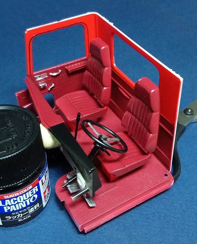 И ещё одна моя ошибка, клёпки надо было менять и на дверях спальника, так как они там мелкие и в сравнении с кабиной сильно палятся, хотя на задней стенке спальника, клёпки крупные были изначально. Капот, после установки решётки радиатора, полностью не открывается, поэтому фотки движка взял из стройки, так же как и салона.