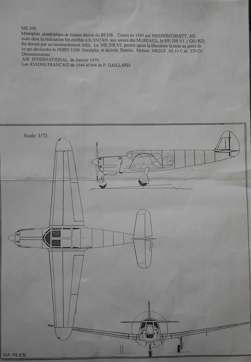 Многоцелевой вспомогательный самолет Messerschmitt Me.208 был создан в 1943 году. Один экземпляр, попав к французам, получил обозначение Nord 1100 Noralpha и стал основой для создания вариантов Nord 1101 и Nord 1102. Посмотреть информацию о нём можно тут.