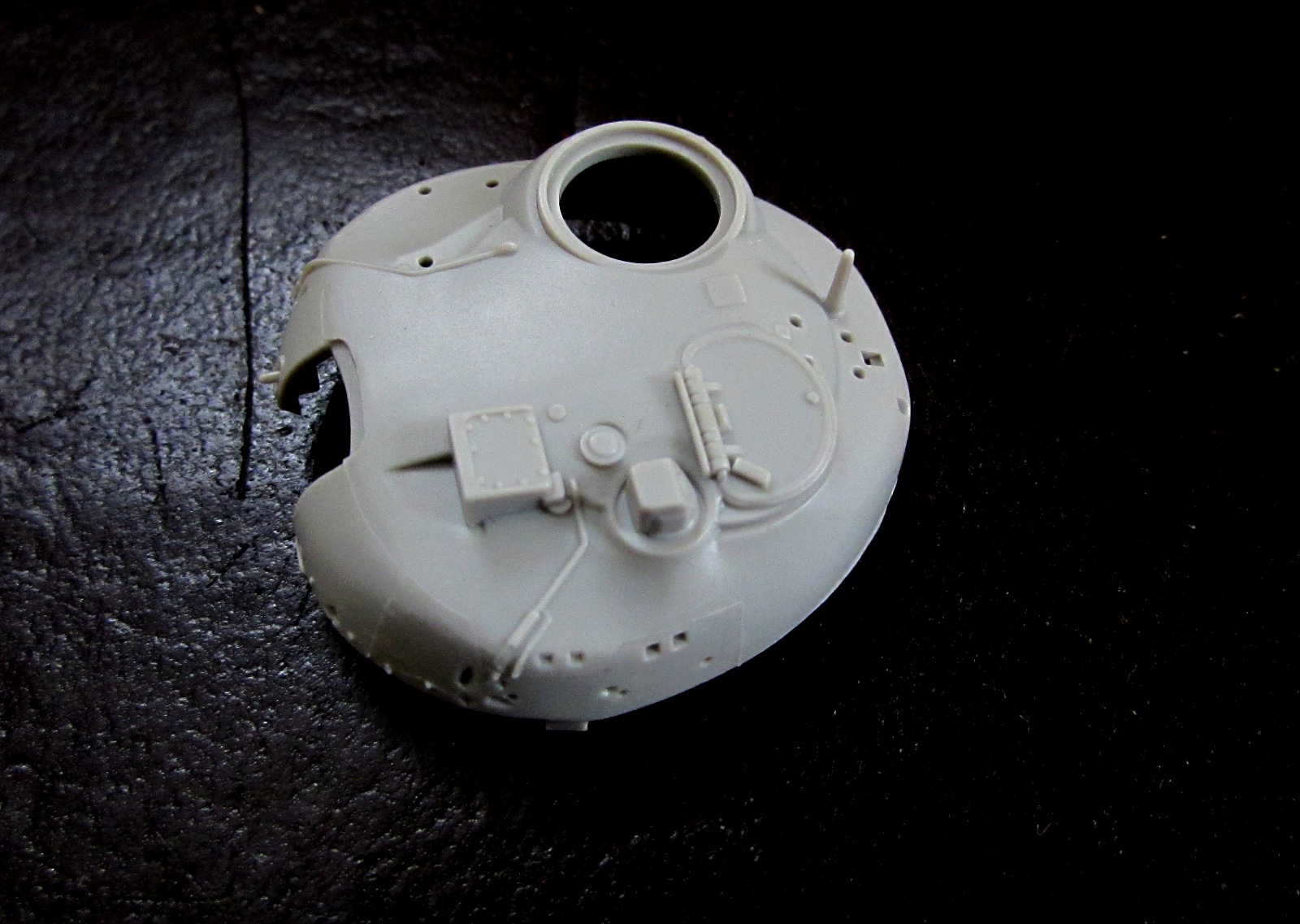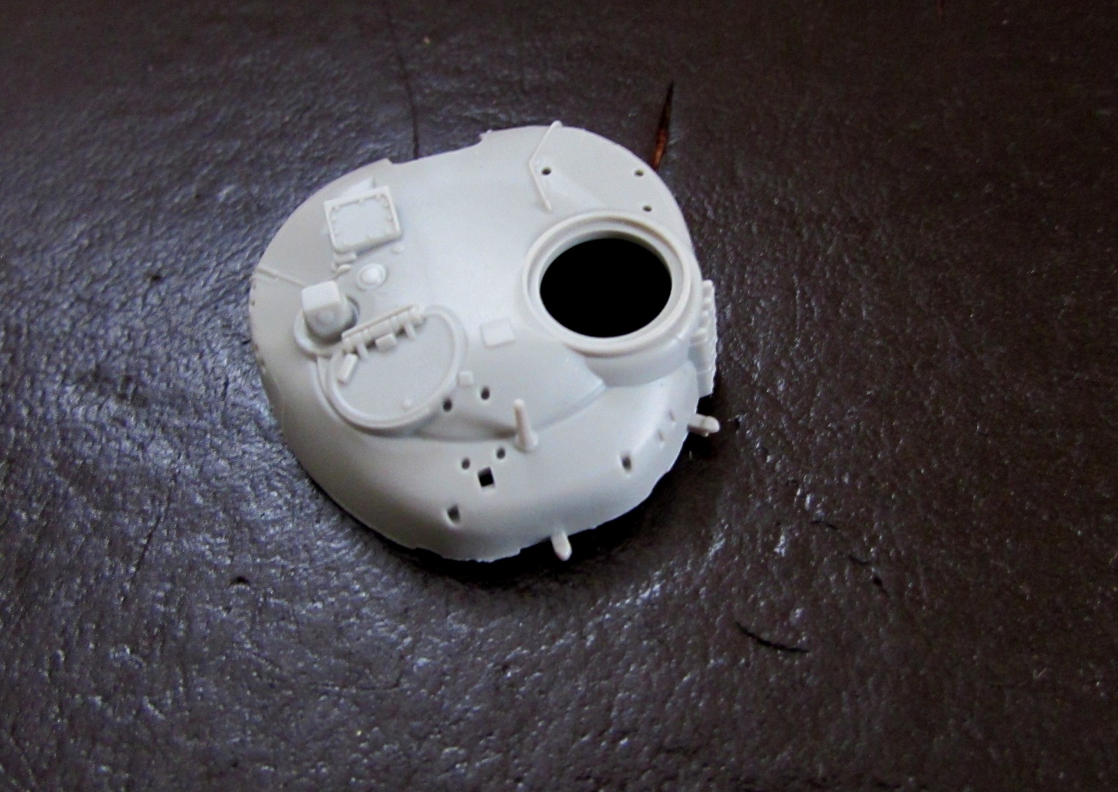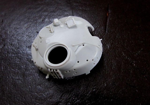 Башня отлита, в общем, неплохо - разве что облой и литьевые швы местами. Ну и отлитые вместе с ней запасные траки на башне ее не красят.