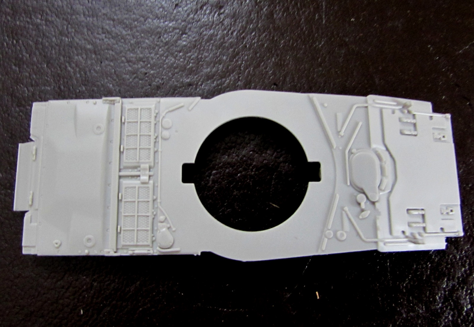 Средне. Большие детали сделаны отлично, малые (типа фар - даже обвел на фото) просто ужасно. Есть смысл распотрошить в этом плане какой-нибудь Т-90 от Звезды? Еще, в принципе, лучше поменять дымовые гранатометы - родные просто убожество.