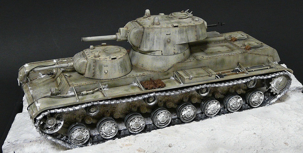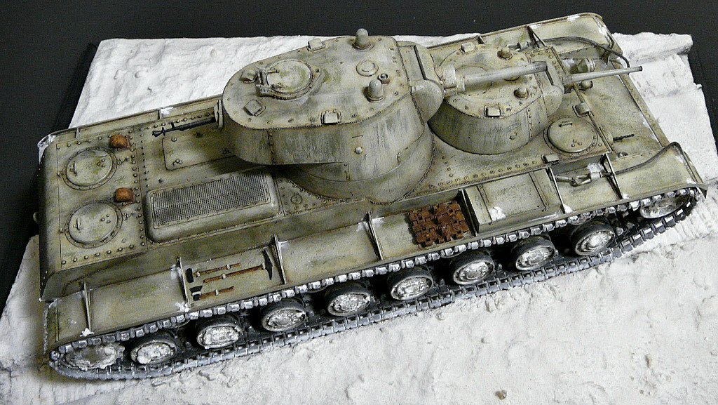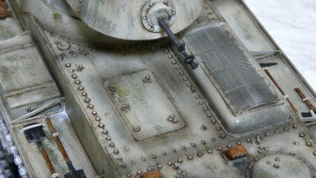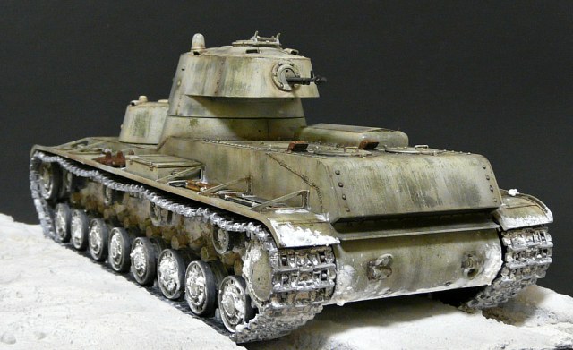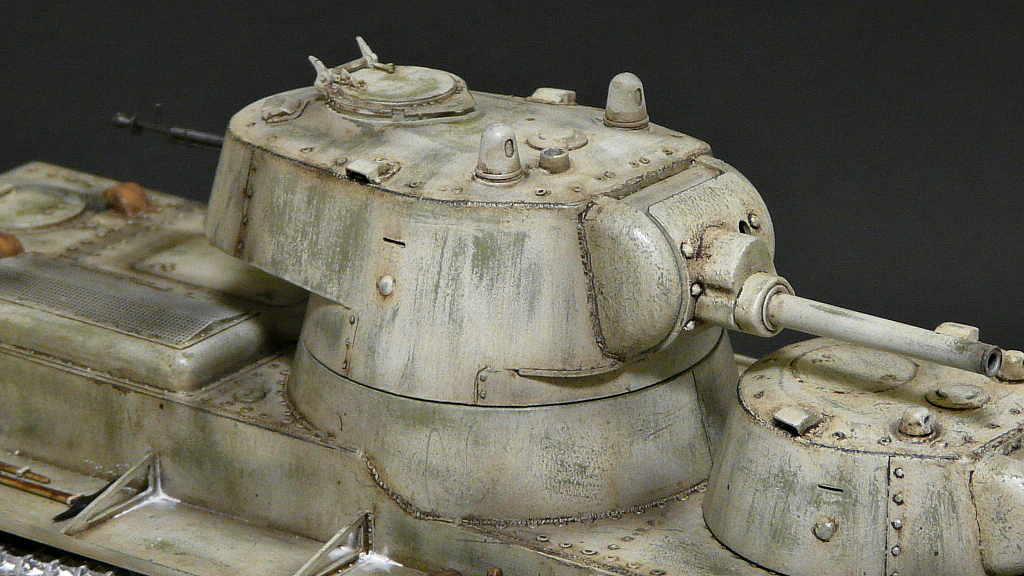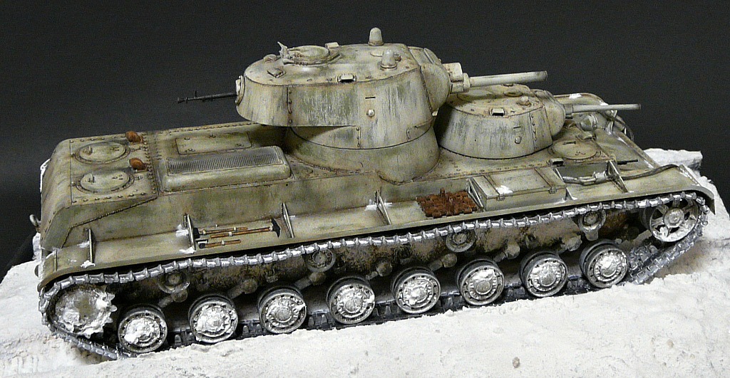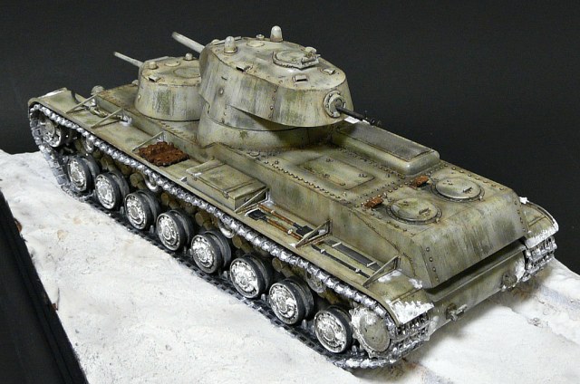 Строить решил в зимнем камо,мне кажется в нем он смотрится интересней,по матчасти сказать трудно,очень мало инфы и фото по данной модели,из доработок сварные швы,иммитация литья на масках пушек,клепки переделал на гужоны.