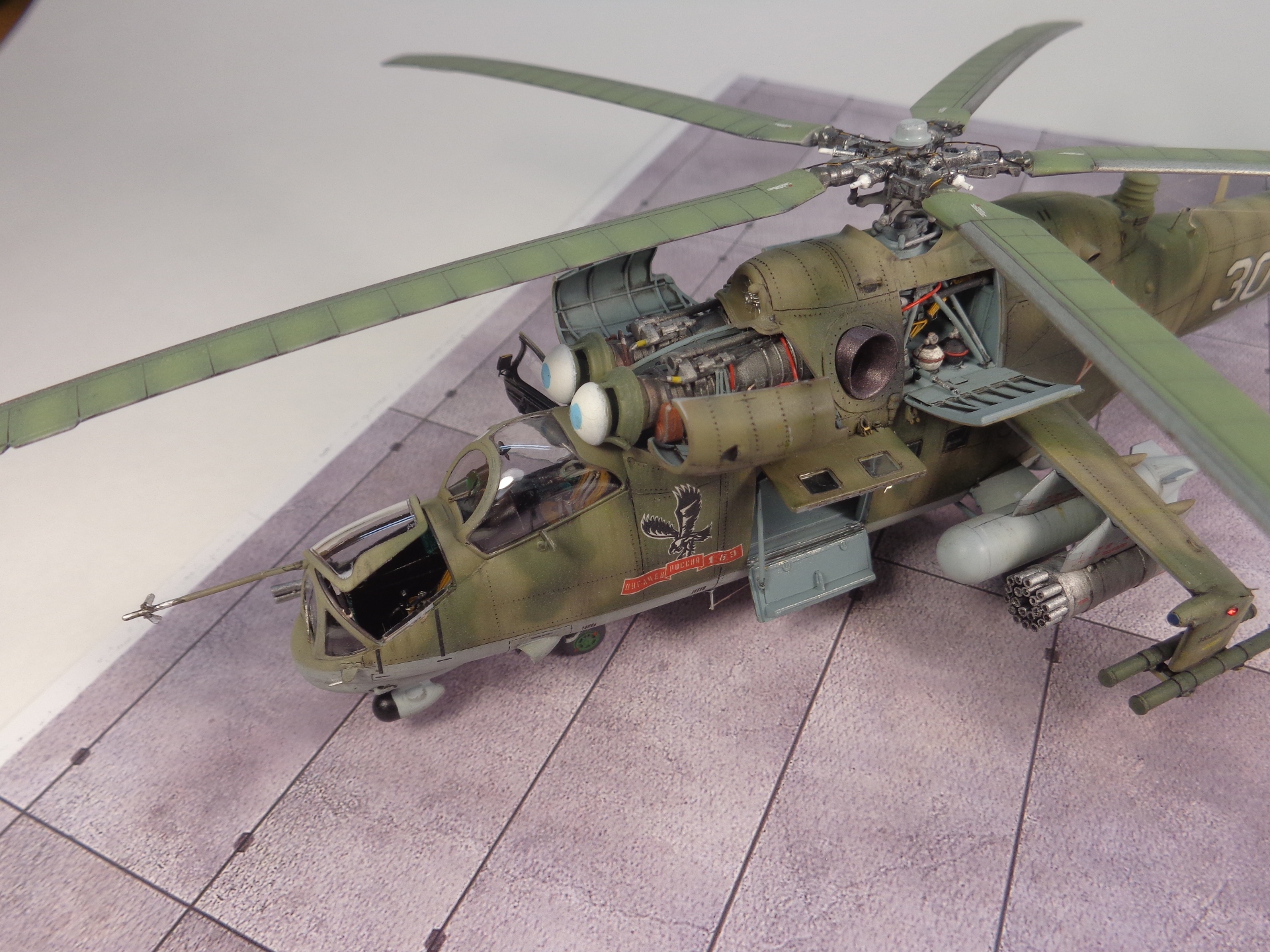 Схему окраски брал такую (Ми-24В), так как другого ничего не нашел. По расположению пятен вроде частично похоже.