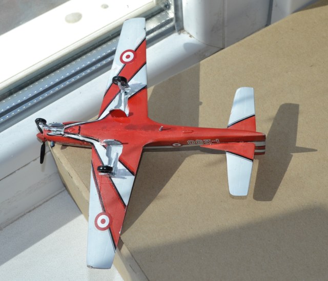 В процессе сборки самым долгим было выглаживание фюзеляжного шва на брюхе - непобедимая ступенька ещё и плохо проклеилась. Другим просчётом оказалось недостаточное количество свинца в носу - модель упрямо приседает на хвост, не спасло даже ухищрение в виде куска гвоздя в качестве вала винта!