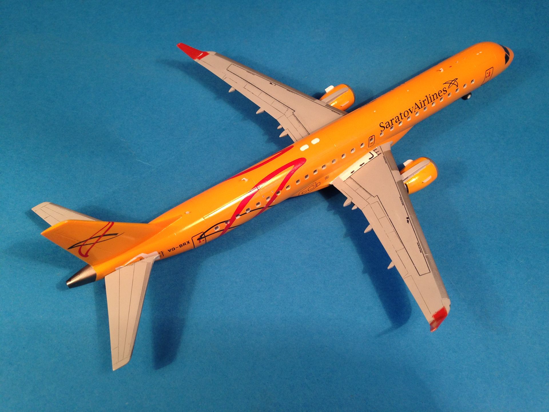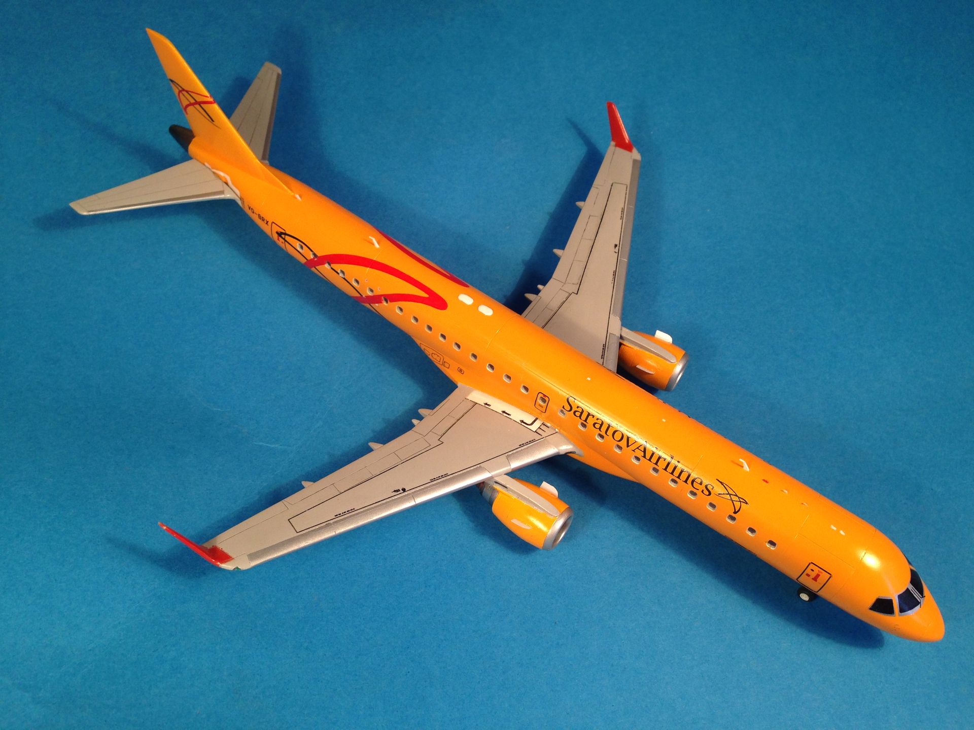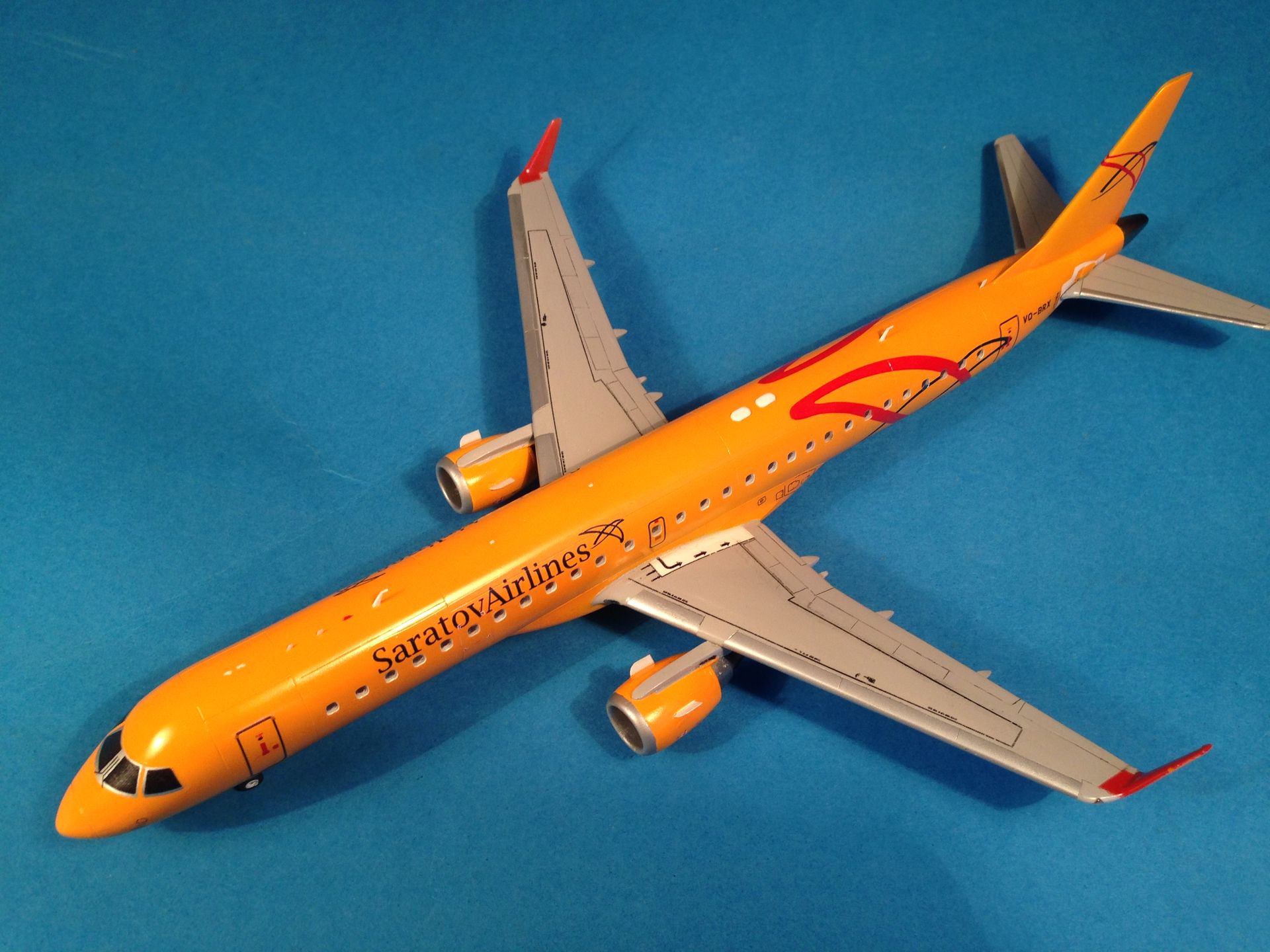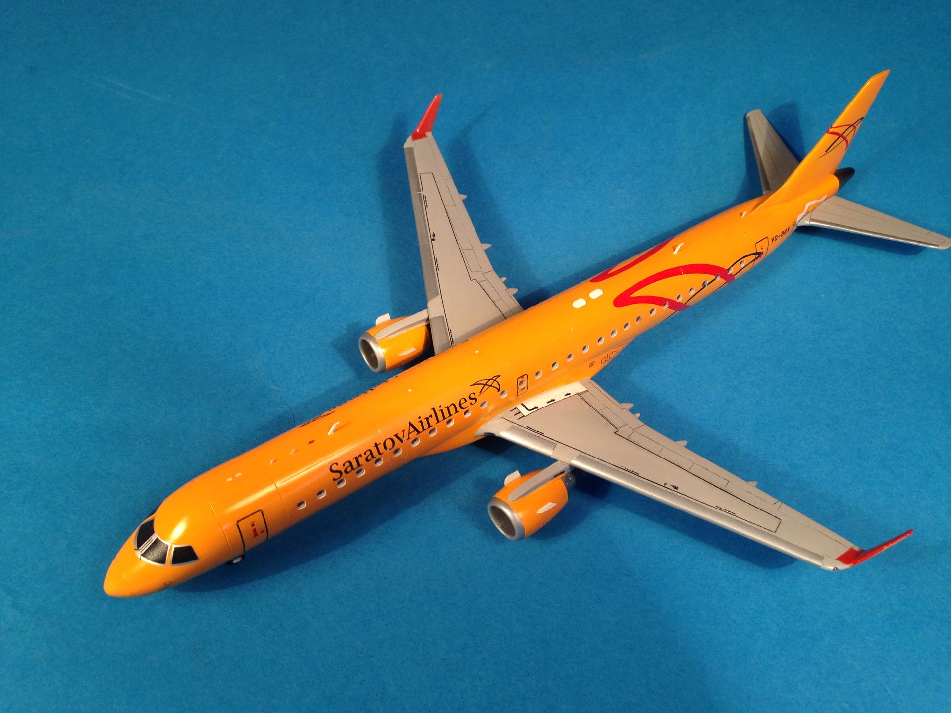 Окраска выполнена эмалями MrColor, фюзеляж - №58 Orange Yellow. Считаю, что в цвет попал идеально. Двигатели и ВСУ - металлики Gunze+тонировка прозрачными лаками Alclad, Смывка легкая, так как самолёты довольно чистые, смывкой Tamya.