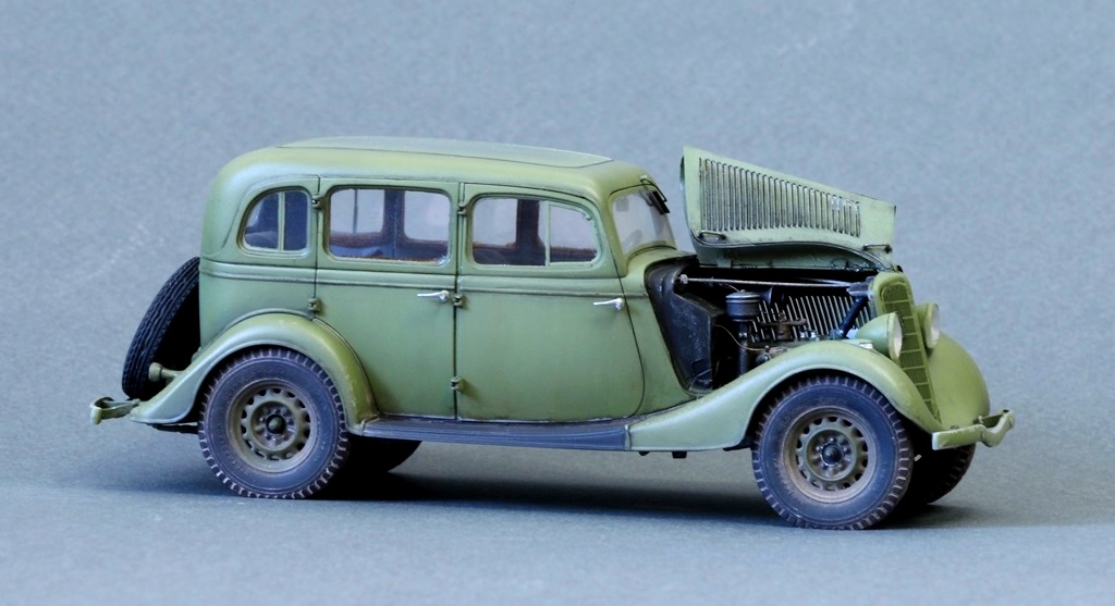 Долго думал по поводу окраски. Черный не хотел, хотелось авто времён Великой Отечественной, по этой причине выбор пал на защитный.