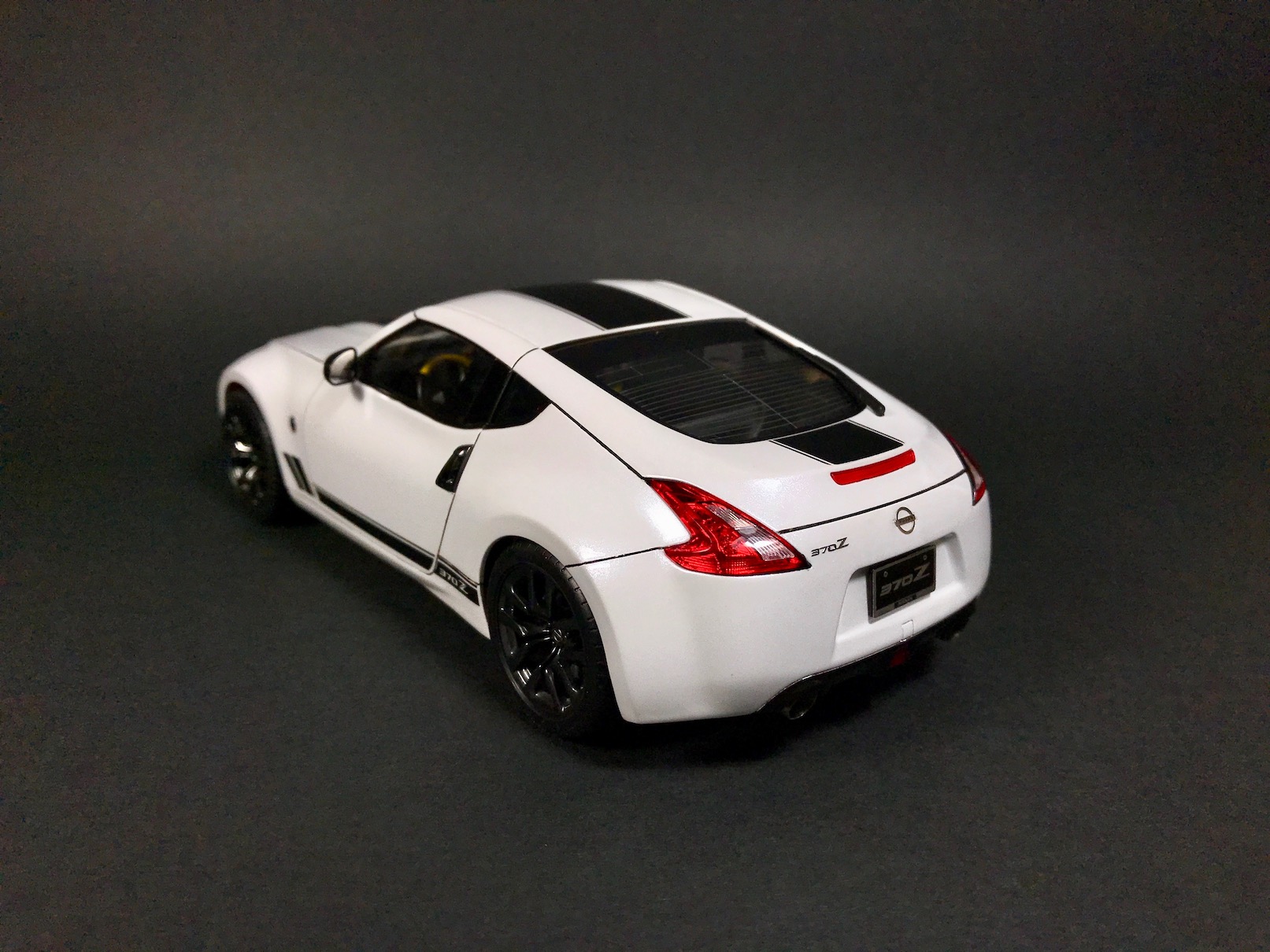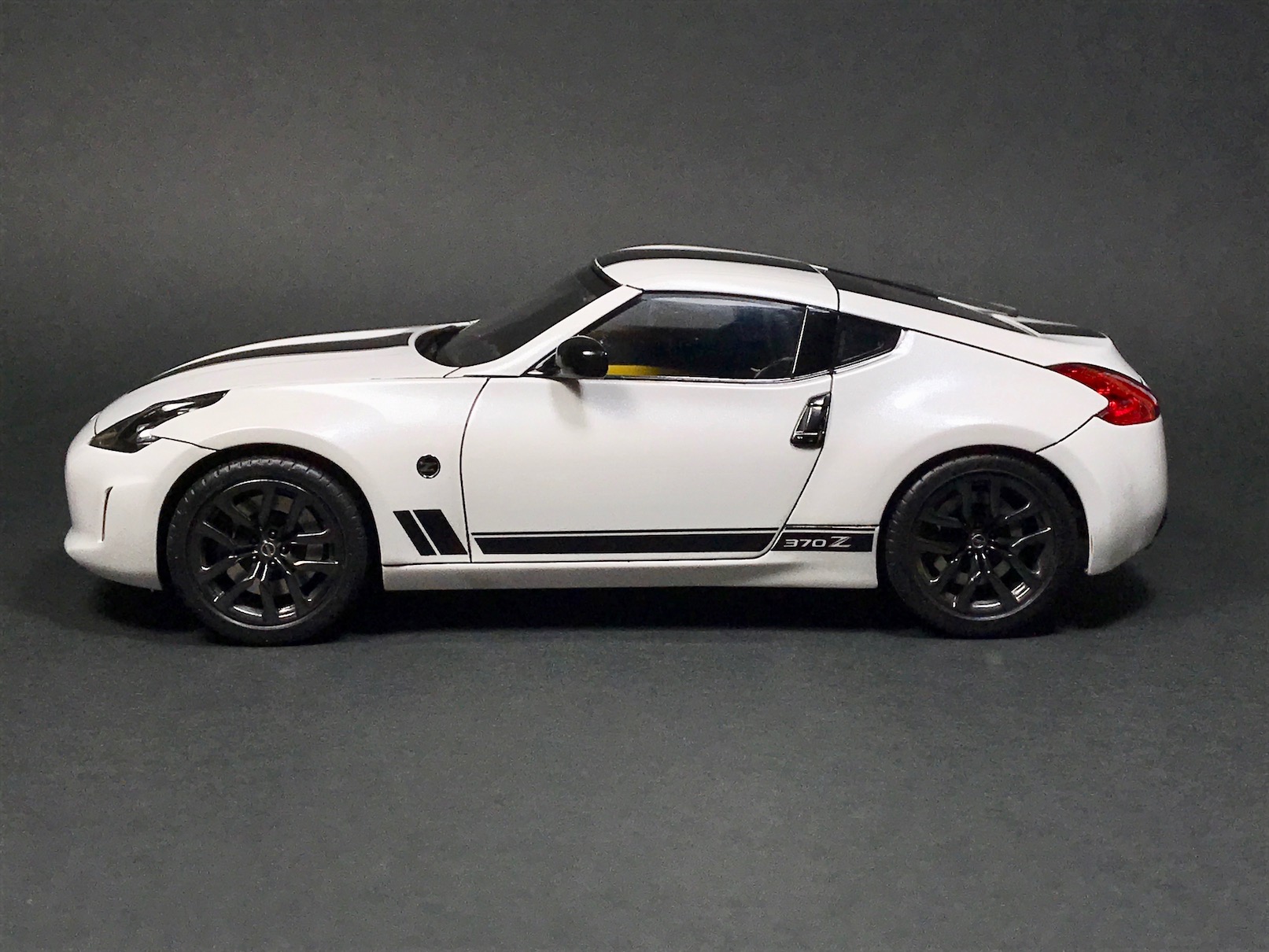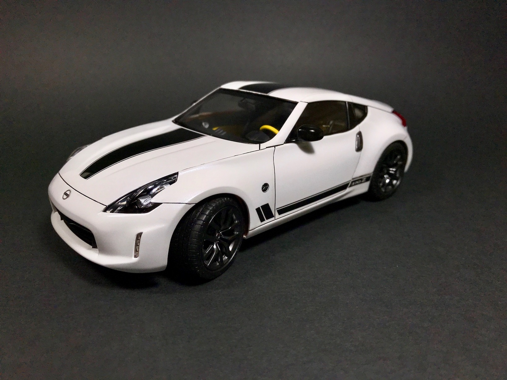 На этот раз ничего особо интересного - Nissan 370Z Heritage Edition от Тамии. Одна из последних Тамиевских моделей, по факту, отличающаяся от всем известной модели 370Z только некоторыми кузовными деталями и новыми декалями. В этом плане, кстати, Тамия расстроила - декали ужасные.