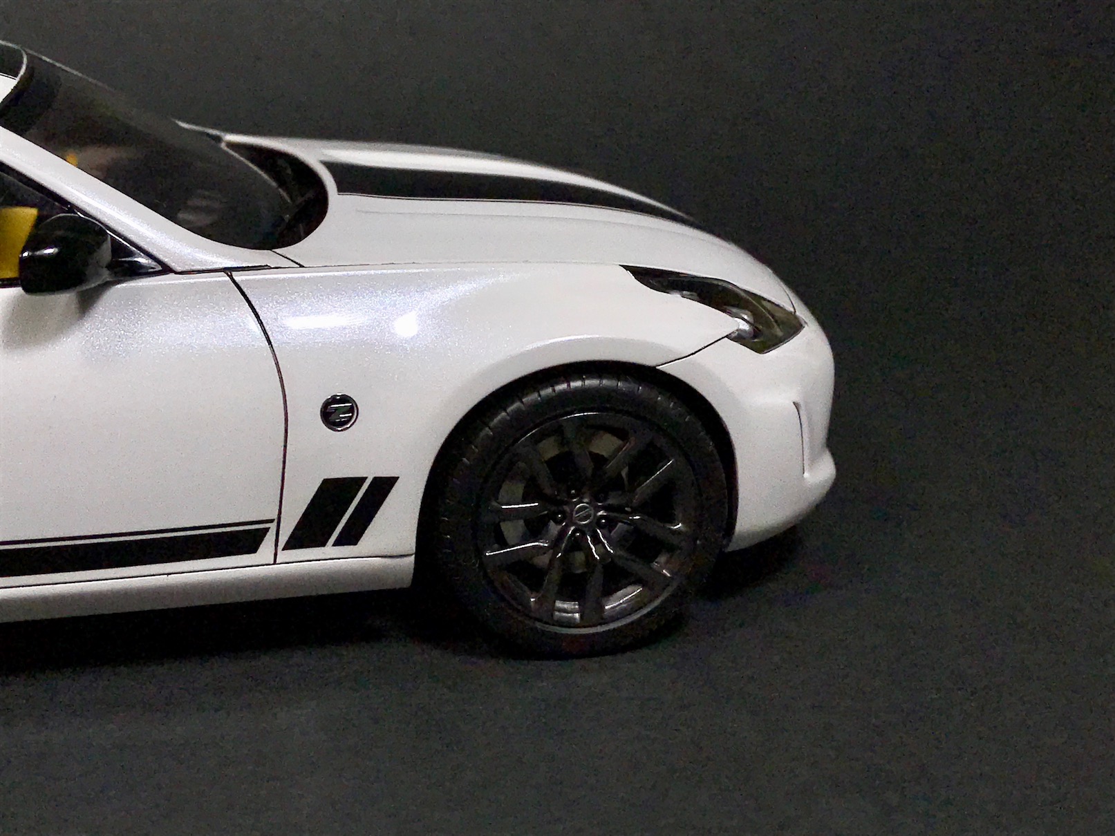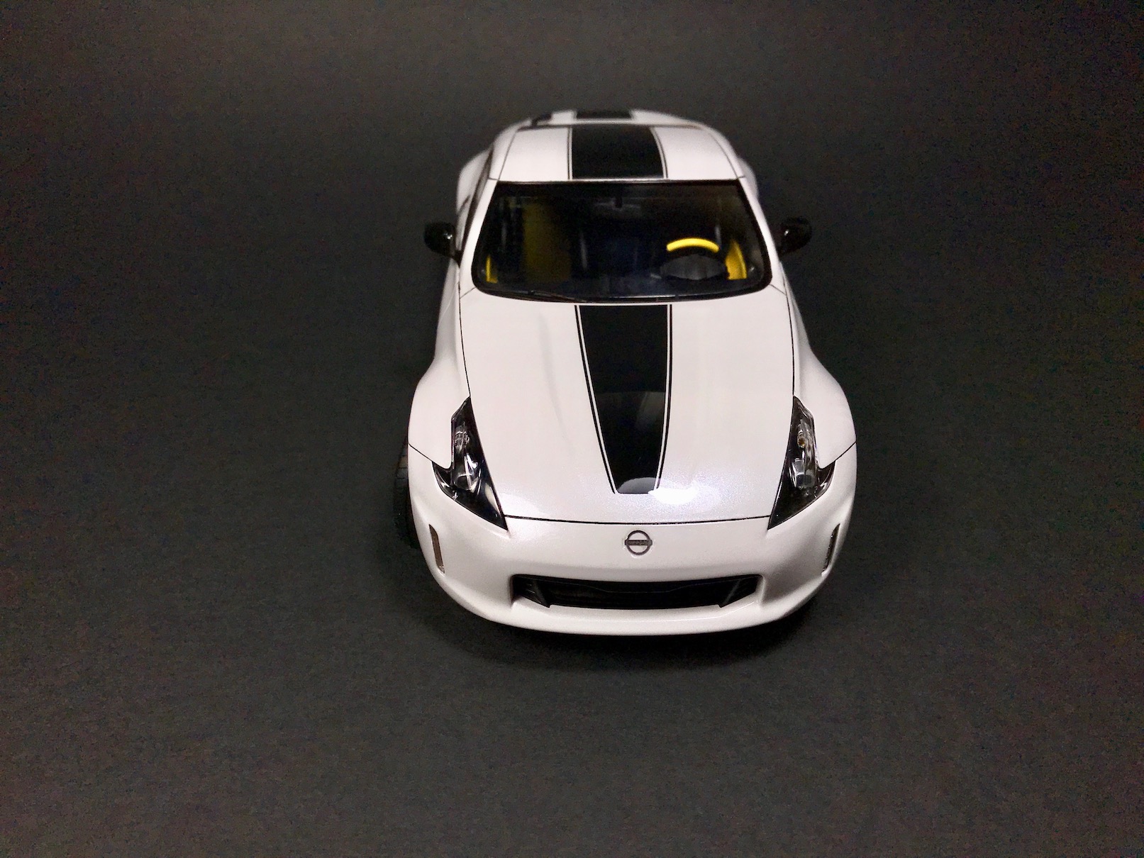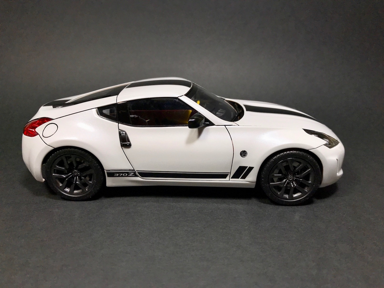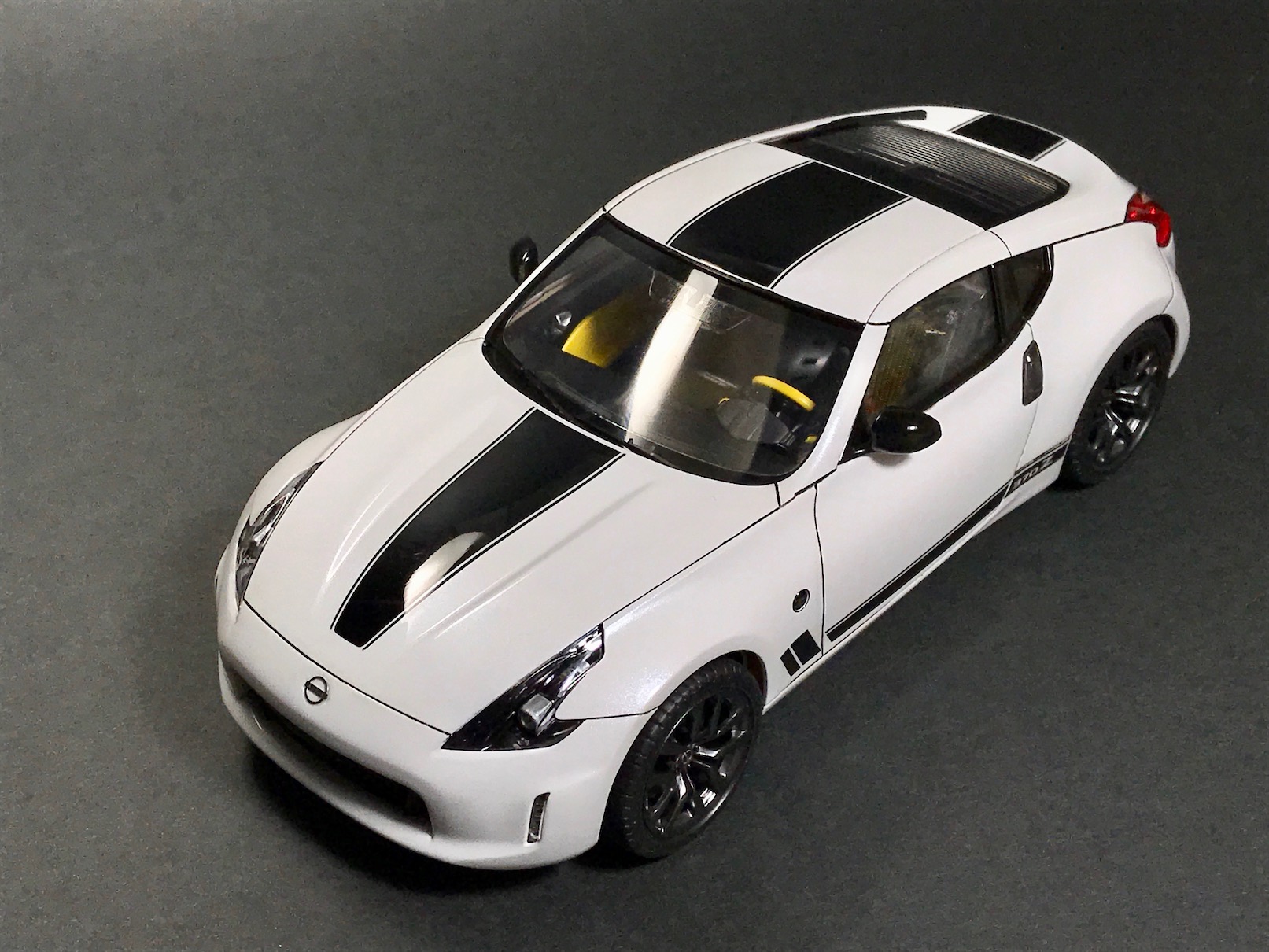 На этот раз ничего особо интересного - Nissan 370Z Heritage Edition от Тамии. Одна из последних Тамиевских моделей, по факту, отличающаяся от всем известной модели 370Z только некоторыми кузовными деталями и новыми декалями. В этом плане, кстати, Тамия расстроила - декали ужасные.