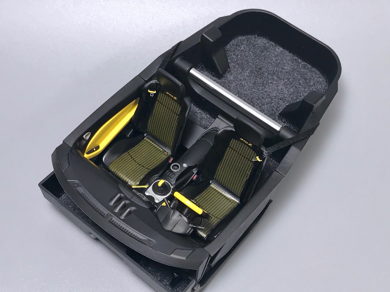 ), но потом решил немного поэкспериментировать со светом. В итоге, добавил свет в салон, чтобы лучше был виден интерьер и, главное - реализовал сенсорное включение/выключение, так что не нужно теперь ковырять пластик, чтобы вывести выключатель.