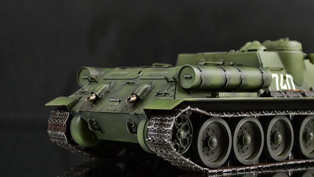 В целом понравилась работа!!! Излишний блеск, особенно патрубков выхлопа, немножко портит общее впечатление о модели. Ну и на мой вкус слишком чистый самоход))) Но это дело вкуса.