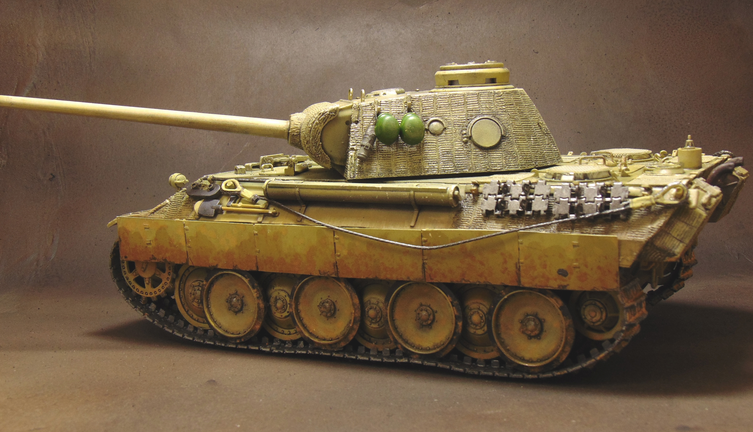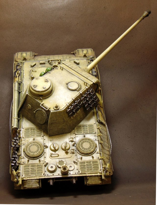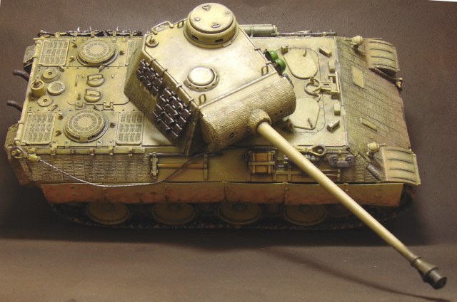 умелая окраска самой машины и грамотный циммерит. На мой взгляд, добавление травления (часто кривого для ВСЕХ наборов), нормальных катков и траков - вывело бы модель на качественно другой уровень. Бронировки перископов можно было скруглить.