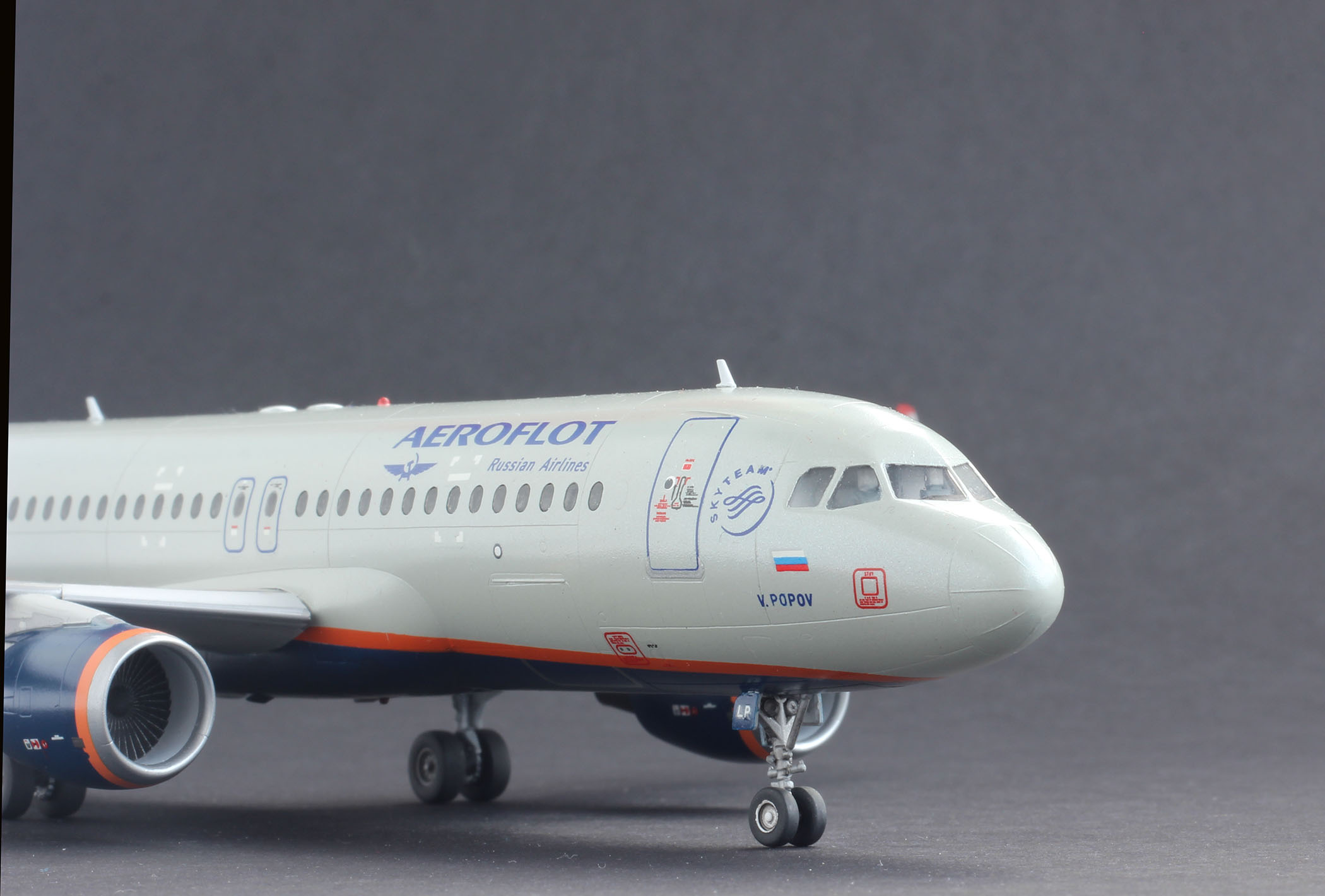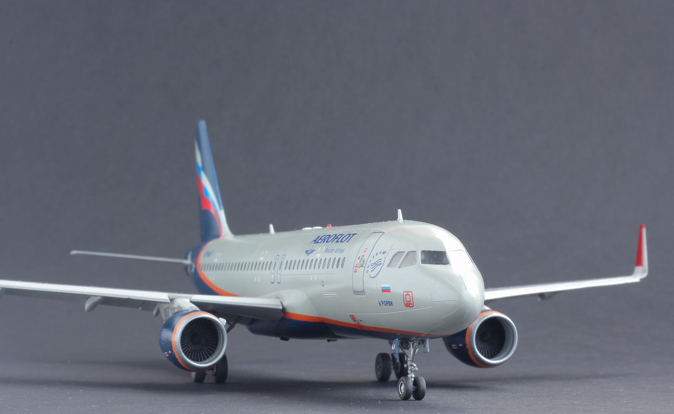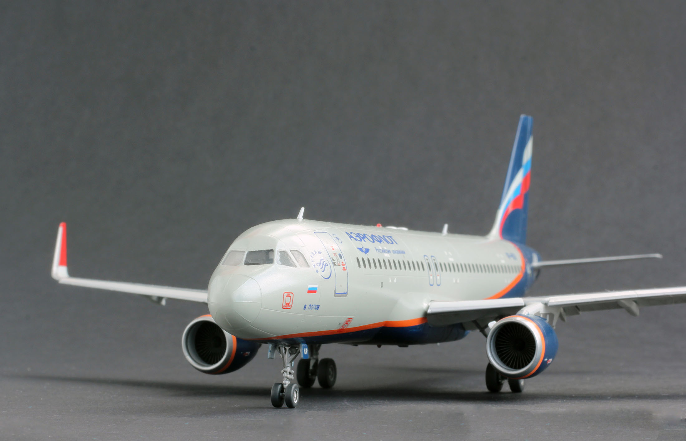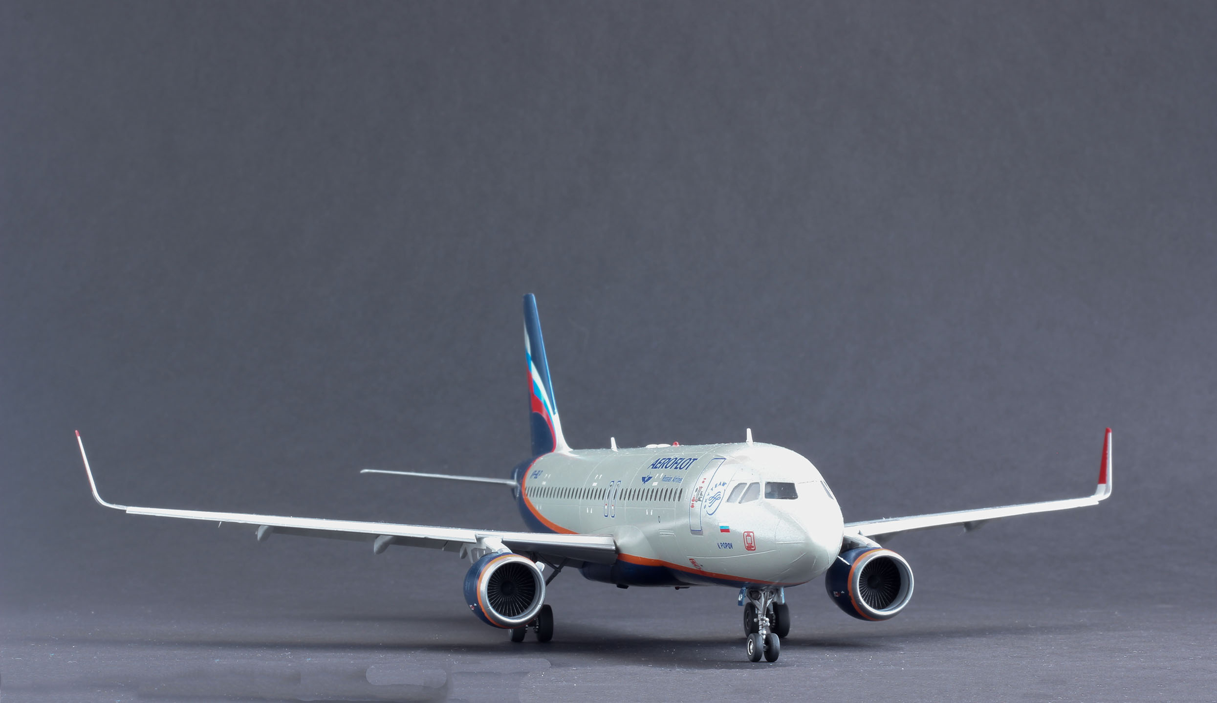 Приветствую. Собрал очередную модель, в принципе из коробки, добавил винглеты из другой коробки от 737. Основной цвет это С1+20%С324 сверху перламутровый лак С151 и на финише с46 всё от ганзы, Смыл эмалью на уайтспирите. Наконец купил темный фон. Буду рад вниманию к модели, заранее спасибо.