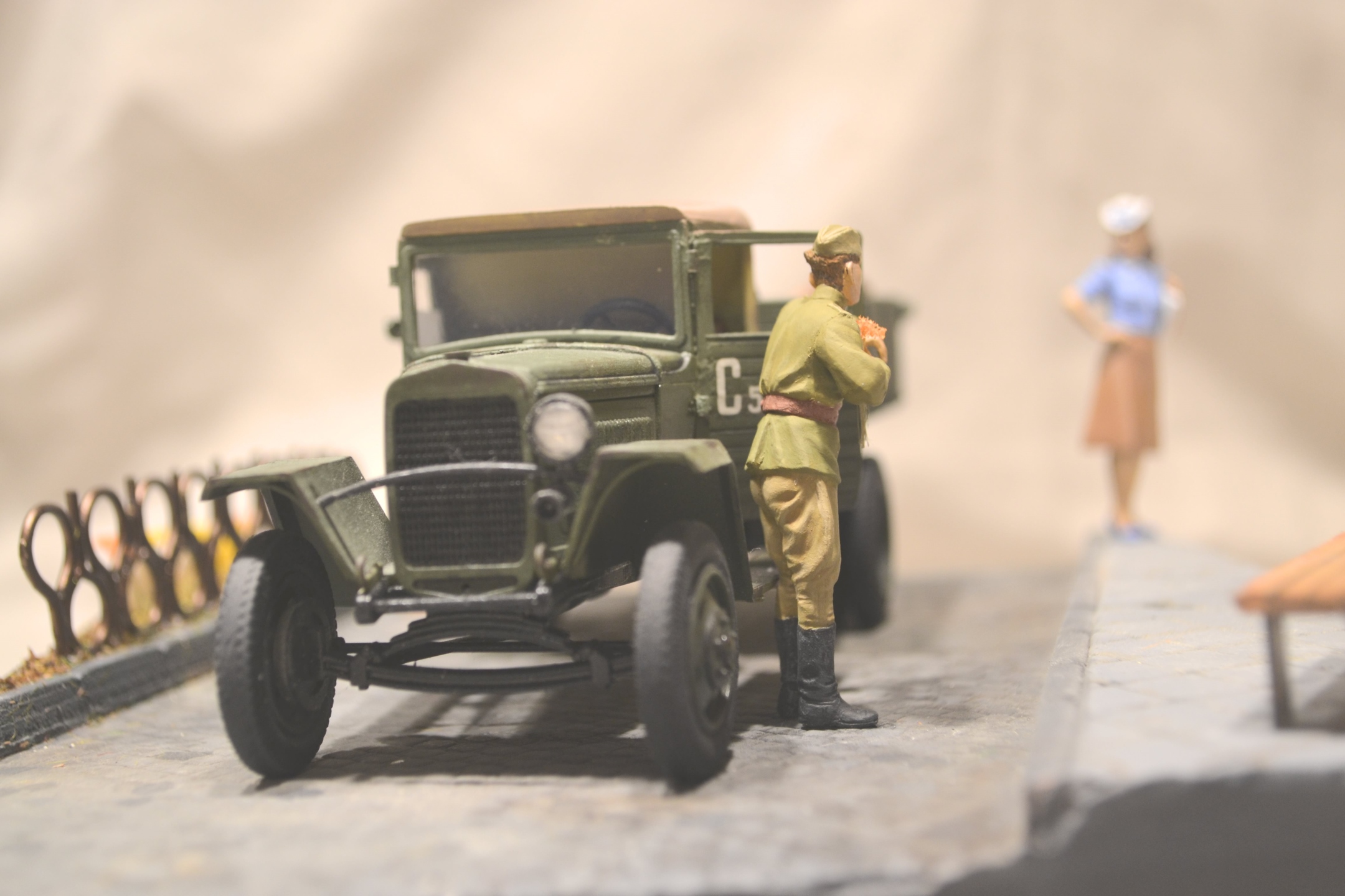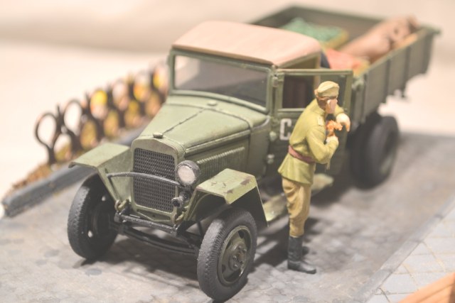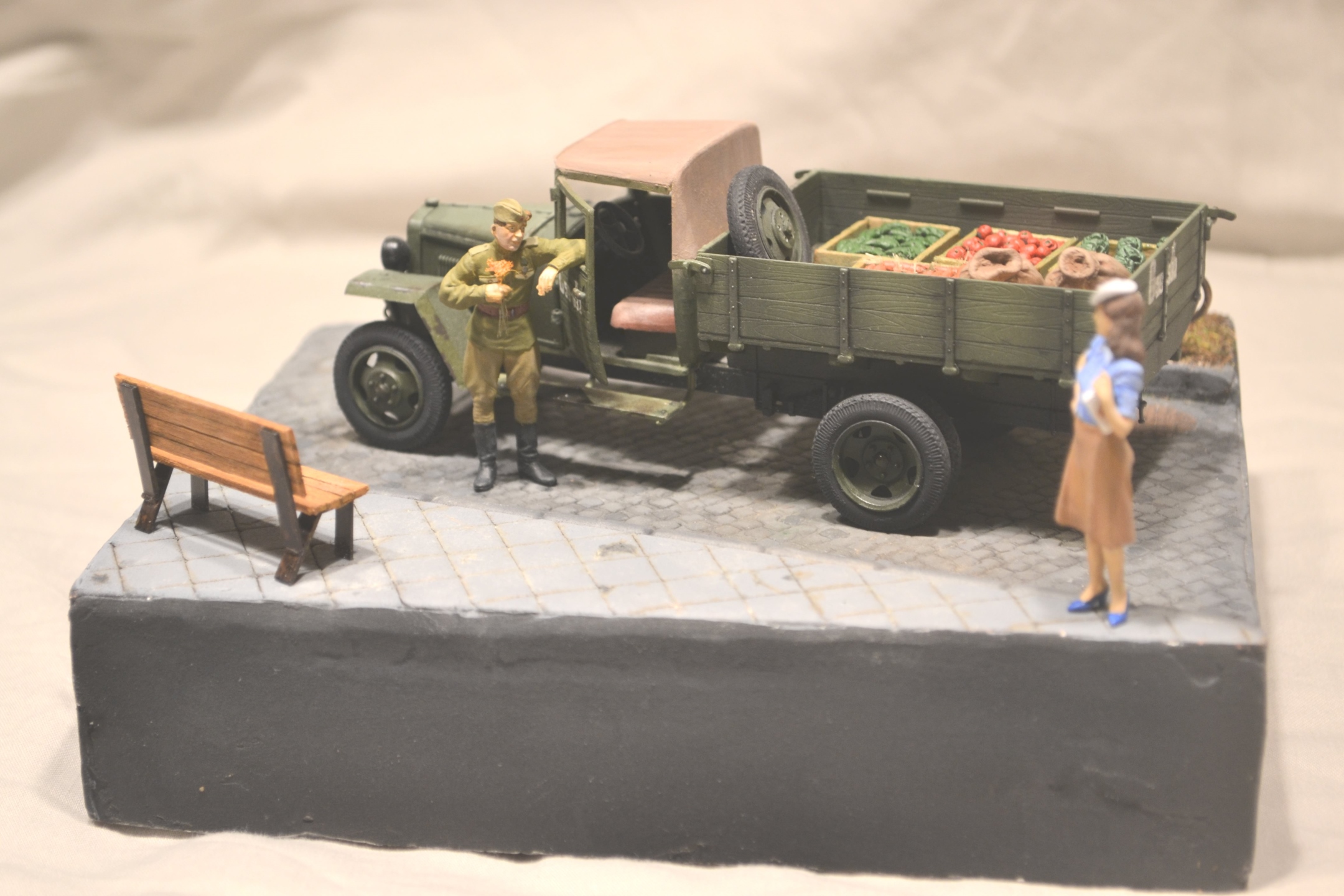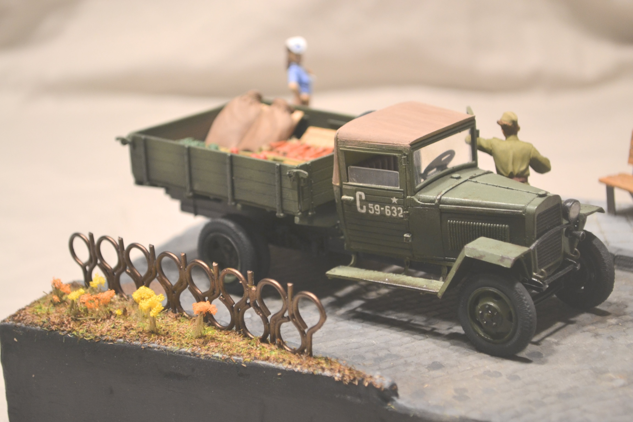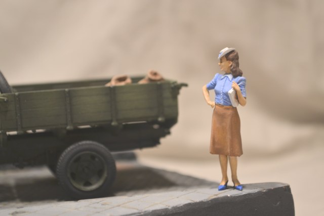 Хорошая диорама. Грузовик качественно окрашен, груз классно сделан (мешки нормально выглядят никакой не картон), девушка вообще отлично получилась.