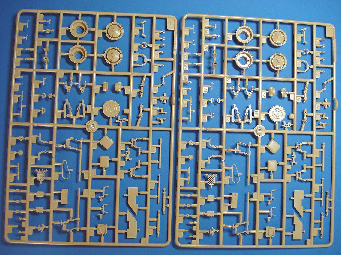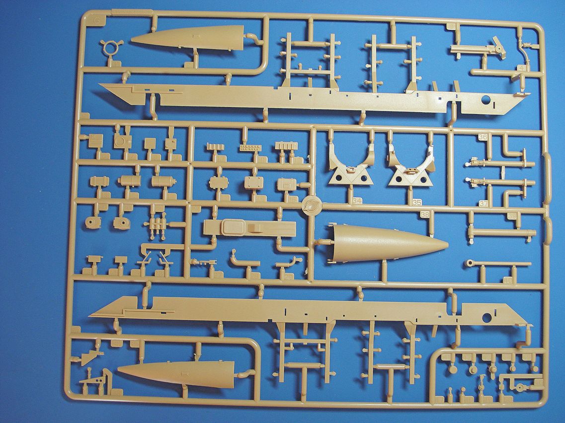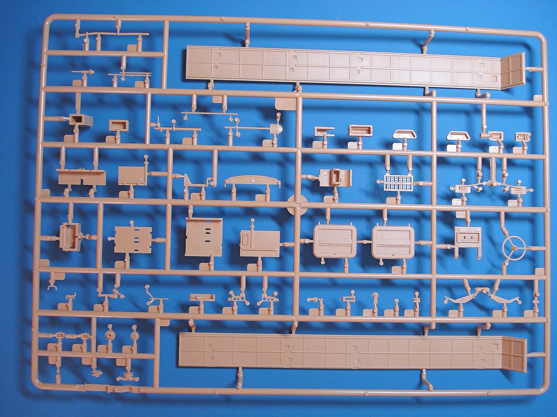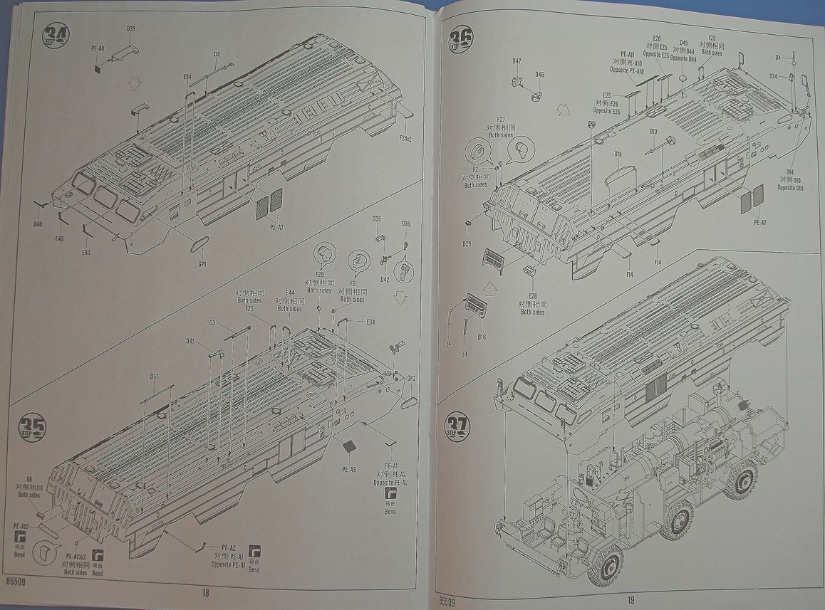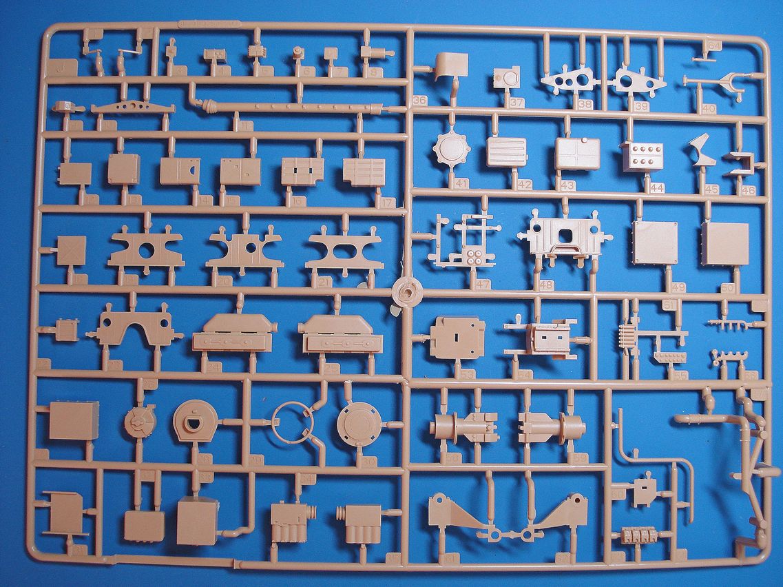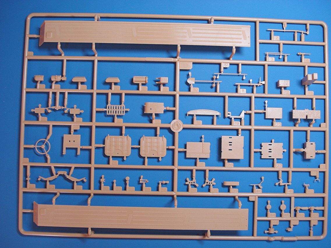 Модель 2018 года,большая коробка с верхним открыванием 10 литников с деталями(которых не мало),все отлито очень хорошо и качественно, производитель дает очень хорошую детализацию кабины,ракетного отсека,ходовой части,верх и низ корпуса даны отдельными деталями,один литник с прозрачными деталями и маски к ним,небольшой тросик,декаль для кабины с изображение приборов и органов правления,и основная декаль с техническими надписями гос номер и т.д,корпуса ракет выполнены готовыми деталями,плата фототравления,шесть отлично отлитых резиновых колес с неплохо проработанным протектором,стандартная черно-белая инструкция в виде,вкладыш с вариантами окраски ГДЕ в первые производитель добавил схему покраски интерьера.