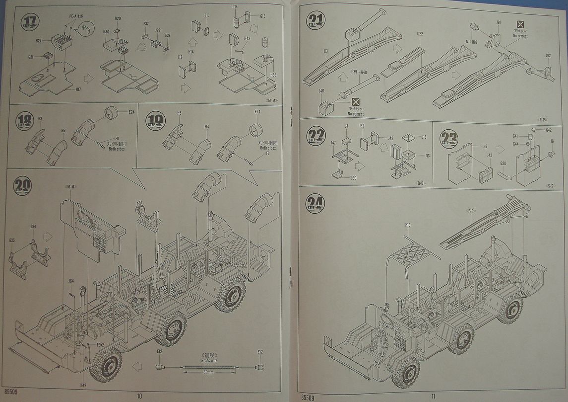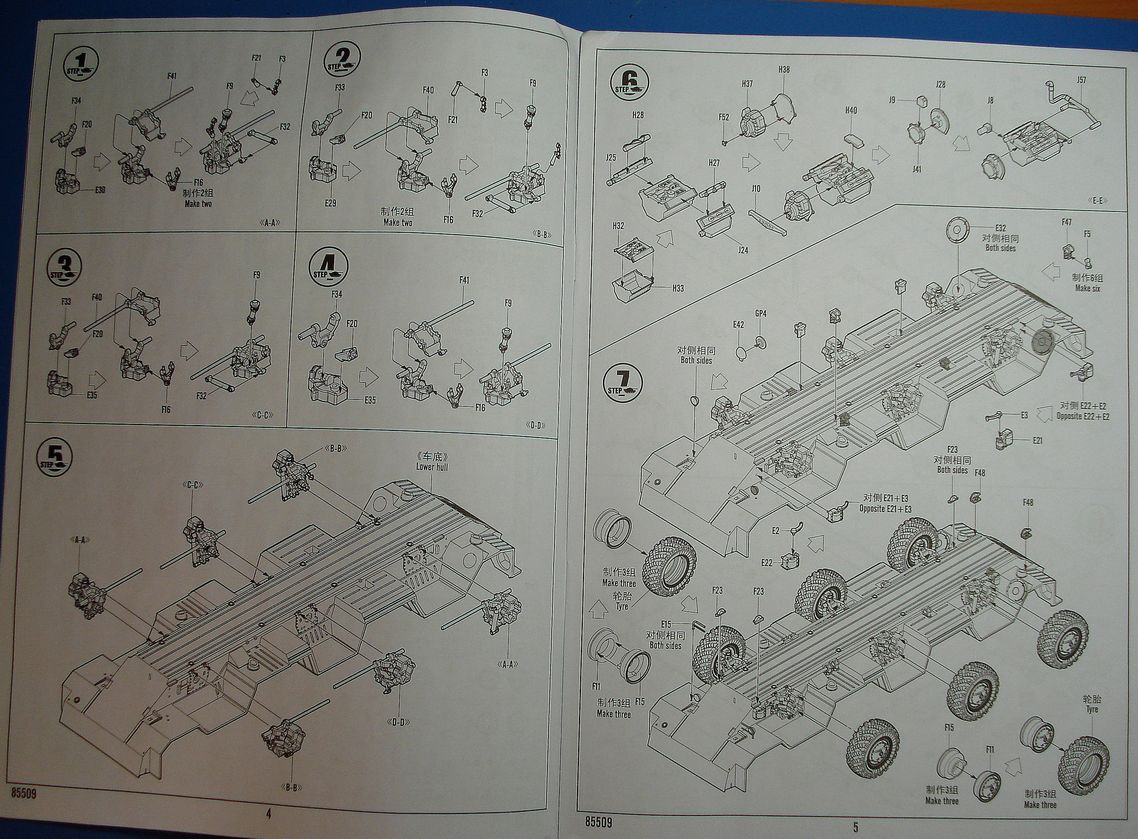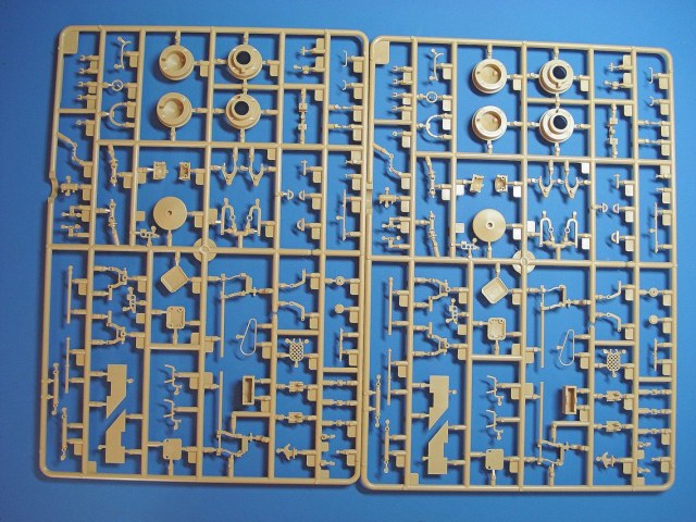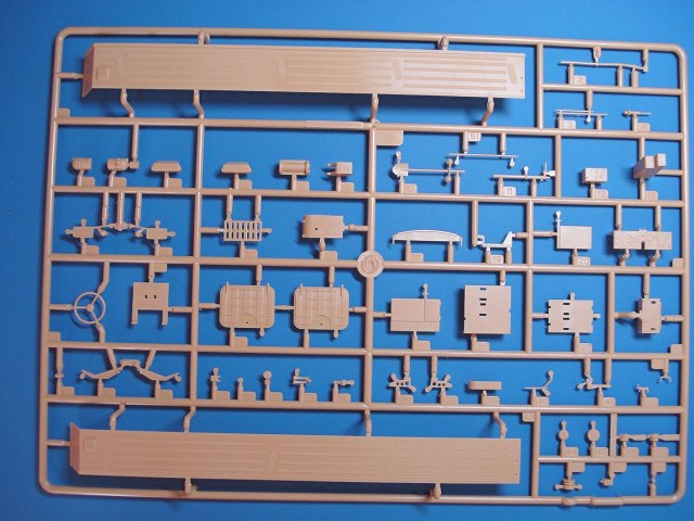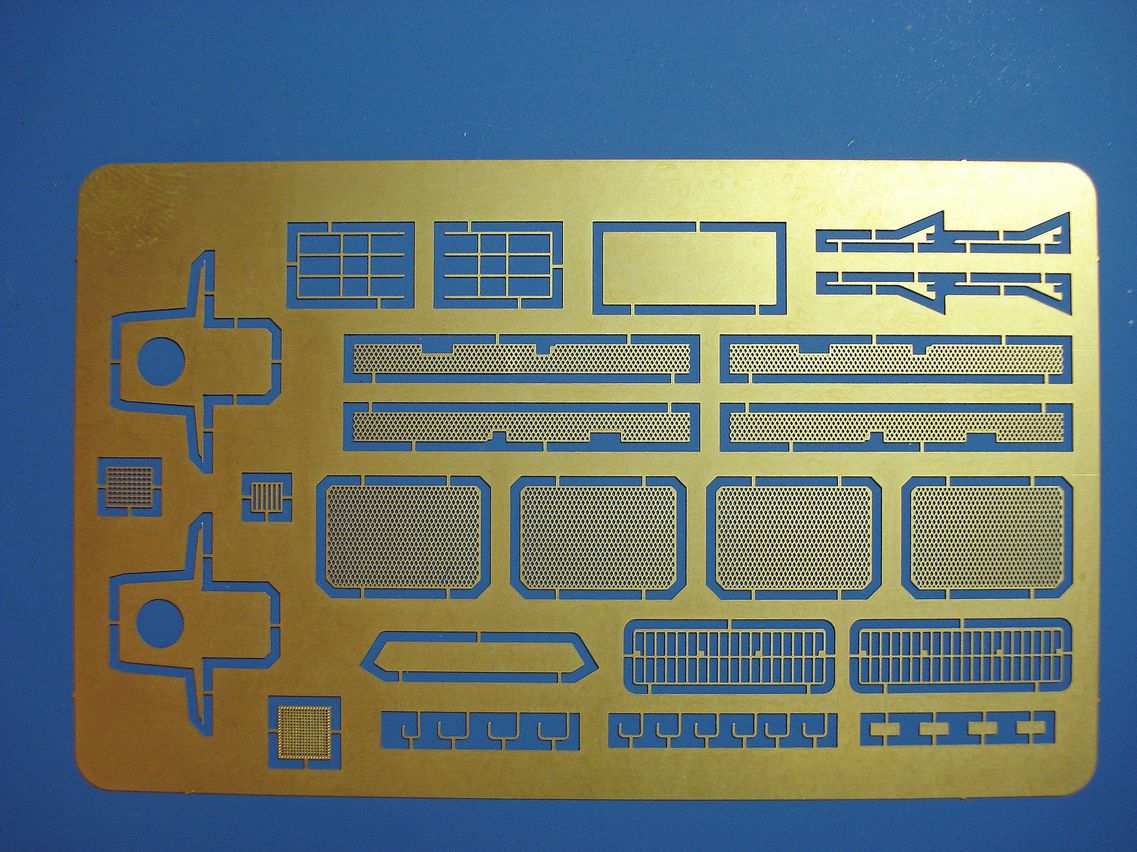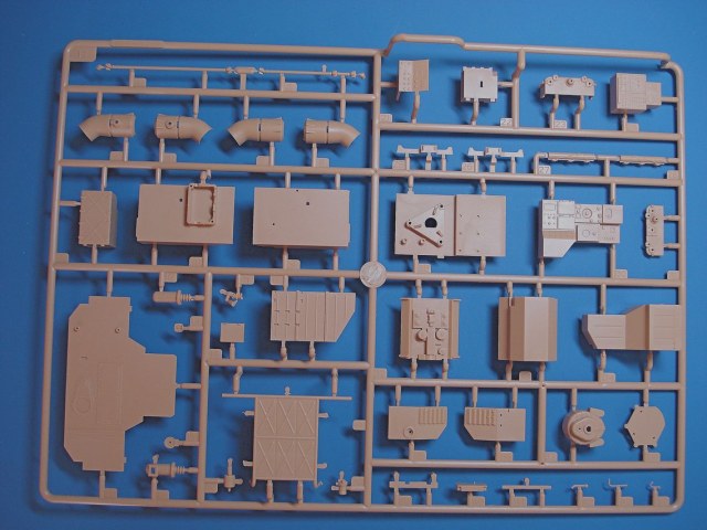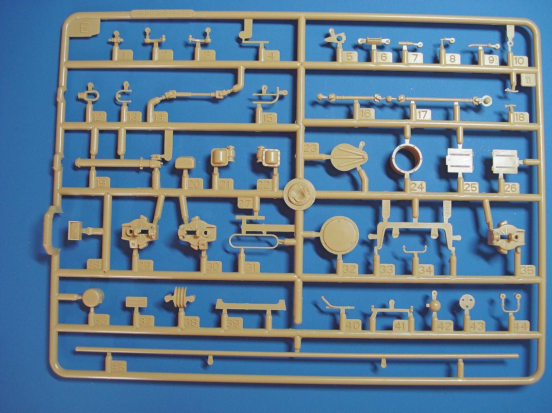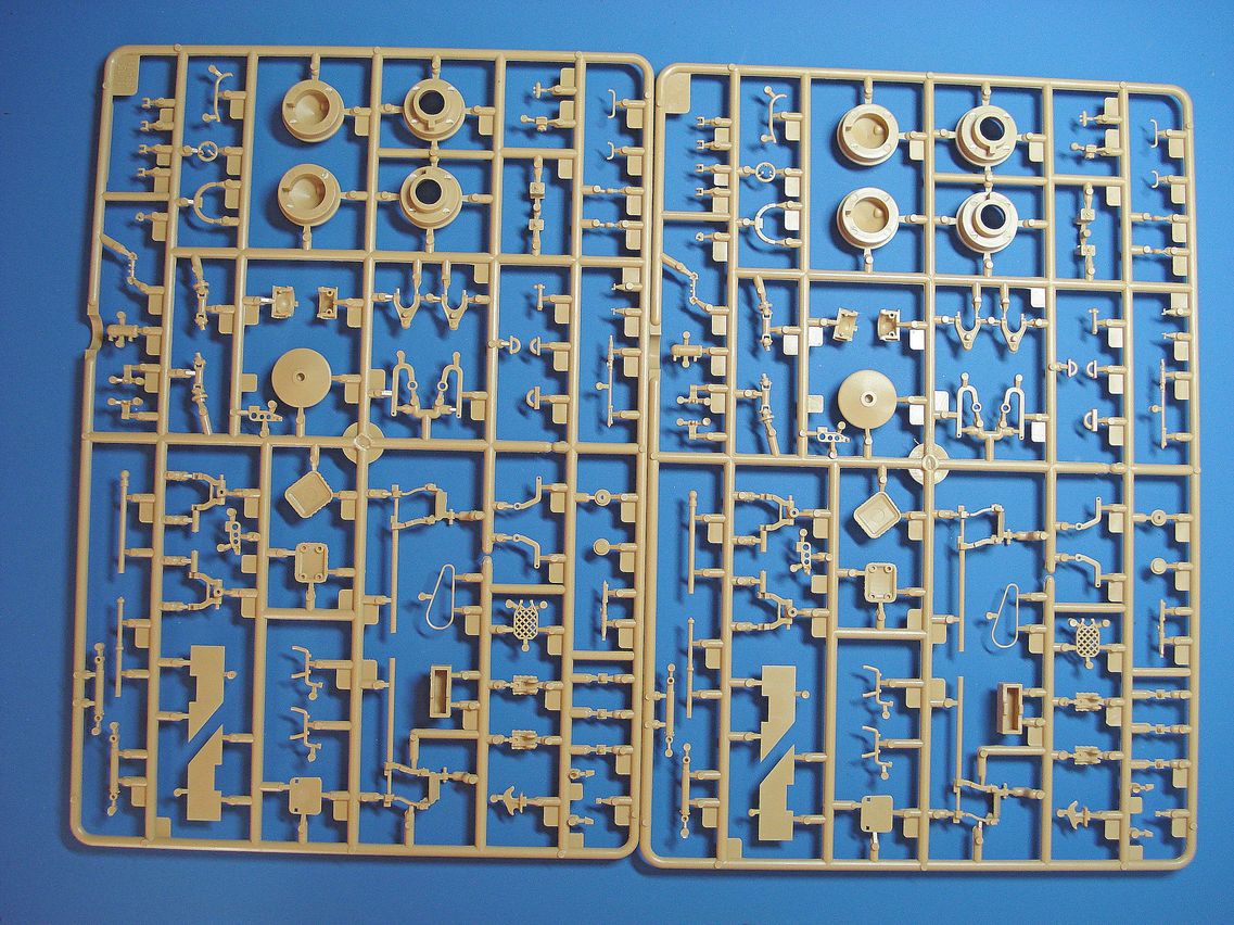 Модель 2018 года,большая коробка с верхним открыванием 10 литников с деталями(которых не мало),все отлито очень хорошо и качественно, производитель дает очень хорошую детализацию кабины,ракетного отсека,ходовой части,верх и низ корпуса даны отдельными деталями,один литник с прозрачными деталями и маски к ним,небольшой тросик,декаль для кабины с изображение приборов и органов правления,и основная декаль с техническими надписями гос номер и т.д,корпуса ракет выполнены готовыми деталями,плата фототравления,шесть отлично отлитых резиновых колес с неплохо проработанным протектором,стандартная черно-белая инструкция в виде,вкладыш с вариантами окраски ГДЕ в первые производитель добавил схему покраски интерьера.
