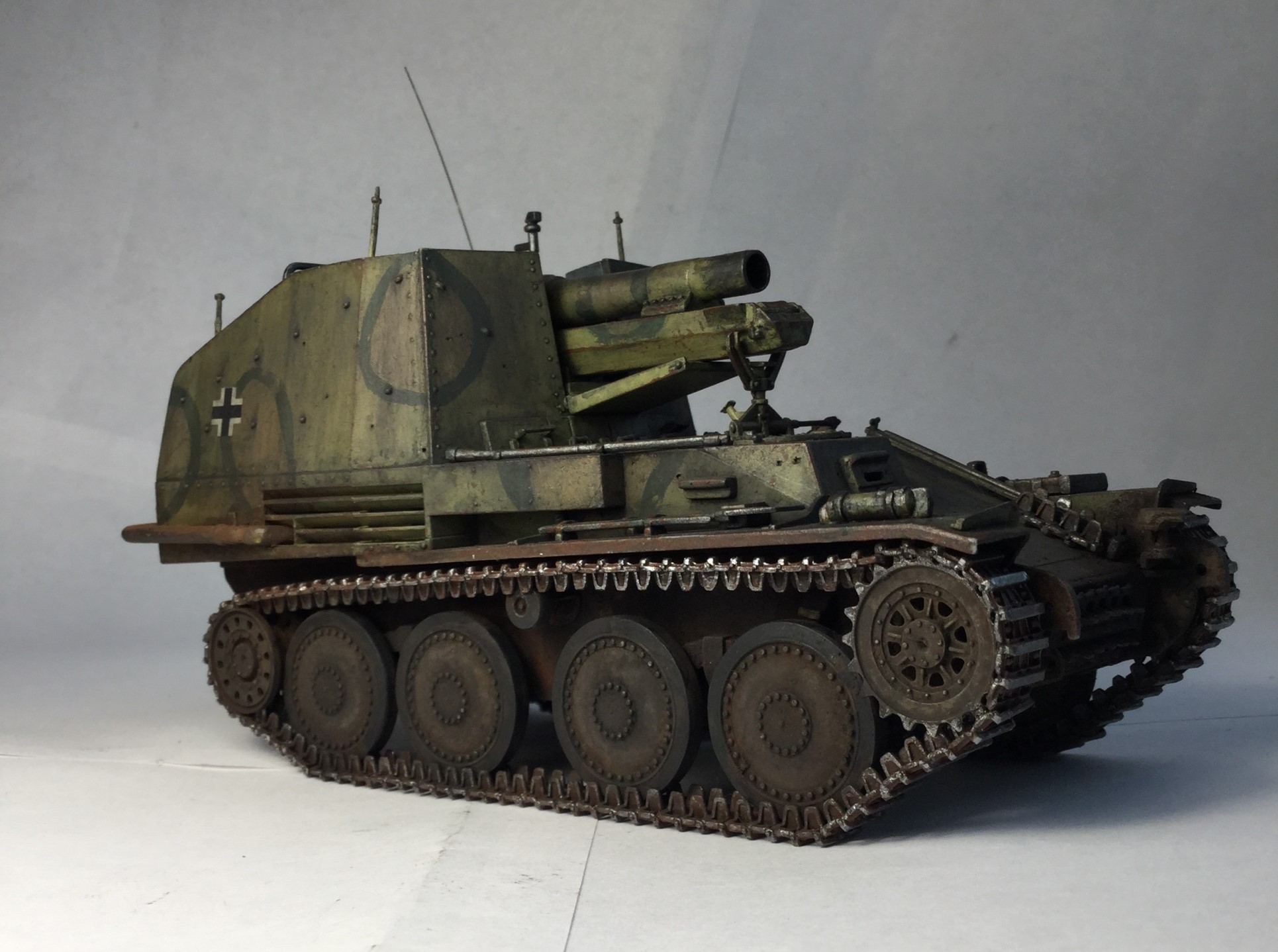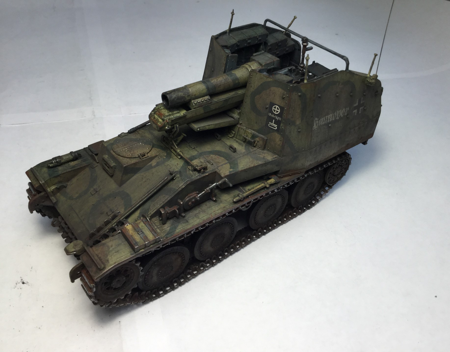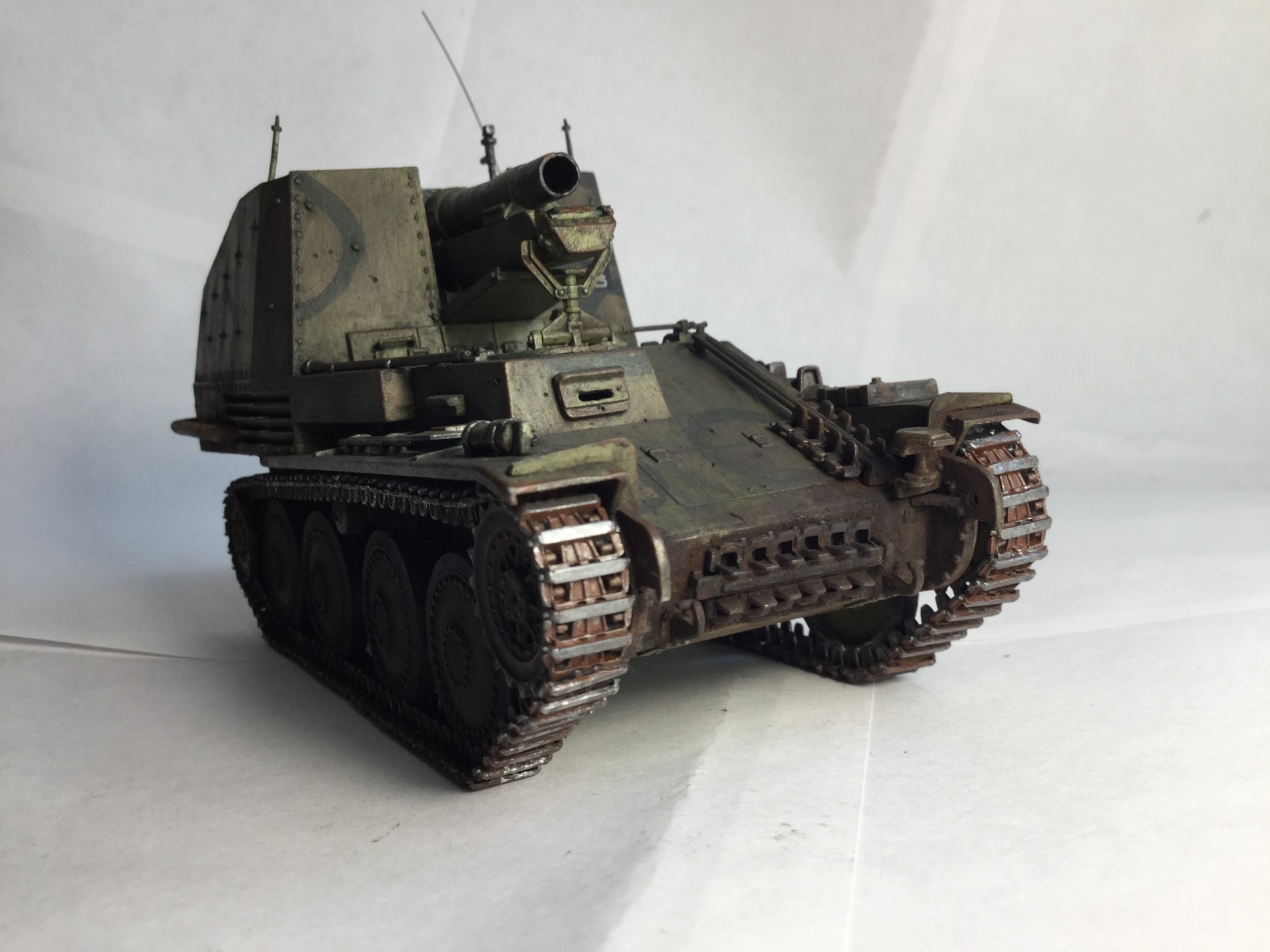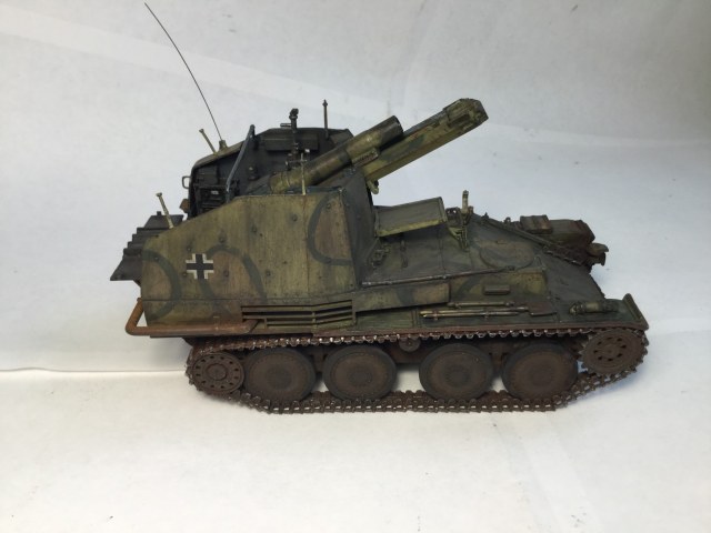Всем доброго дня. Представляю модель САУ «Грилле». Сама модель по качеству так себе, но в принципе она лучше моделей, которые я раньше собирал от Арка. Пришлось много шпаклевать. Делал из коробки, только добавил антенну и некоторые снаряды из другого набора.