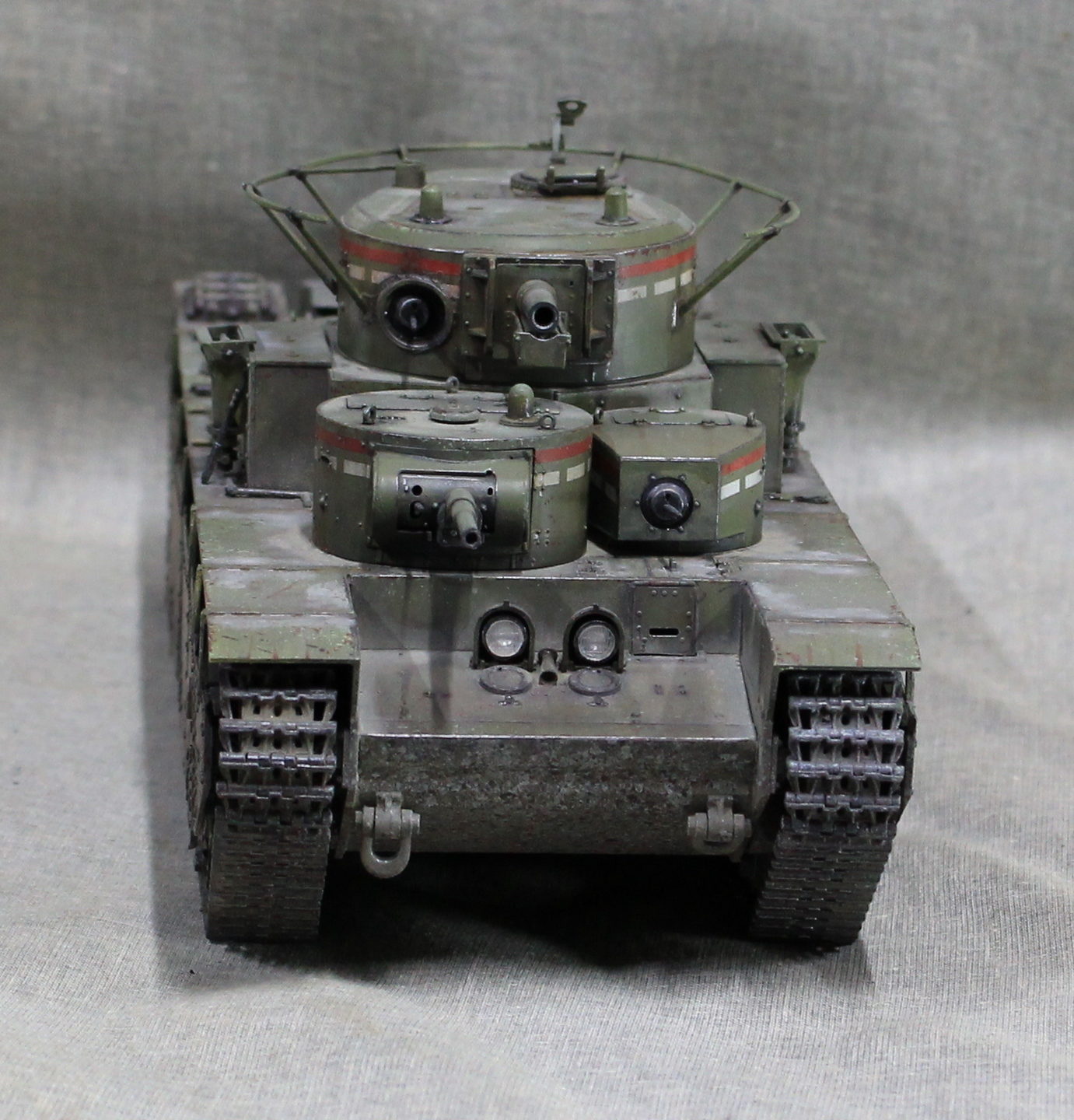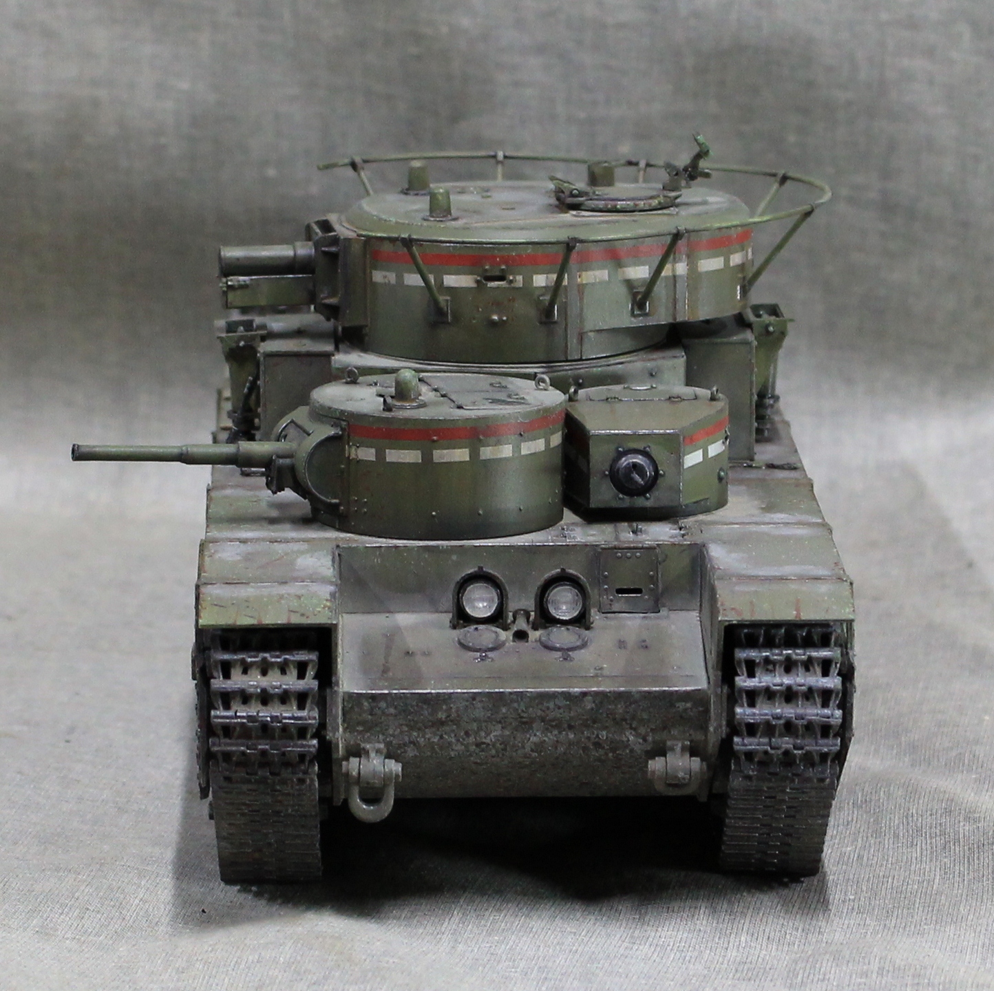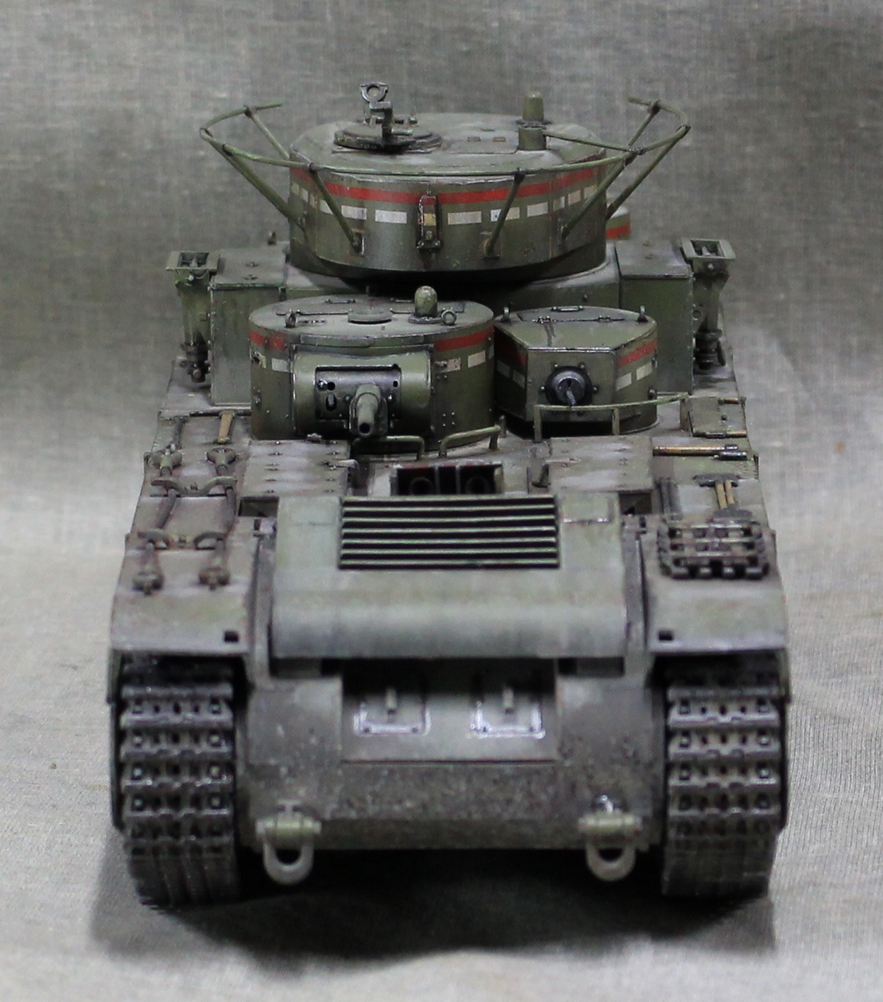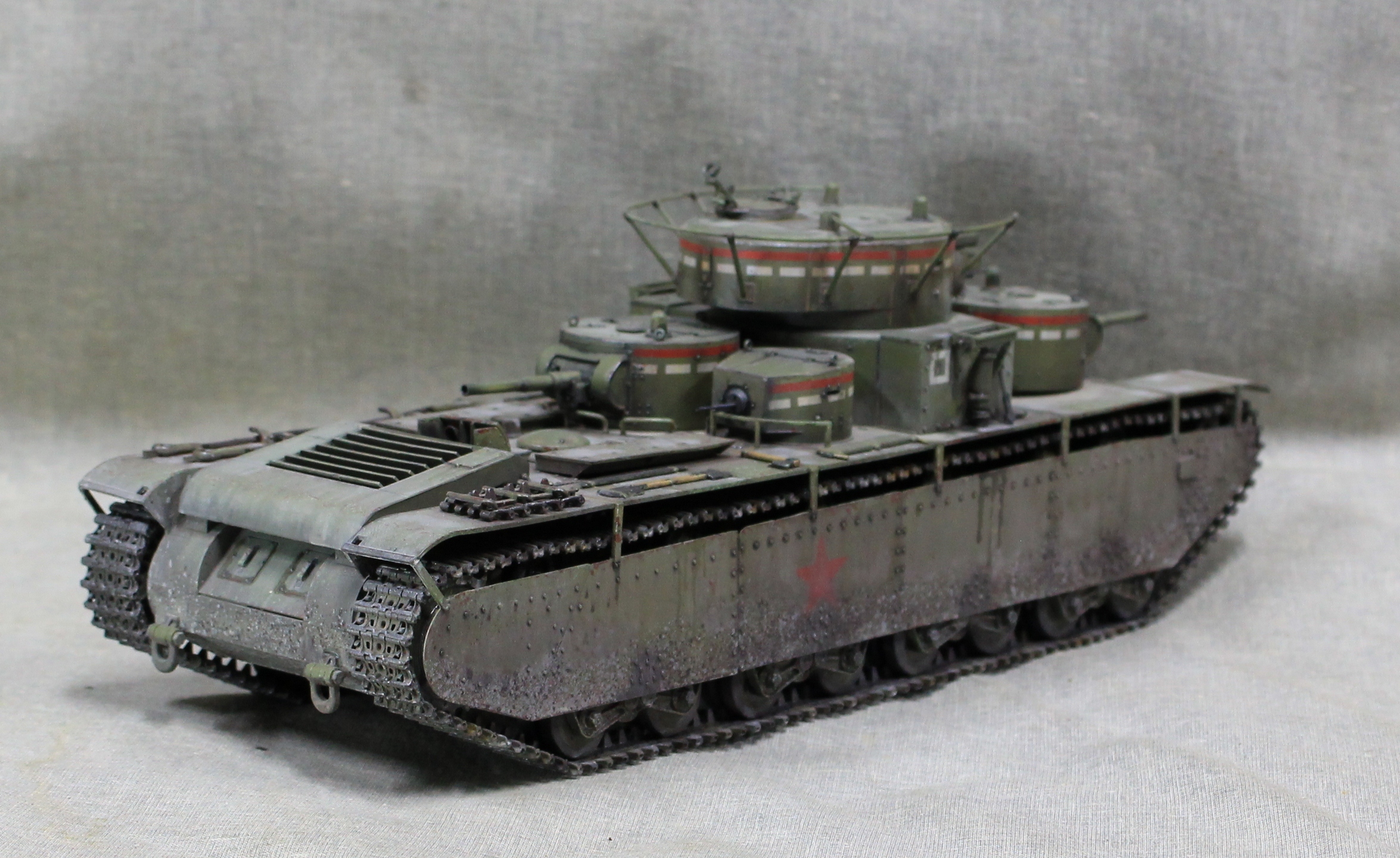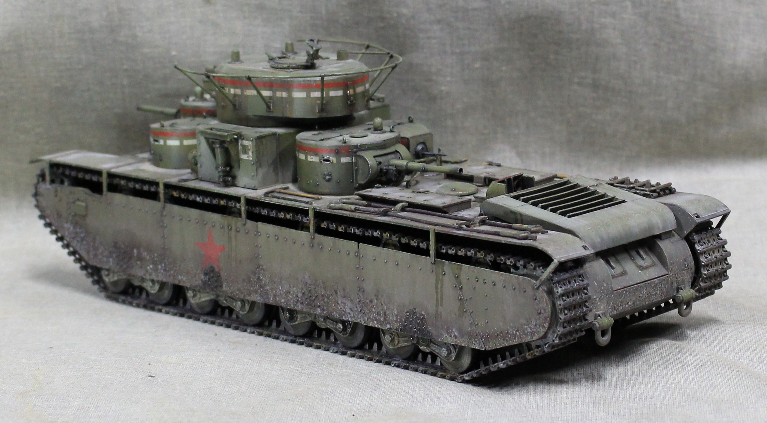 Собиралась модель вобщем нормально, немного не стыковался верх и низ корпуса, думаю, это я накосячил, на 1.5 мм уехало все, верх корпуса был загнут дугой, скорее всего это отразилось на длинне этой детали. Плохо вставала турель пулемета в башню, образовывалась щель, закрыл сварным швом. Вообще модель нормальная, больше всего матерился собирая башни, площадь контакта половинок башен настолько маленькие, что я чуть не разбил танк об стол, в порыве праведного гнева.
