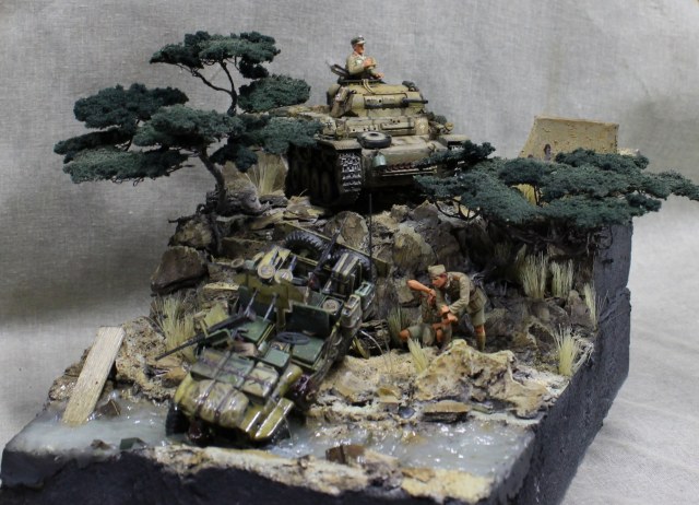 Вот сделал небольшую диарамку под свою крайний танк, от Тамии.