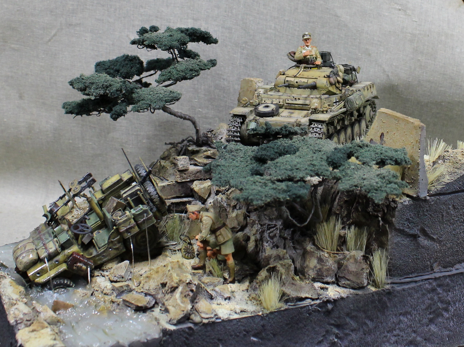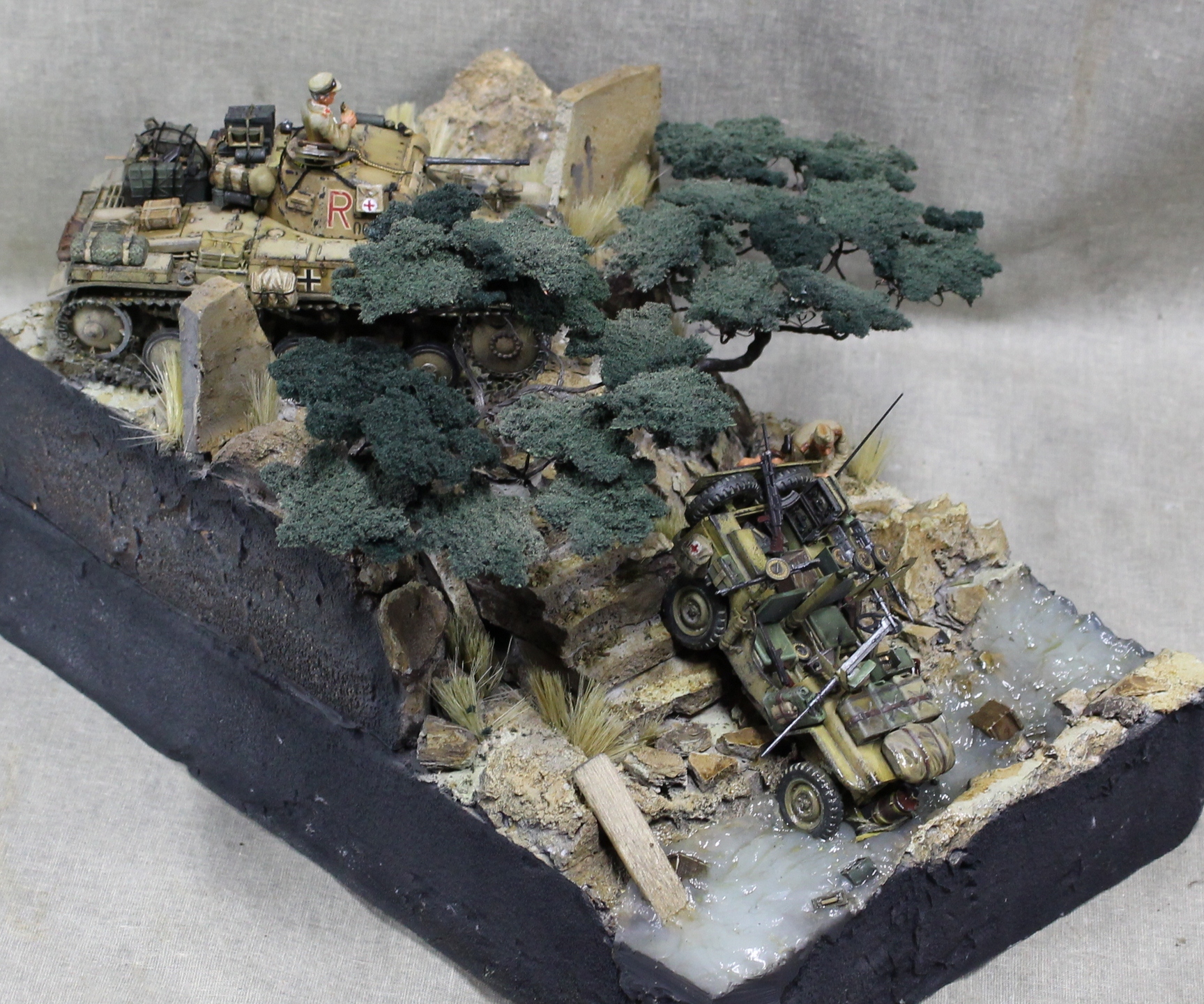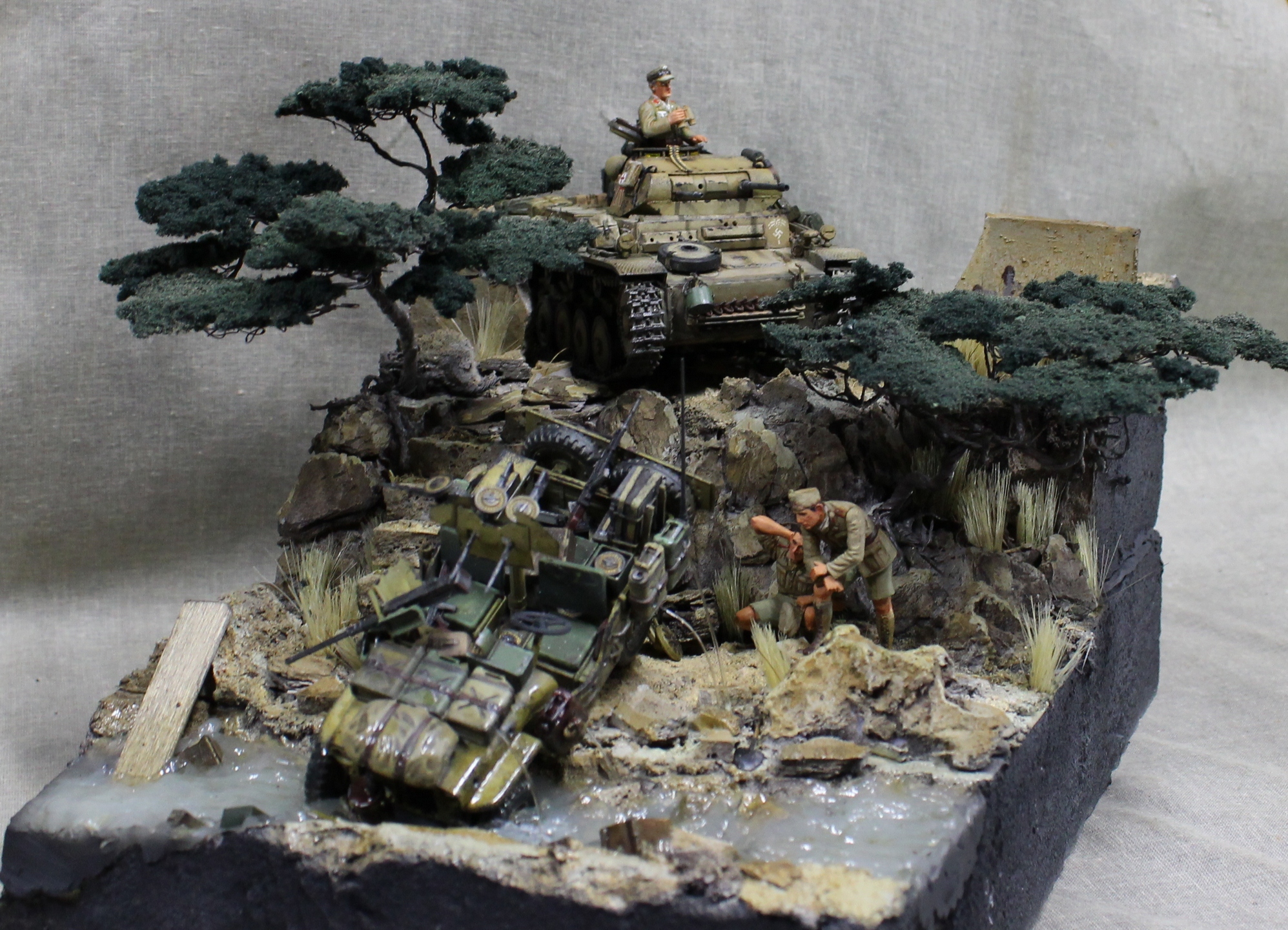 В целом впечатление от работы позитивное. Но название "не в дугу". Учитывая ситуацию со снабжением в Африканском корпусе на протяжении всего его существования, только вода(в ручье) осталась бы на месте этого инцидента, а всё остальное гансы прибрали бы к рукам в считанные минуты. Такое богатство ни один командир в здравом уме не бросит!