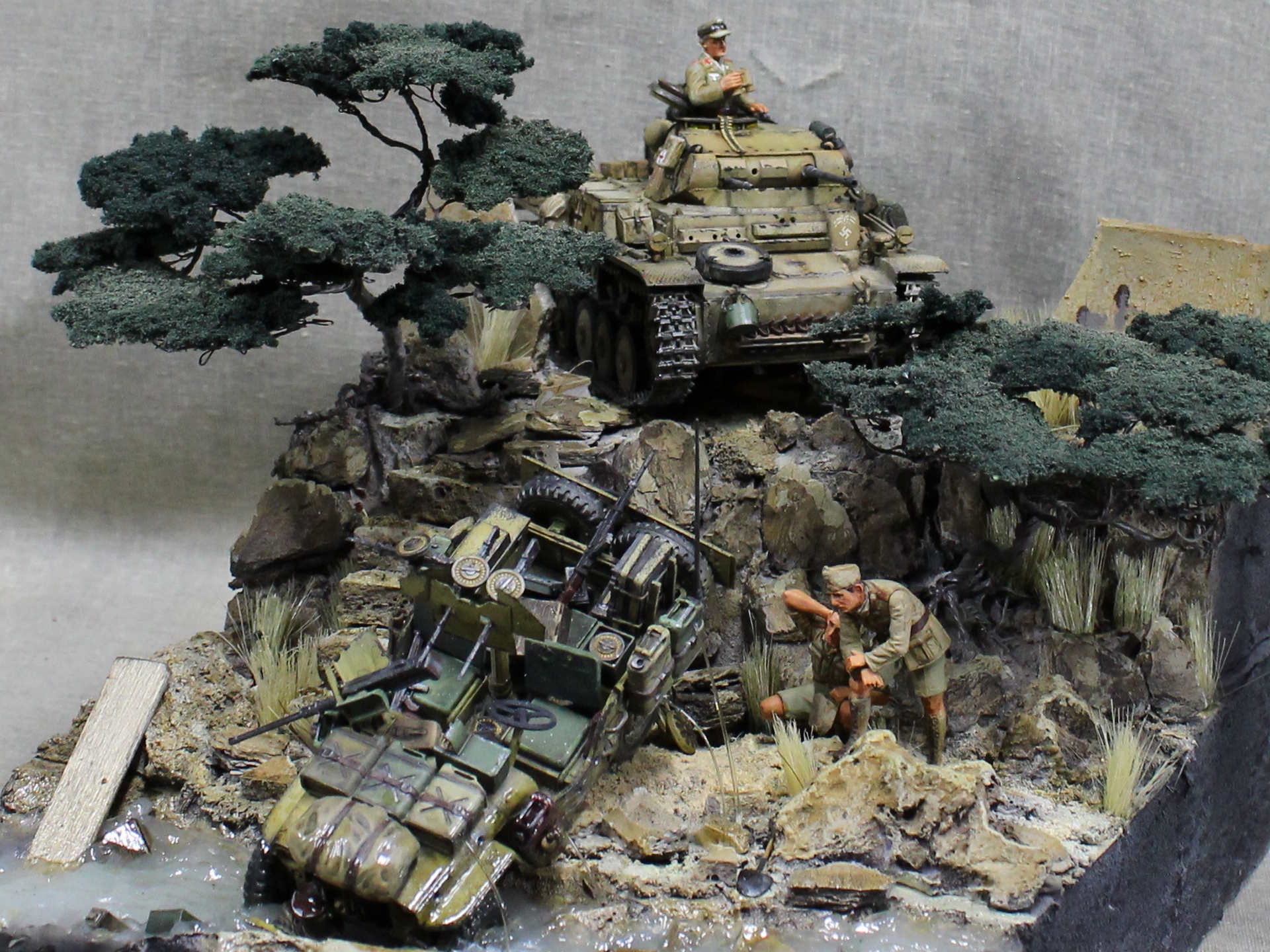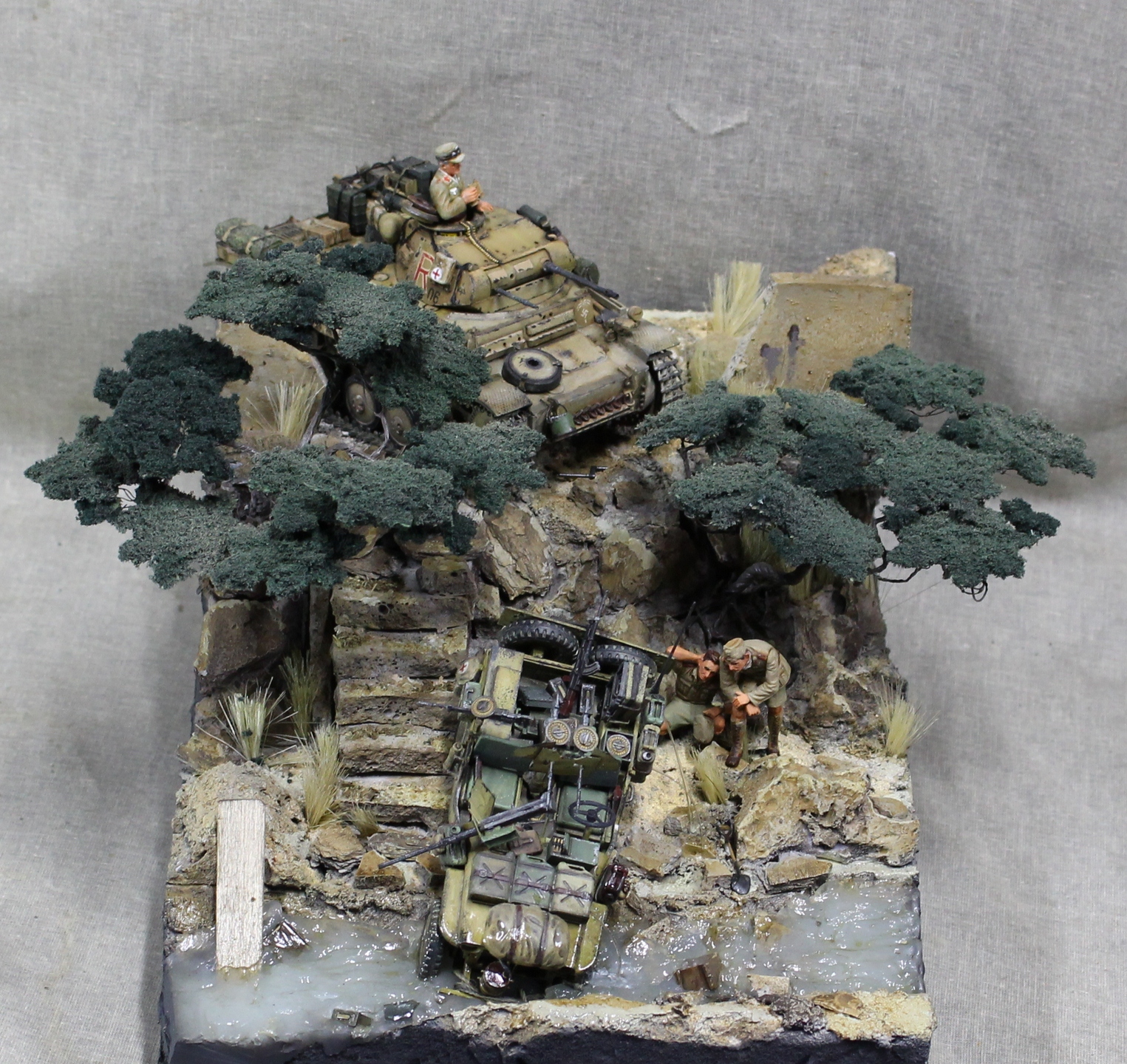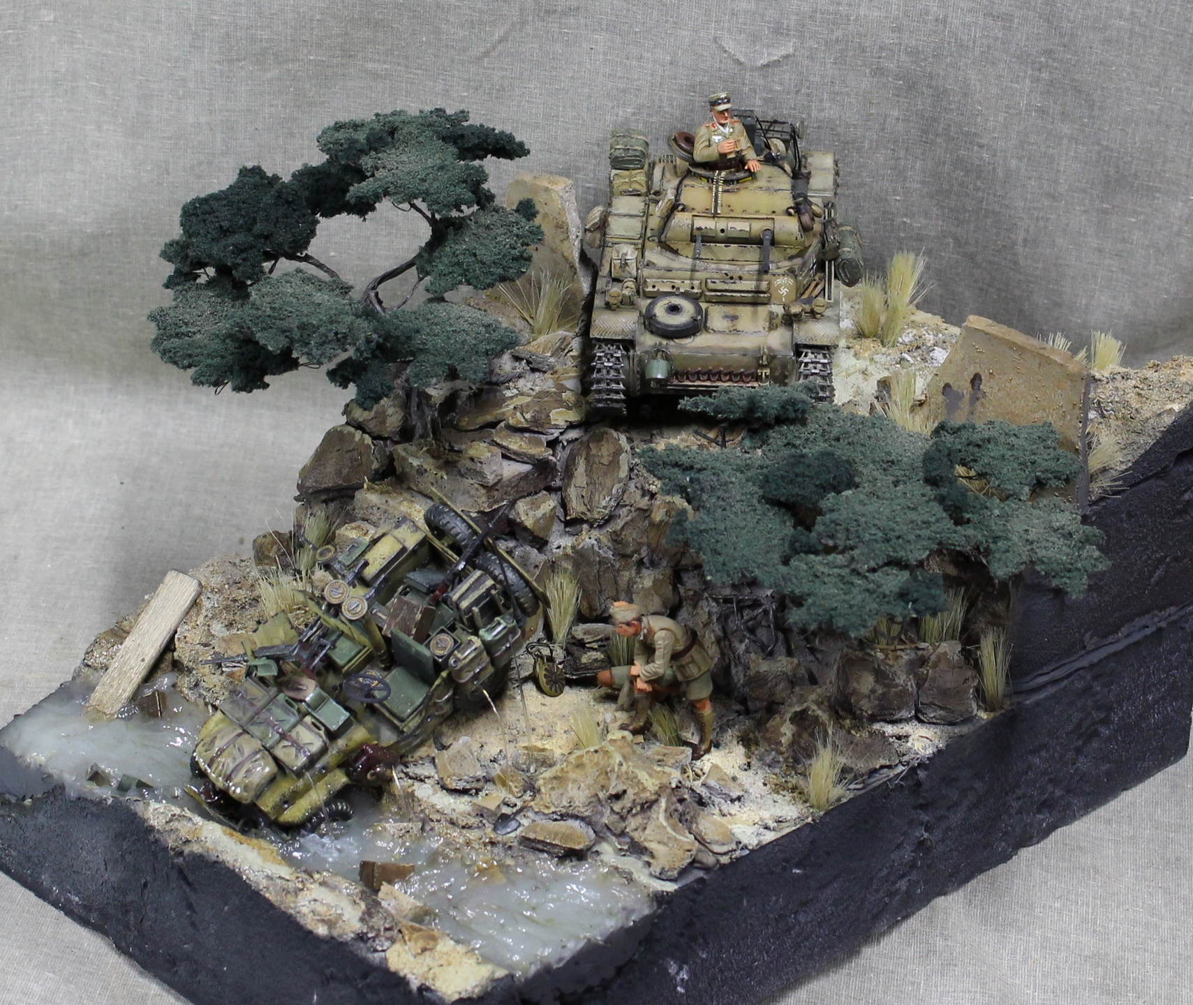 В целом впечатление от работы позитивное. Но название "не в дугу". Учитывая ситуацию со снабжением в Африканском корпусе на протяжении всего его существования, только вода(в ручье) осталась бы на месте этого инцидента, а всё остальное гансы прибрали бы к рукам в считанные минуты. Такое богатство ни один командир в здравом уме не бросит!