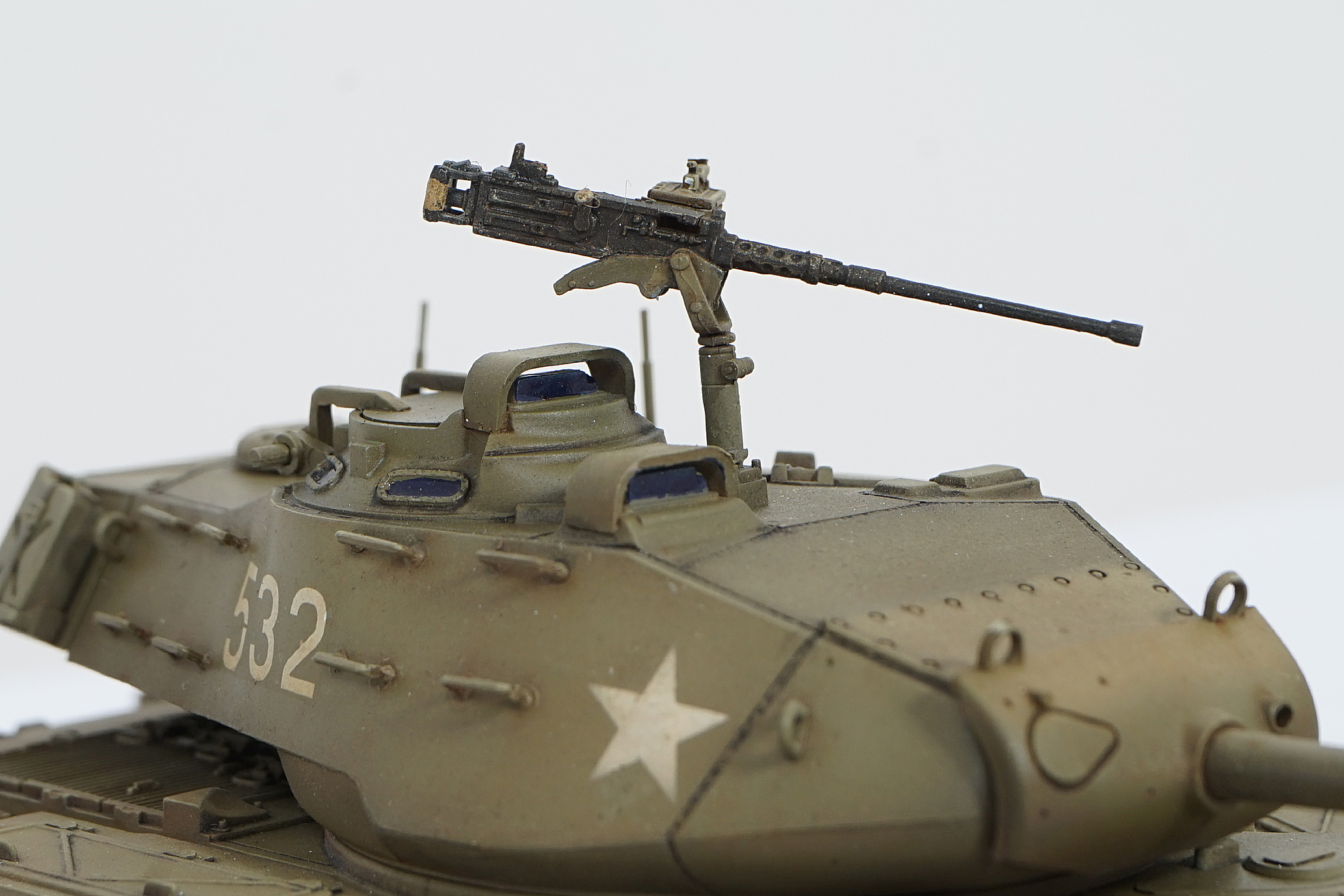 Понравился цвет базы, везеринг. Конечно, сделать из этой модели действительно похожее на Уокер без фототравления (родное от Эдика с выштамповками на боках ящиков уже и не выпускается), без допов, без замены шанцевого инструмента, фар, пулемета, канистр, поручней, гусеницы и пр. возможно ли? Здесь о мат части не хочу говорить, но повторюсь, цвет базы в точку. Несколько залиты пулемет и фары краской, а триплекс на ком. башенке, наоборот, весь не прокрашен. Пулемет от Академии так же требует допов (ну, хотя бы, самых дешевых и весьма хороших от RB - перфорированный кожух ствола, сам ствол, ручки пулемета, у Академии последние переразмерены), иначе смотрится он не масштабно. Хорошо было бы заменить на проволочные ручки люков, поставить защиту перископа на башню, над кувалдой установить зап. ствол пулемета, подточить толстые ограждения фар.