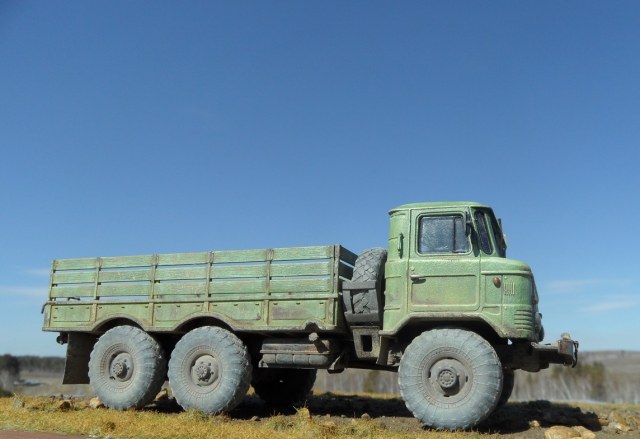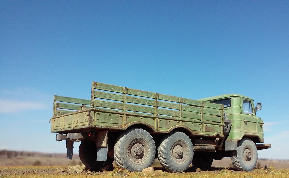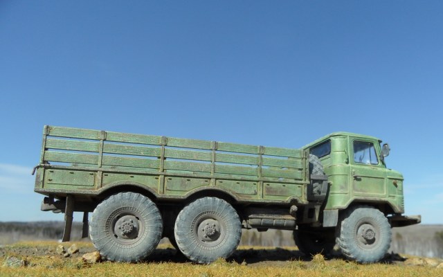 Еще одна интереснейшая новинка от AVD Models Газ 34. Разработка 34-й модели началась в марте 1964 года, когда на заводе уже началась серийная сборка семейства ГАЗ-66.От ГАЗ-66 грузовик ГАЗ-34 унаследовал бензиновый двигатель V8 мощностью 115 л.с., ведущие мосты с односкатными колесами, тормозную систему с барабанными колесными механизмами, цельнометаллическую кабину, переднюю лебедку и два топливных бака общей вместимостью 210 л. Модель имеет металлическую кабину и раму, да рама тут металл в отличие от Газ 66. Детализация на уровнеГаз 66- отличная. Модель имеет откидывающуюся кабину, хорошо передан двигатель. Сборка как обычно у AVD Models на твердую 5, все стыкуется идеально, никакого облоя и понятная инструкция. Окрашена Мотип, тонирована пигментами. Приятного просмотра!