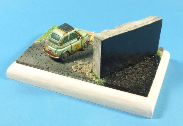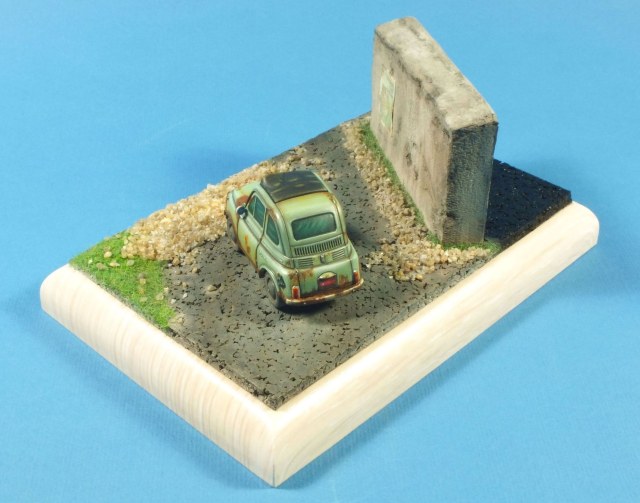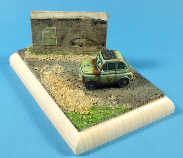 Подставка выполнена из пробковой подложки для ламината, пенополистирола, аквариумного грунта и синтетической травы разных оттенков от компании ZipMaket. Её размер 10х15 см. Игрушка от Звезды собирается на щелчок, но остаются довольно крупные щели, которые требуют обязательного шпаклевания.