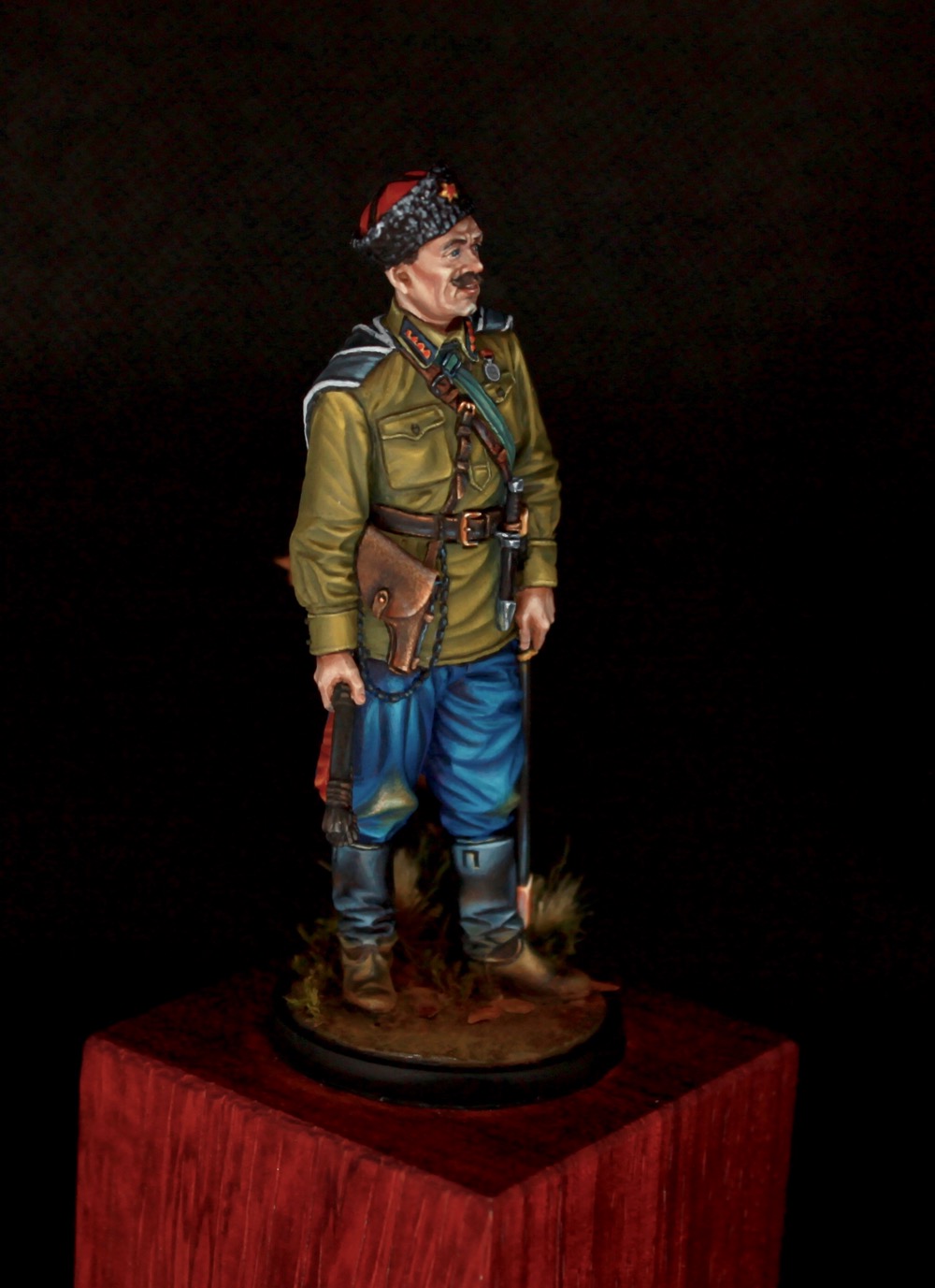 Новая моя работа-казак от EK Castings. Купил фигурку почти случайно и подумывал отдать ее сыну в игрушки, но потом решил все же покрасить. Масштаб указан 54 мм, хотя, как мне кажется, там все 60 мм) Роспись, как обычно, акрил Vallejo, приятного просмотра.