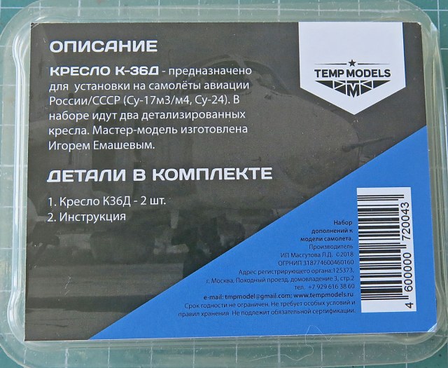 На обороте краткая инфа, в том числе ссылка, что Мастер-Модель изготовлена Игорем Емашевым!!