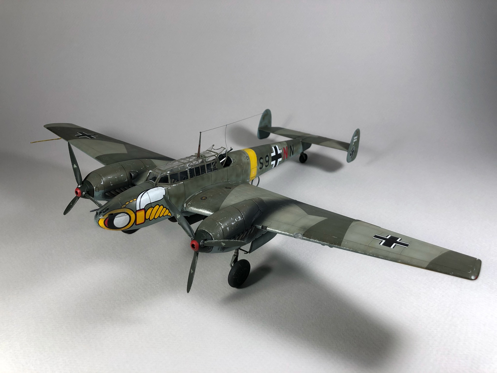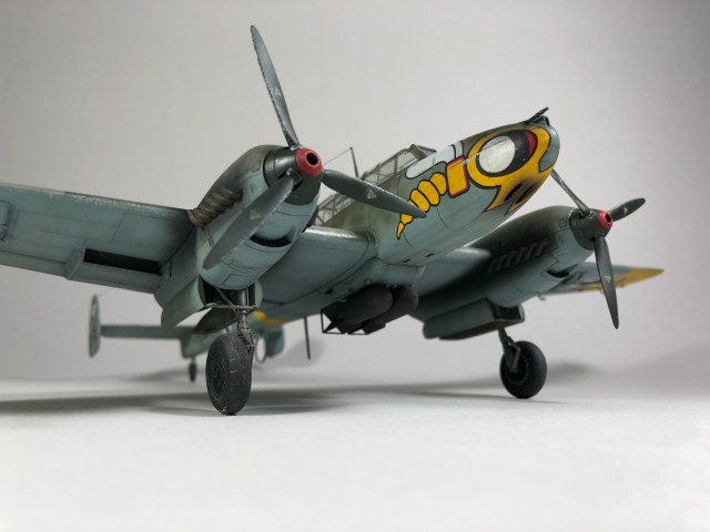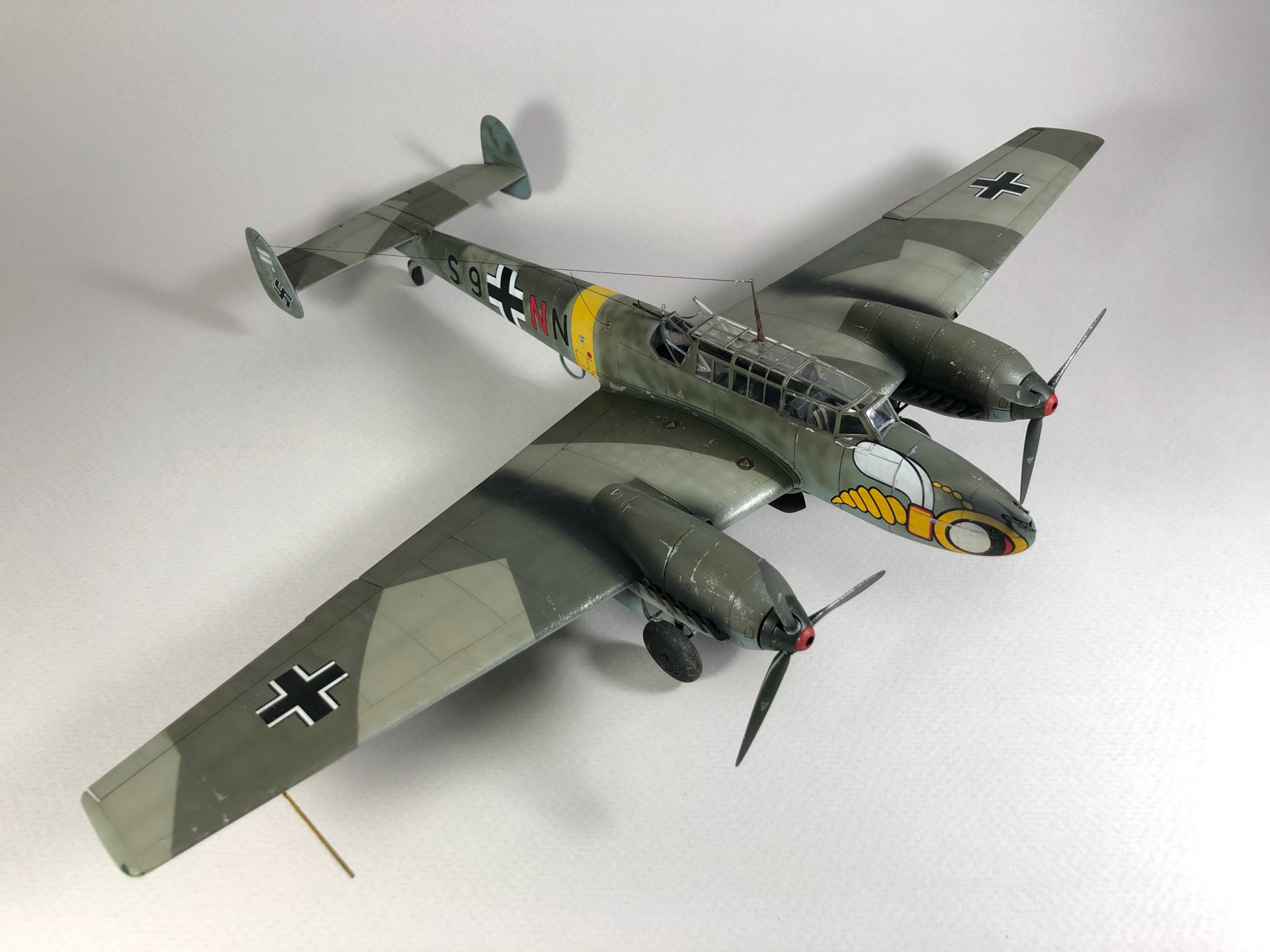 Bf 110 E S9+NN из 5./ZG "Wespen", пилот Herbert Kutscha. За свою карьеру он совершил более 900 боевых вылетов, одержал 47 побед, уничтожил 44 самолета на земле, 41 танк, 15 локомотивов, 11 артиллерийских позиций и 157 транспортных средств.