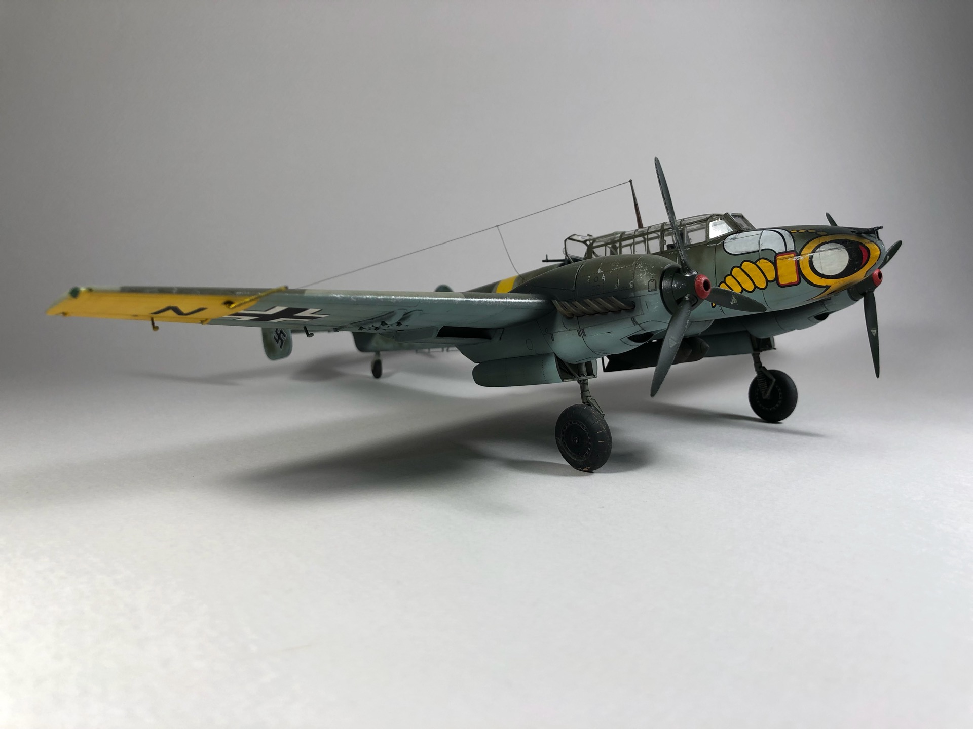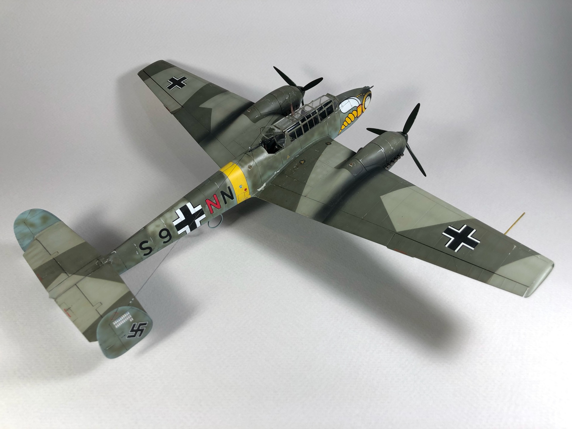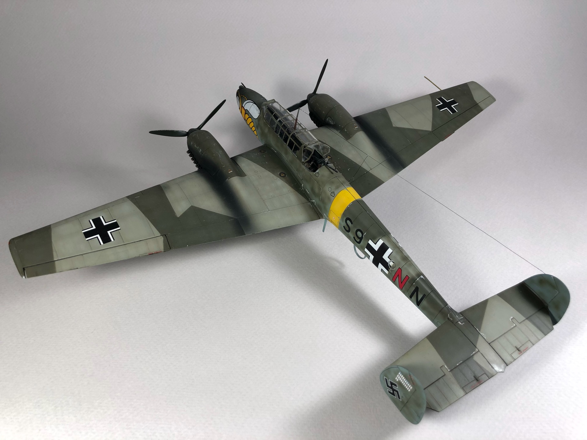 Bf 110 E S9+NN из 5./ZG "Wespen", пилот Herbert Kutscha. За свою карьеру он совершил более 900 боевых вылетов, одержал 47 побед, уничтожил 44 самолета на земле, 41 танк, 15 локомотивов, 11 артиллерийских позиций и 157 транспортных средств.